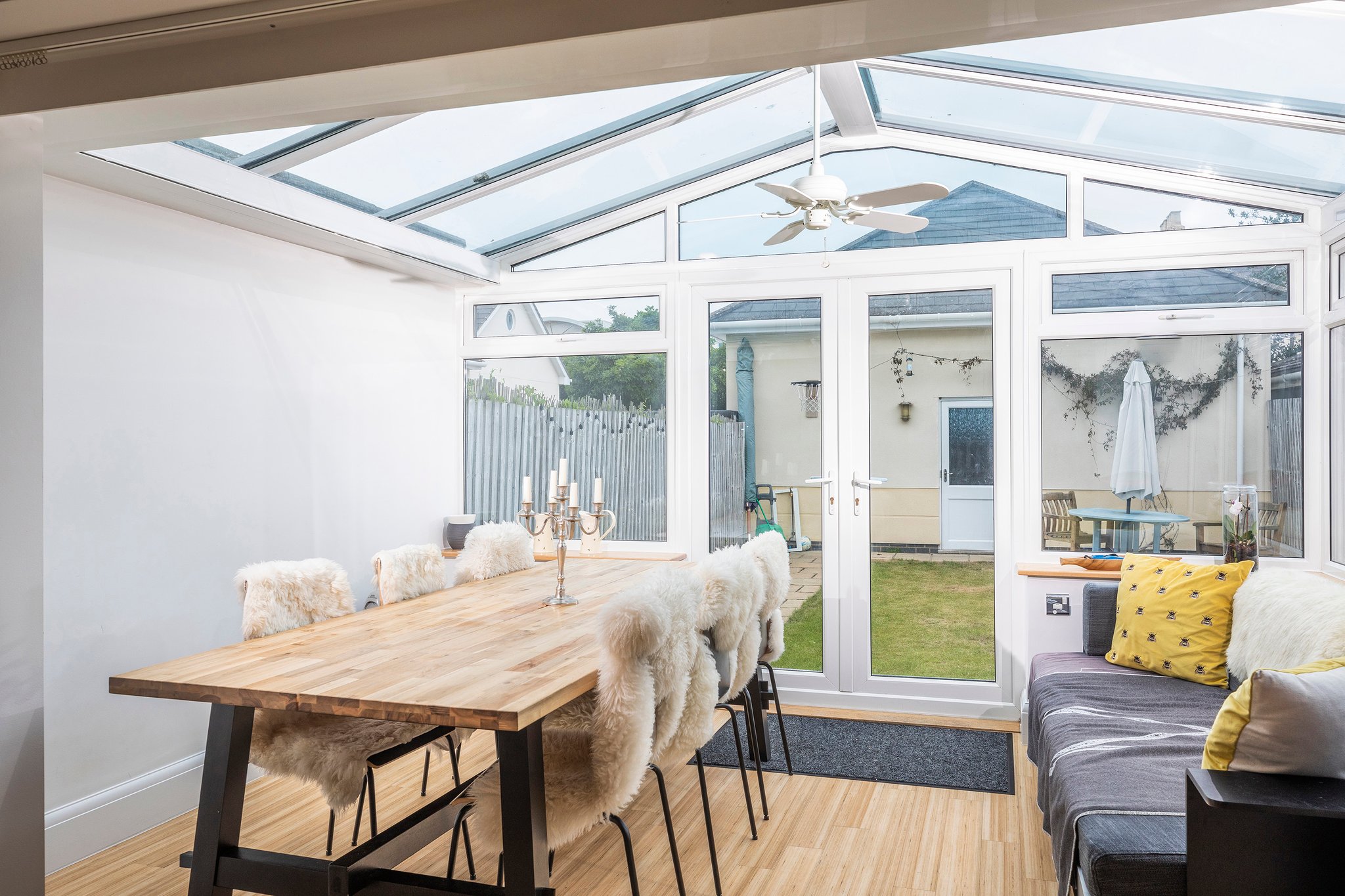 Located in the heart of Sandbanks, this contemporary home offers spacious and versatile accommodation over three floors. The modern kitchen / breakfast room is well equipped with ample storage, an integral wine fridge and range oven complimented by Corian worktops. A garden room has been added to create a large dining space, which overlooks the private garden from its floor-to-ceiling windows and patio doors. A further reception room / bedroom 4 is located on the ground floor and enjoys direct access onto a sunny patio. Adjacent is a good sized bathroom. On the first floor are two bedrooms; the main bedroom hosts a range of fitted wardrobes, Juliette balcony and a modern en-suite with double sinks, bath and shower. Bedroom two also has an en-suite shower room, fitted wardrobes and access onto a balcony. On the top floor is a further bedroom with built-in wardrobes, bathroom and large living room with fantastic views over Poole harbour and Brownsea island. The walled rear garden is laid to lawn and offers a good degree of privacy with a gate leading to the parking space and double garage. In addition, you have direct access to the garage from the garden. A staircase leads to a good sized room above the garage, ideal as an office or additional storage for water sports enthusiasts.