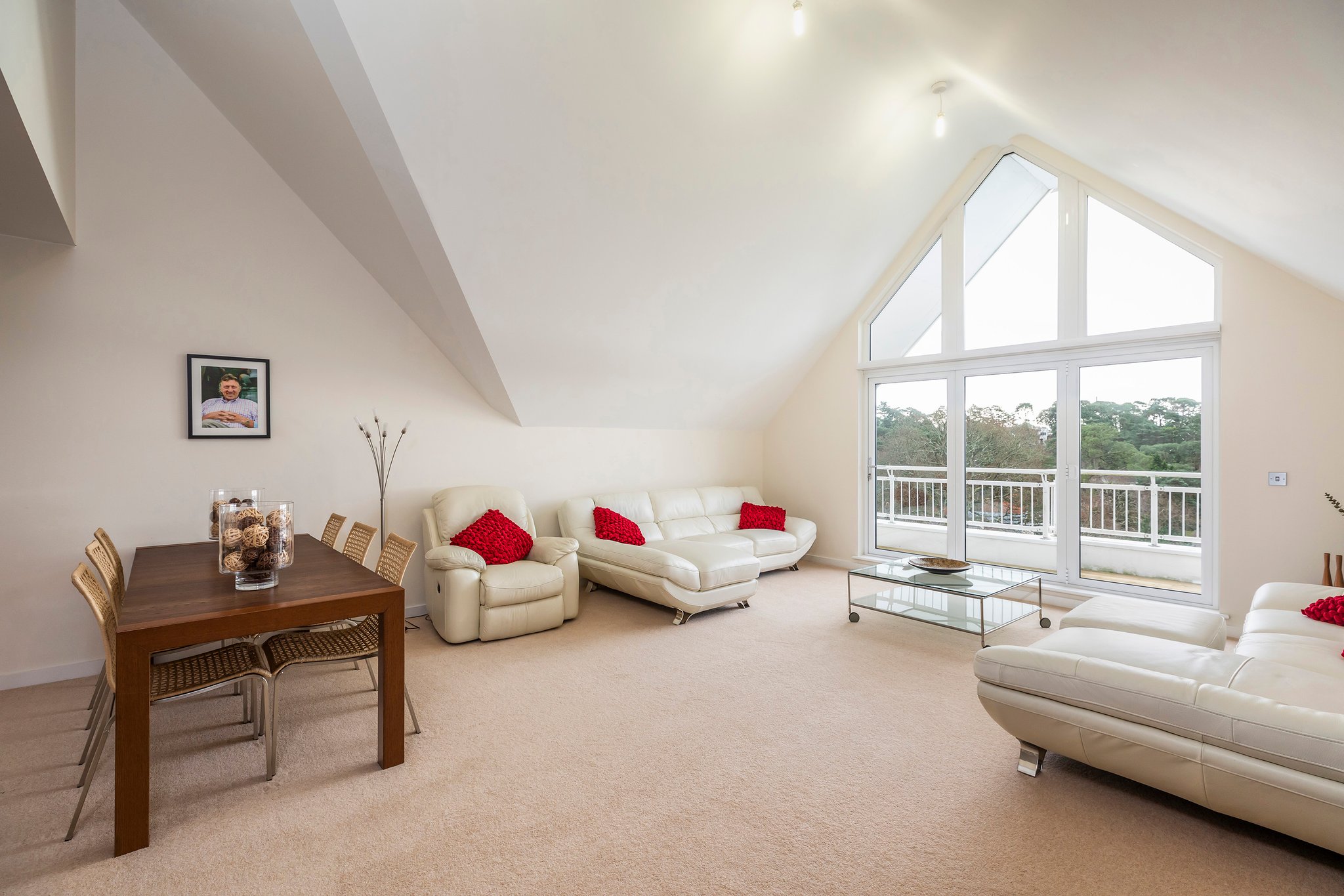Cloud Hills is an exclusive development of luxury apartments located within walking distance to Parkstone Golf Course. As you enter the penthouse you are greeted by a spacious entrance hall. Double doors lead you in to the impressive open-plan kitchen / living room with vaulted ceilings. Your eye is immediately drawn to the balcony and beautifully elevated views over Luscombe Valley towards the harbour. The kitchen is well appointed with a range of integral appliances, complimented by quartz worktops and breakfast bar which cleverly separates the kitchen from the dining and living room. From the kitchen is a second balcony which catches the last of the evening sun. The main bedroom is located to the rear with its own balcony and extensive range of built-in wardrobes and fitted furniture. The luxurious en-suite is fully tiled with a separate bath and walk-in shower. The two additional bedrooms share the main bathroom. The entrance hall benefits from a generous coat storage cupboard. The block is well maintained with secure electric gates and eclectic garage door which leads to three underground parking spaces and a communal bike store.
