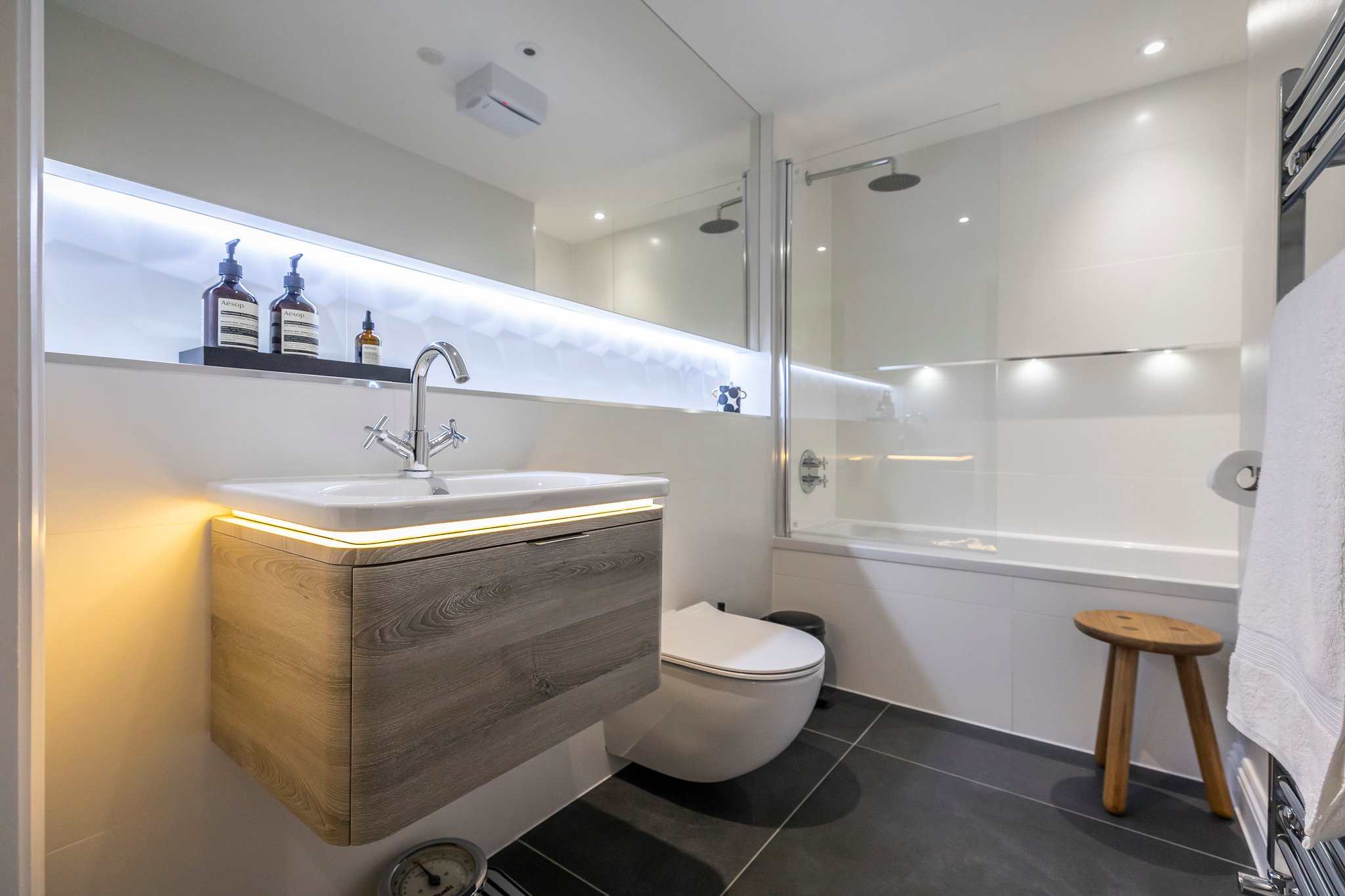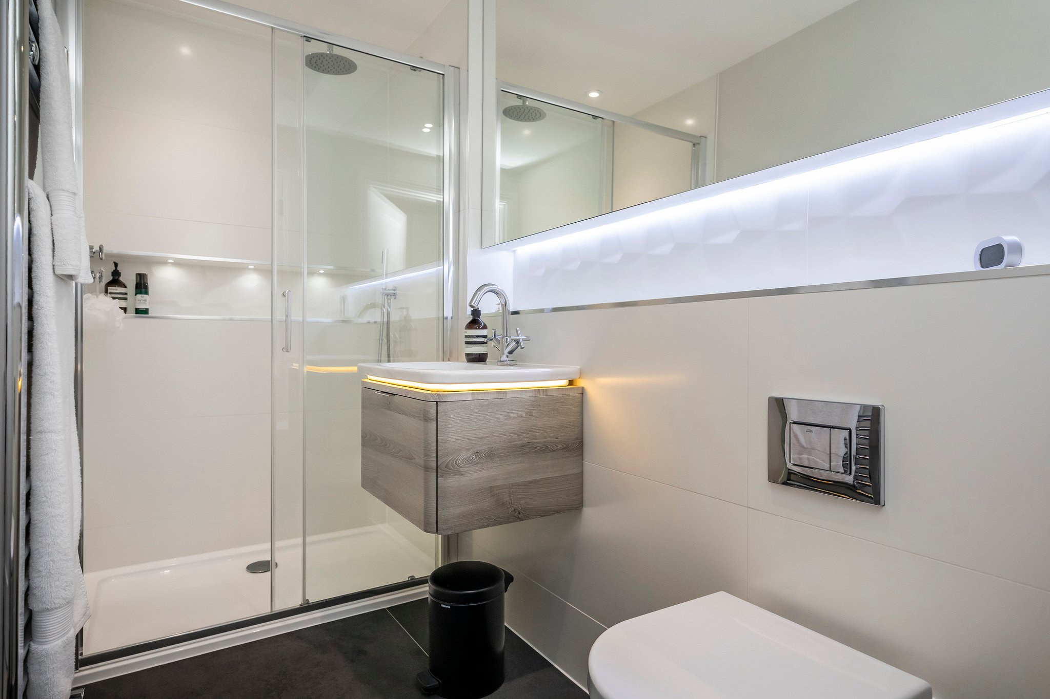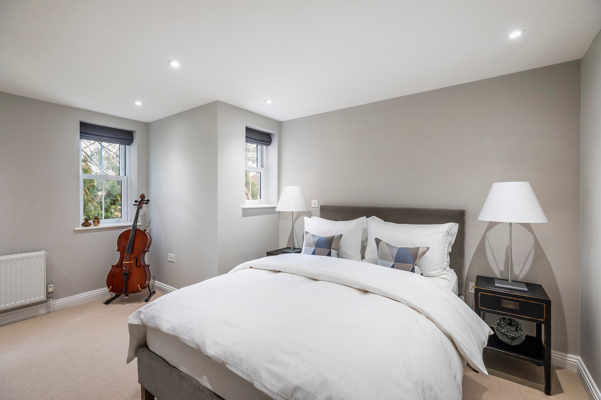 Driftwood is a stunning development of just six apartments and one coach house converted in 2016 by regarded local developers, Juno. This contemporary first floor apartment offers generous accommodation and is beautifully presented throughout. The large open-plan kitchen / living space enjoys a delightful aspect and is flooded with natural light, as is the entire apartment. The modern kitchen boasts a range of integral appliances, island unit with display shelving and is complimented by Quartz worktops. There is an added bonus of the utility cupboard housing the washing machine.  The bay windows create the perfect dining zone and the relaxing lounging area completes this living space. The main bedroom is exceptionally spacious with an extensive range of bespoke designed wardrobes and a luxurious en-suite shower room. The family bathroom serves the other two bedrooms. Additional features include decorative skirting and architraves, zoned lighting to the living area and sensor lighting to both the en-suite and family bathroom. The property also benefits from a well-maintained communal, lawned garden. Behind the electric gate, there is an allocated parking space conveyed with the apartment and a communal bike store.