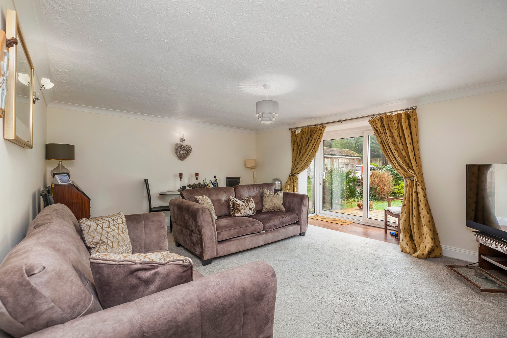 Turning our attention outside, the apartment has a separate garden room, this offers a multitude of choices. Whether you require additional storage space for paddle boards and wet suits, home office or just a separate chill out space. Additional features include the covered bike store area.