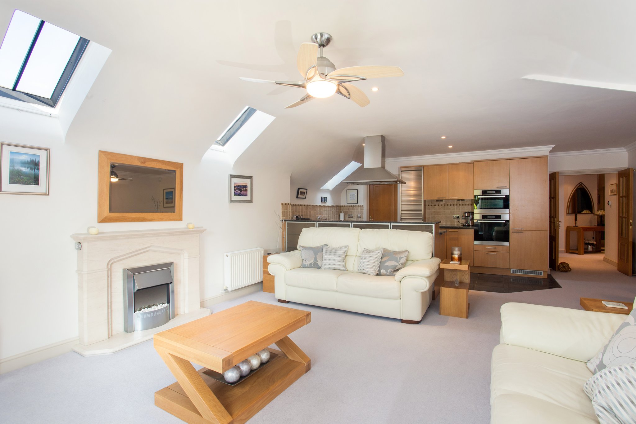 Internally, the accommodation extends to approximately 1305 square feet which includes a large open plan and well-appointed kitchen/dining/living area measuring in excess of 25 ft, a separate utility room, main bedroom with ample fitted wardrobes, large storage area into the eaves and its own en suite with bath and walk in shower, bedroom two which is a great double and the third bedroom which could also be used as home office/study and family bathroom. There is also large and very useful storage cupboards in the hallway and third bedroom.