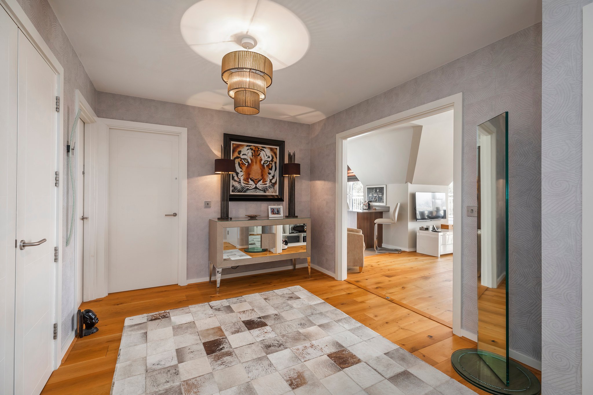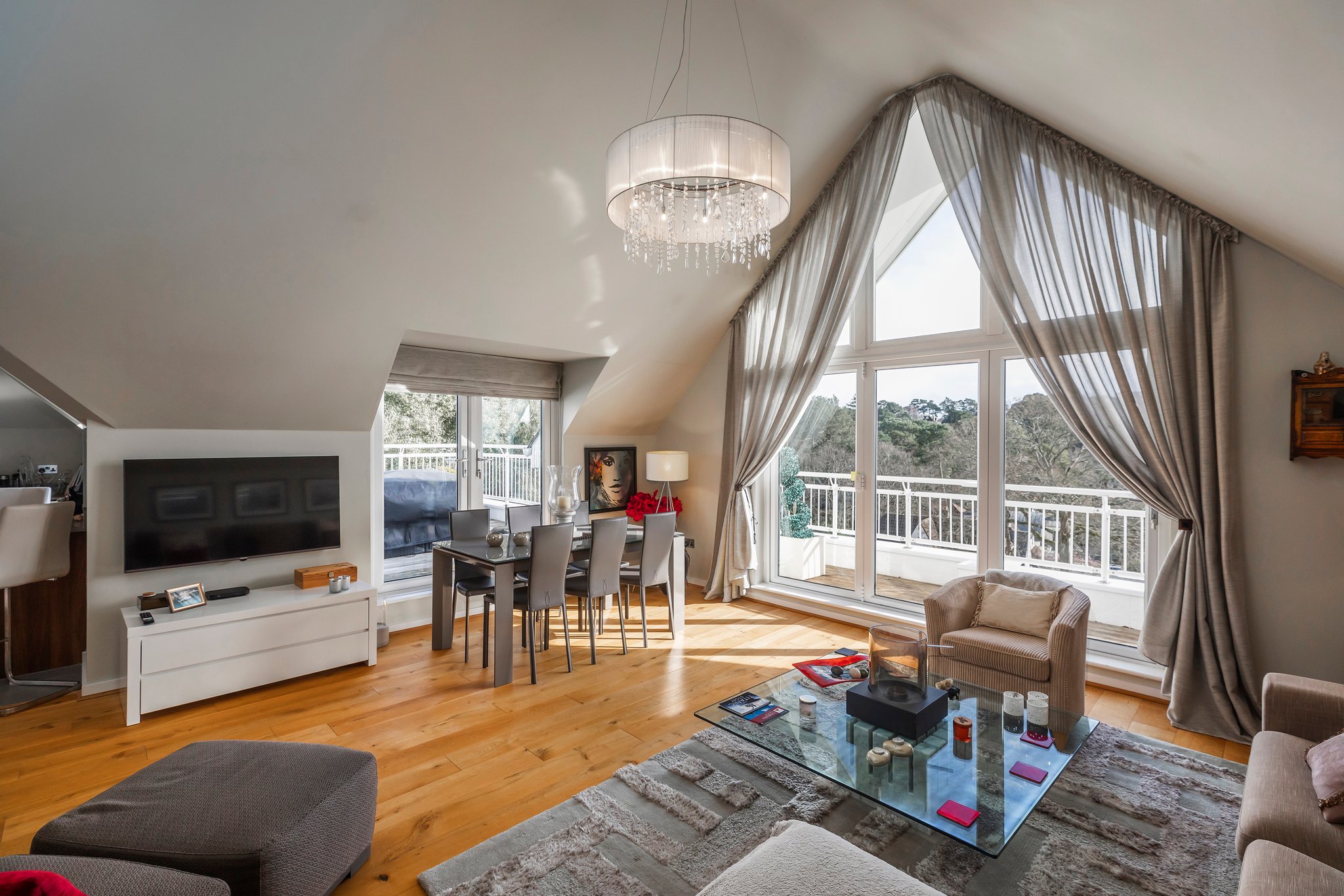 Clouds Hill is a New England style development occupying an elevated position on Munster Road. Approached via a sweeping driveway with gated pedestrian and vehicle access. On entering, the communal hallways are well-maintained with stairs and lift to all apartments and down into the secure underground parking. On entering the apartment you are immediately aware that this is something quite special. The large entrance hall, which could be a room in it's own right, leads you to the impressive open plan lounge/dining room. With high vaulted ceiling and bi-folding doors to the south facing balcony this room cannot help but flood with light. From the dining area French doors lead you on to the sunbathing and dining south facing terrace, complete escapism without leaving the country. The contemporary fitted kitchen has a range of floor and wall fitted units, integrated appliances and the breakfast bar for casual dining, there is also access from here onto the terrace. Both of the double bedrooms have fitted furnishings and air conditioning units. The principal bedroom has a private balcony and luxury en suite bath/shower room, the same quality of fixtures and fittings continue in the family bathroom. Viewing is a must to appreciate how very special this apartment is and all that it offers.