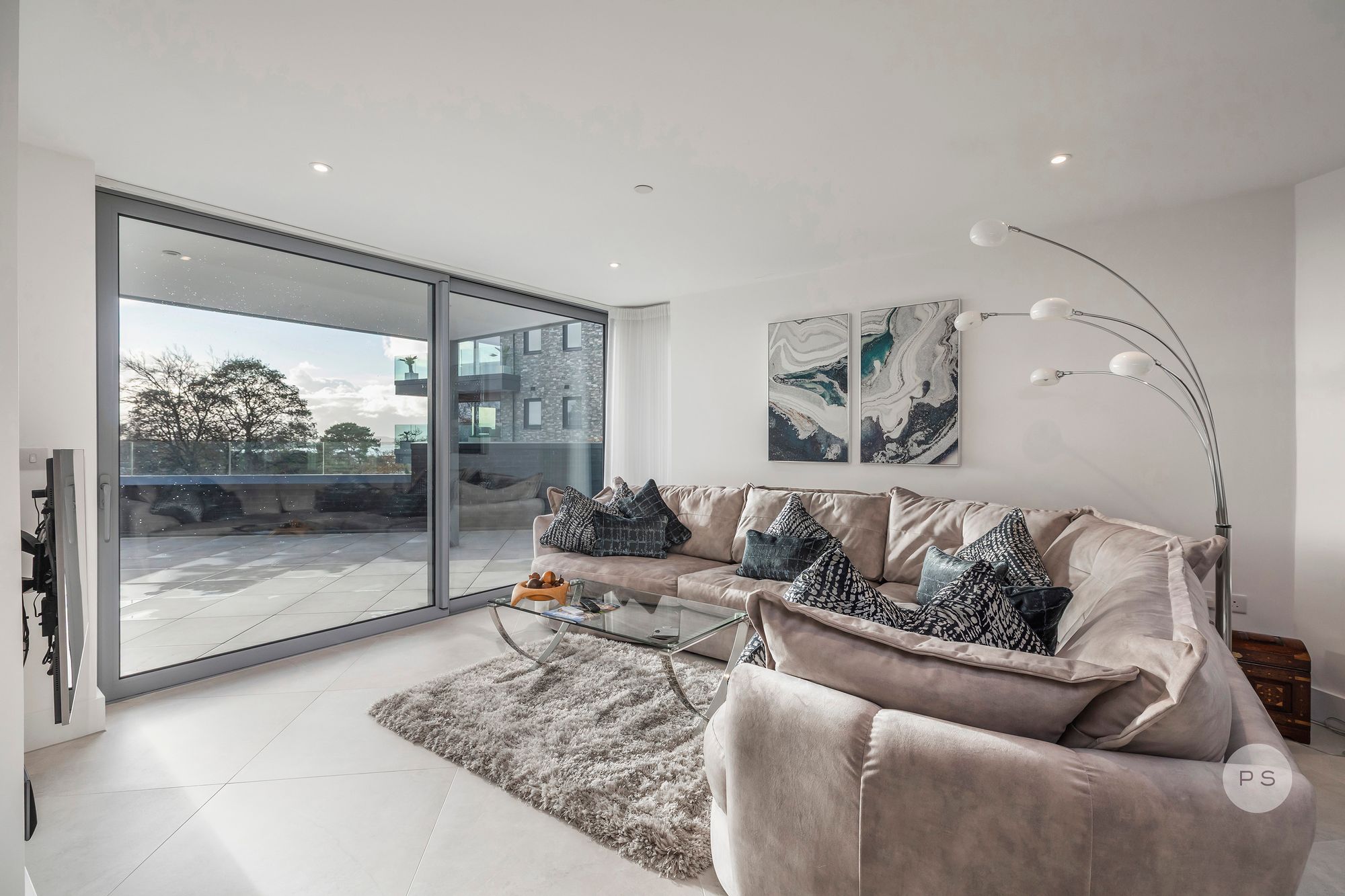 The standout feature is the remarkable south west facing terrace, approaching 549 sq ft, providing a rare and highly desirable outdoor living space ideal for dining, relaxation and entertaining. The terrace can be accessed directly from the principal living area, where floor to ceiling glazing frames the beautiful outlook and fills the room with natural light. The interior layout has been thoughtfully planned, complemented by oversize two metre internal doors, underfloor heating and an interior designed finish. The apartment is offered with the option of buying some of the finishings.