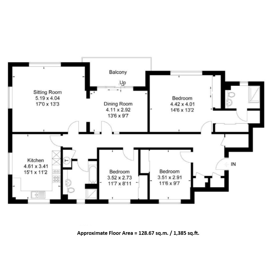 The welcoming 17’ lounge flows seamlessly into a 13’ dining room, creating a perfect setting for both relaxing and entertaining. The modern, well-appointed kitchen features excellent storage, integrated appliances and breakfast bar, complementing the home’s stylish practicality. The expansive master suite enjoys a private dressing area and luxury en-suite bathroom, while two further bedrooms both with fitted wardrobes, provide flexibility for guests or home office use. A highlight of the property is the south-facing balcony, offering a sunny aspect and tranquil views across the mature landscaped grounds.