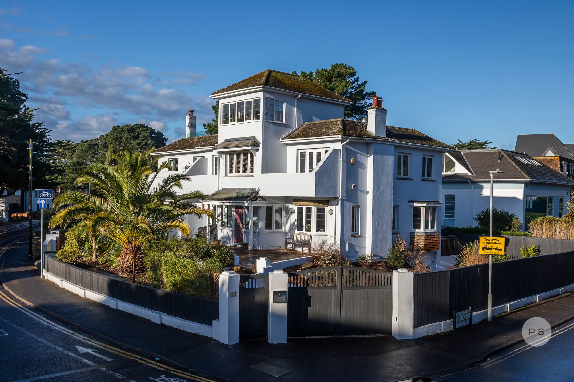 Set behind gates on a south-facing corner on the prestigious Sandbanks Peninsula, this substantial coastal house immediately impresses in both scale and presence, with its sense of space, privacy and individuality. Cleverly arranged and discreetly screened by tropical planting, this beautiful home enjoys volume and practicality rarely found in this location. Internal accommodation extends to more than 2,550 sq.ft and is elevated by a roof terrace with sea views towards Old Harry Rocks, complemented by multiple outdoor areas for alfresco dining, entertaining or quiet moments, all just 250 metres from sound of the sea.