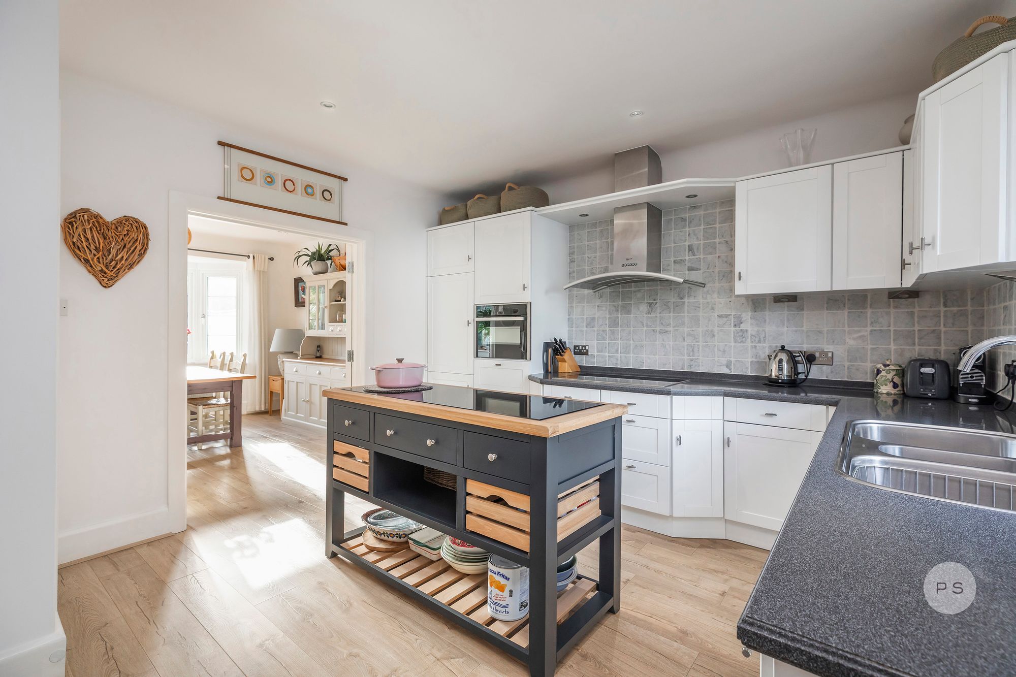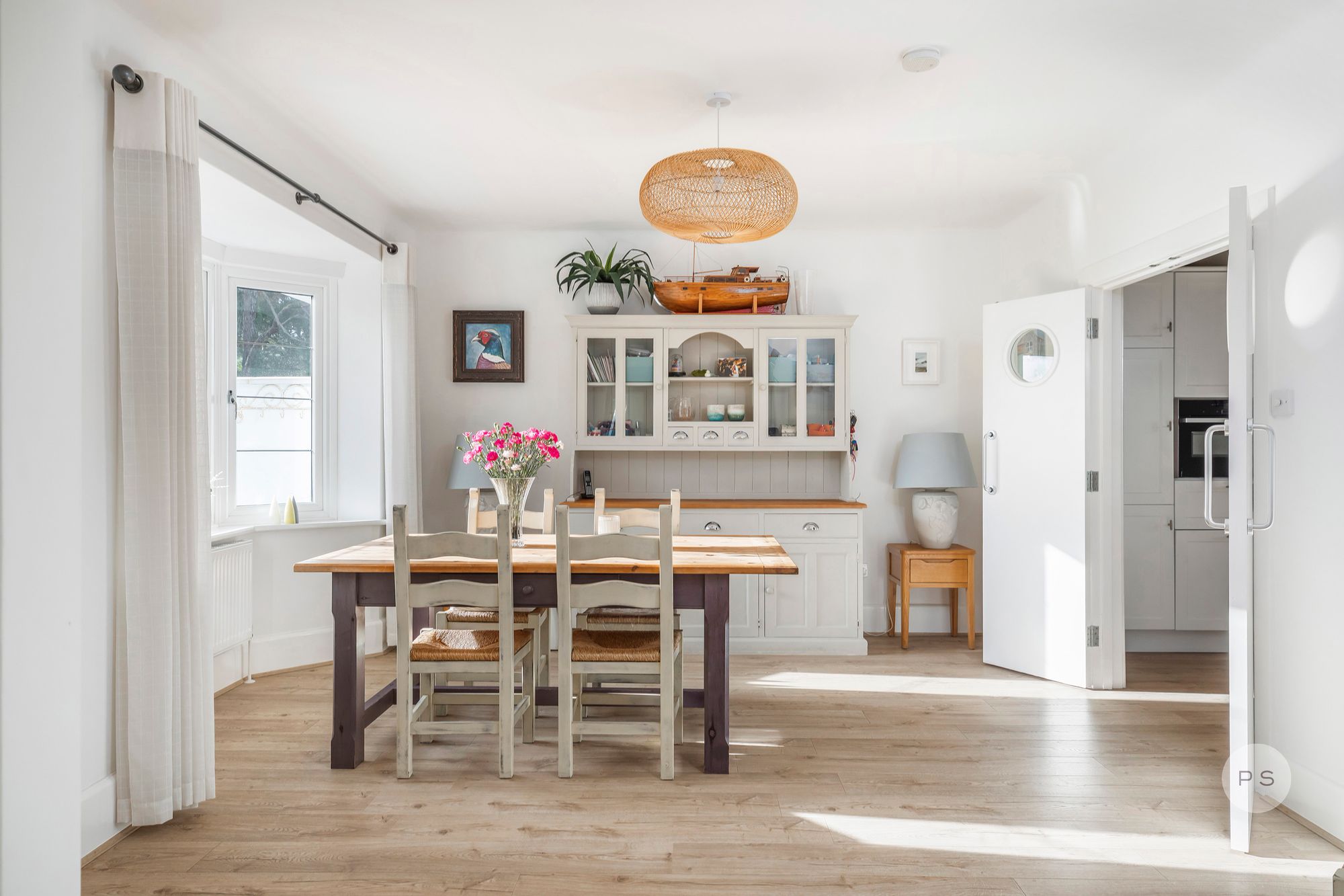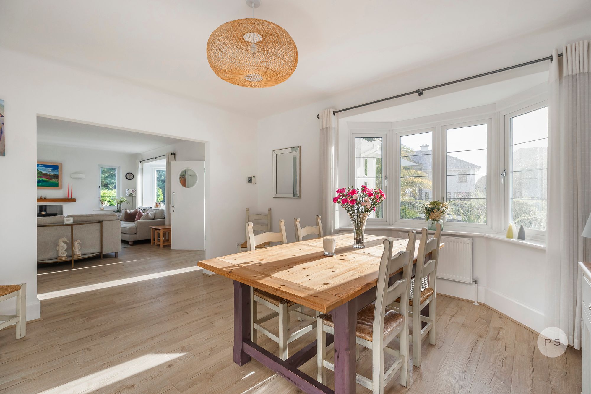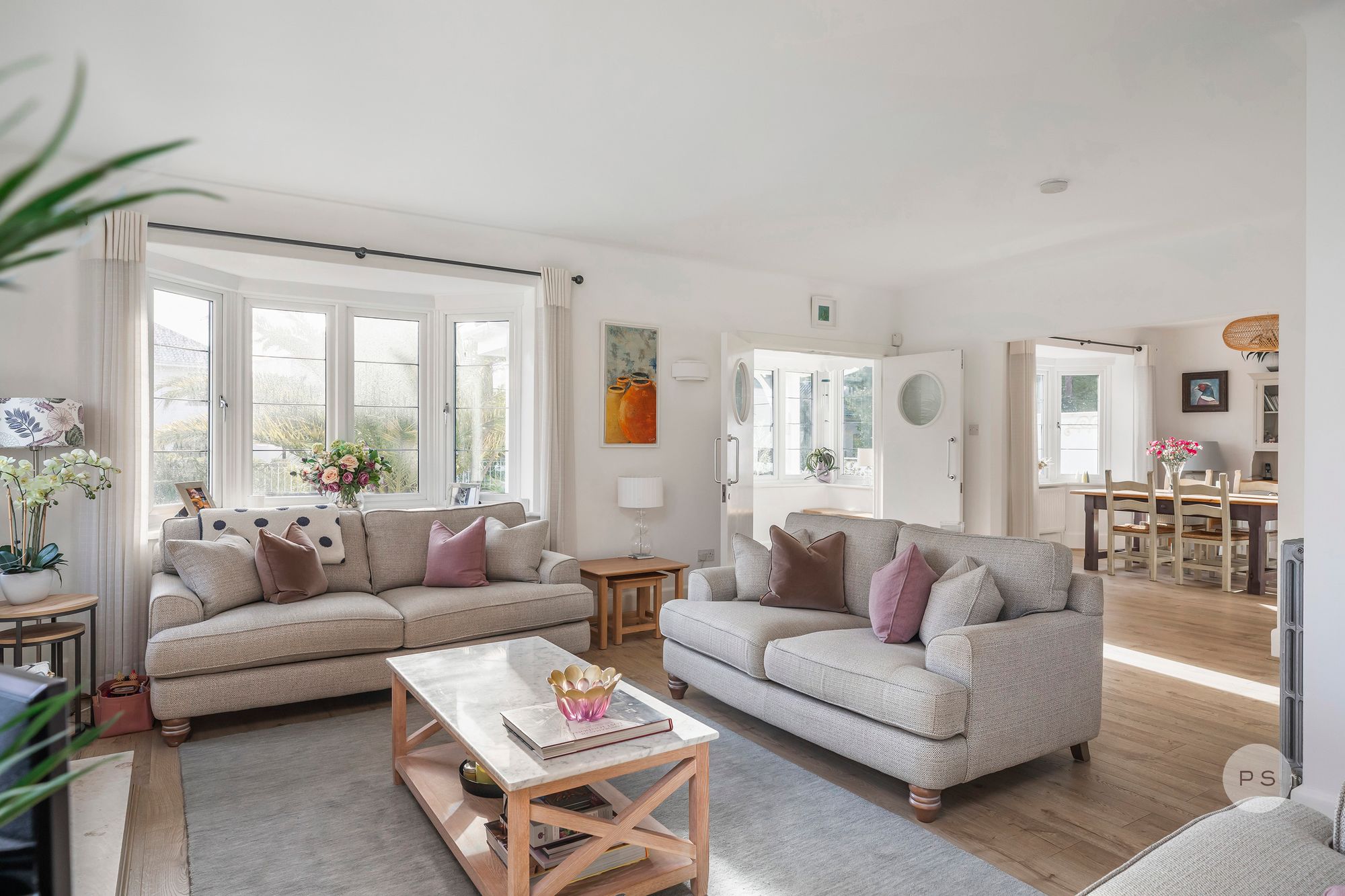 Internally, the layout flows with the ease of a permanent family home rather than a seasonal retreat, offering generous reception spaces, clearly defined living zones and bedrooms that feel purposeful and well proportioned. The ground floor is centred around a series of interconnected living and dining rooms, ideal for both relaxed daily life and entertaining. The rooms are broad and light filled, with bay windows adding character and scale while maintaining a calm, timeless feel. A games area or family zone provides flexibility for children, working from home or informal gatherings, reinforcing the sense that this is a house designed to be lived in year round.