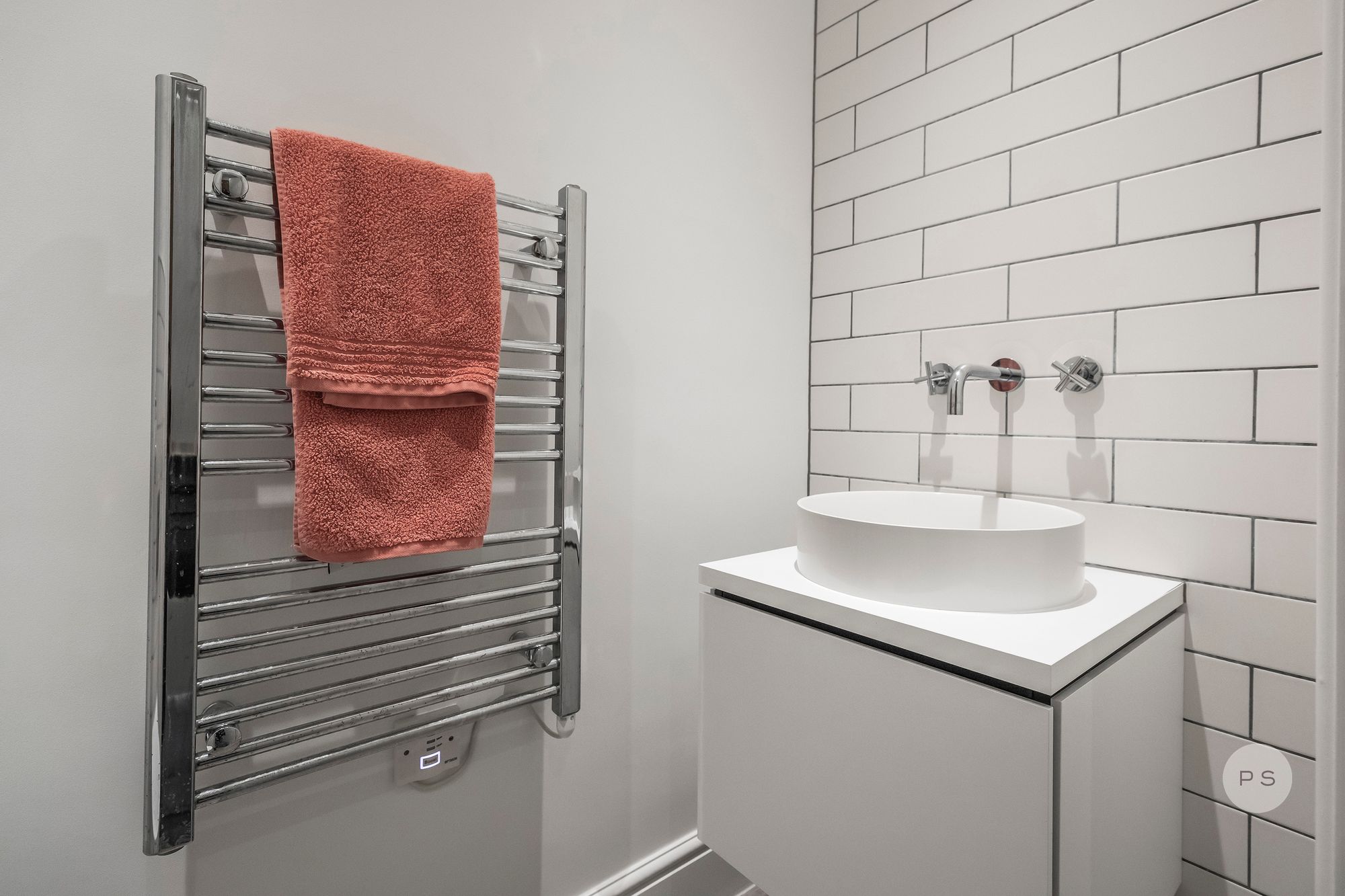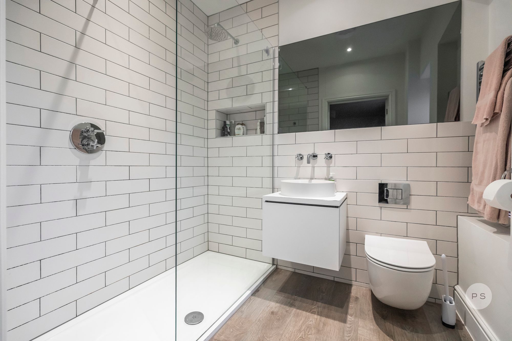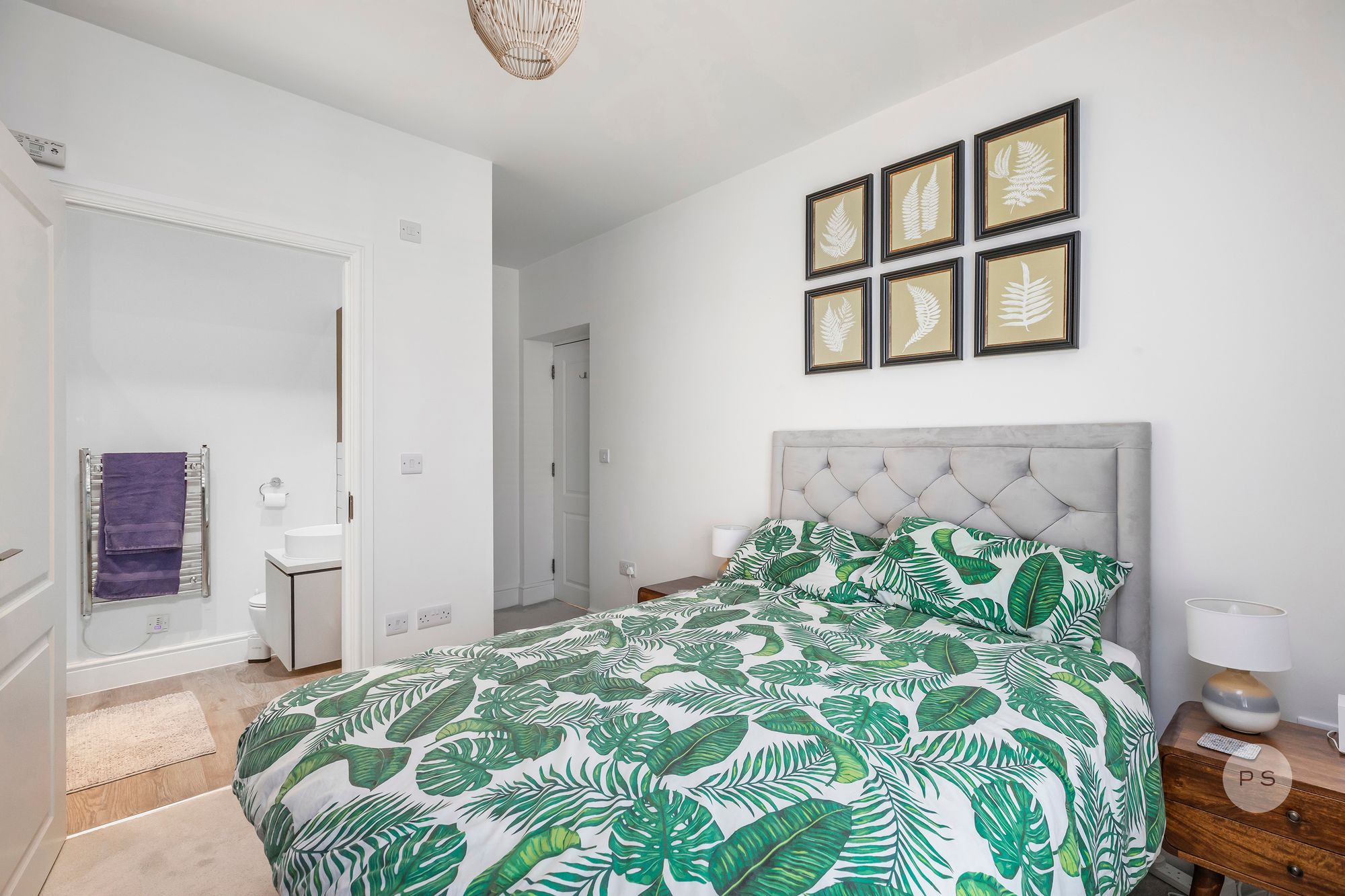 The property features two generously proportioned bedrooms. The principal suite boasts a private ensuite bathroom and a walk-in wardrobe, reinforcing the home’s high-end appeal. The second bedroom is equally well-appointed, benefiting from its own shower ensuite and offering excellent versatility for guests or home working.