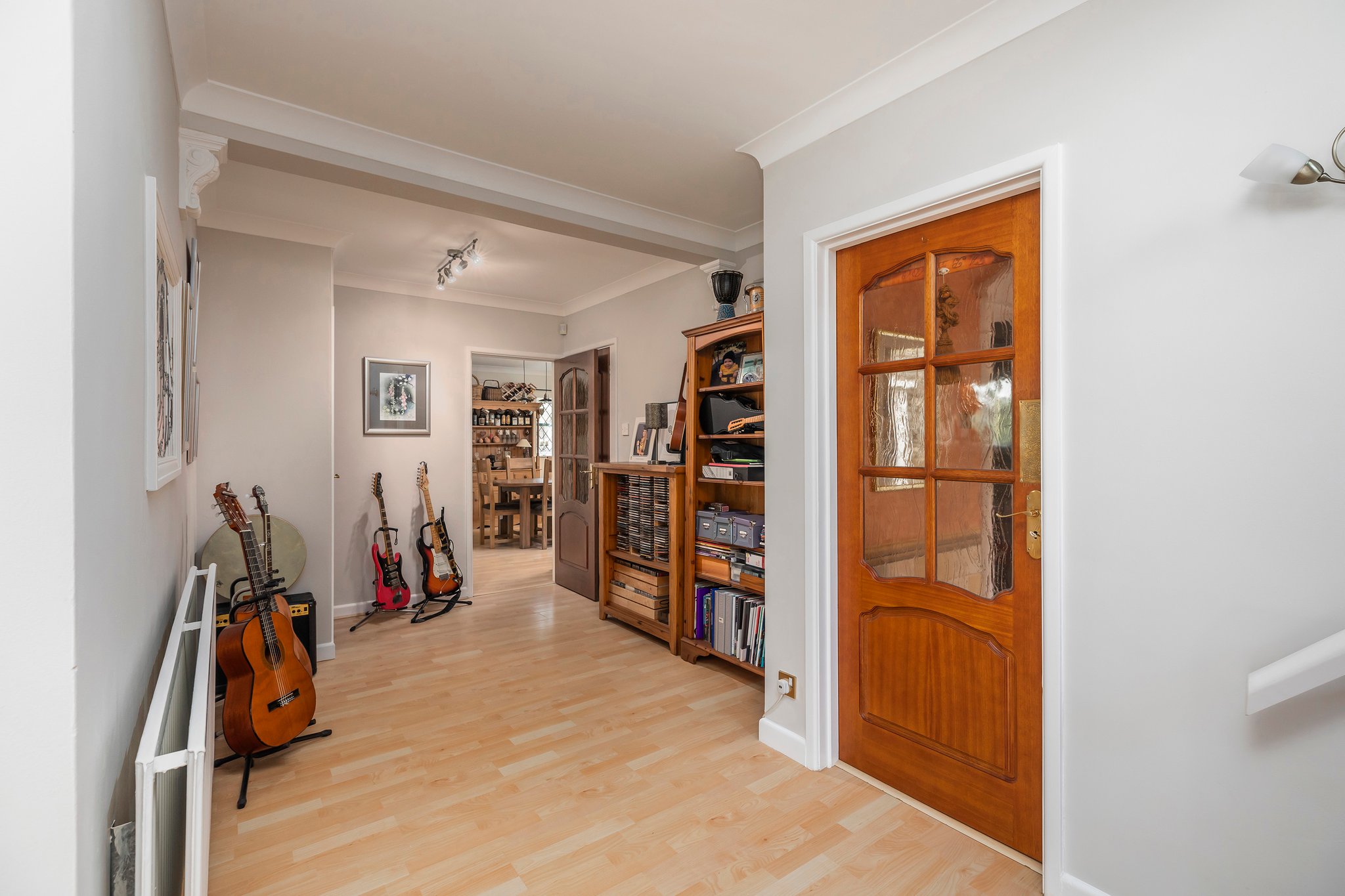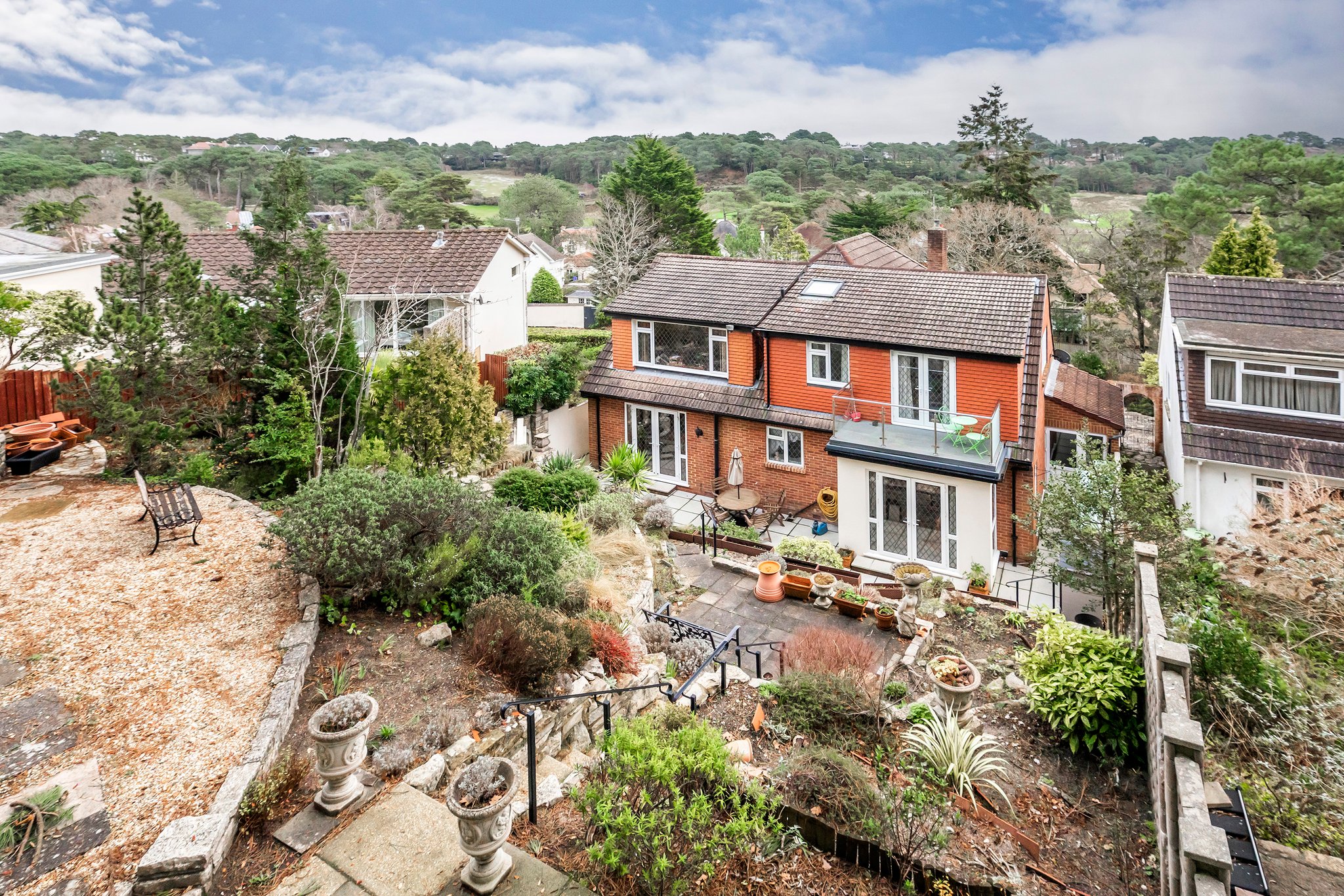 Introducing an impeccably maintained, four bedroom detached residence, positioned on an elevated plot in a much sought-after and quiet residential avenue. Under the current ownership, the property has undergone thoughtful extensions and modernisation. As you step inside, a spacious entrance hall welcomes you, leading to a front lounge with far reaching views towards Parkstone Golf course. The ground floor includes a stunning guest bedroom, with large en suite shower room and direct garden access. The kitchen is extensively fitted with a range of solid wood units, integrated appliances including a range style cooker and a central island breakfast unit, this seamlessly connects to the dining area with doors to the paved garden terrace. To complete the ground floor is the utility room, with front and rear access, space and plumbing for a washing machine and separate tumble dryer, plus additional storage.