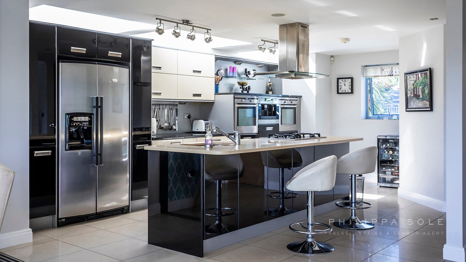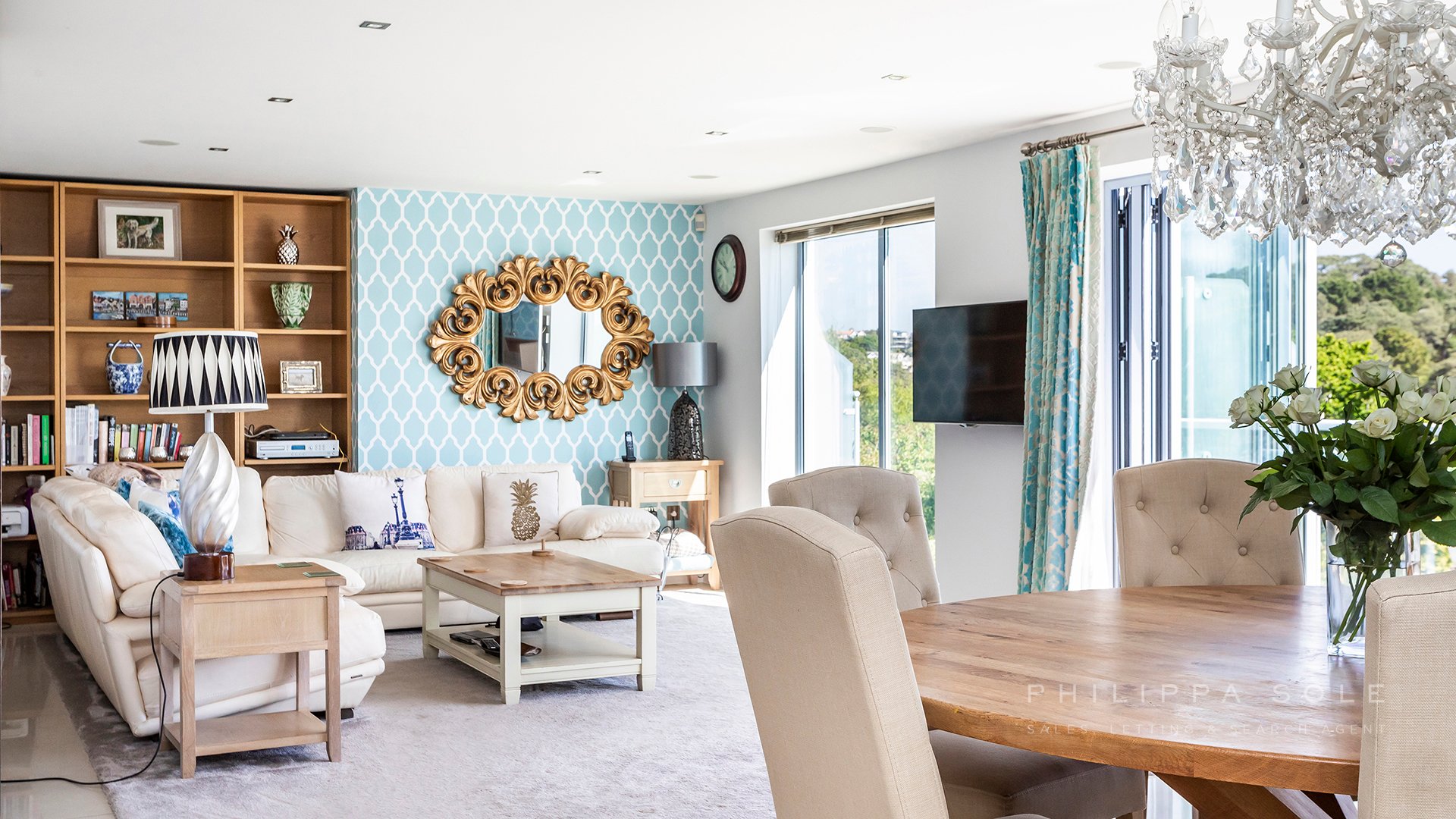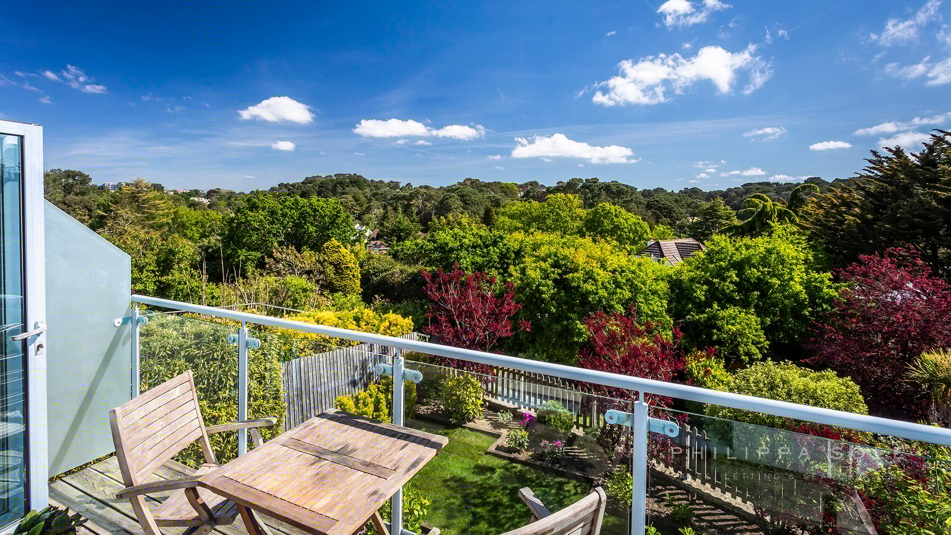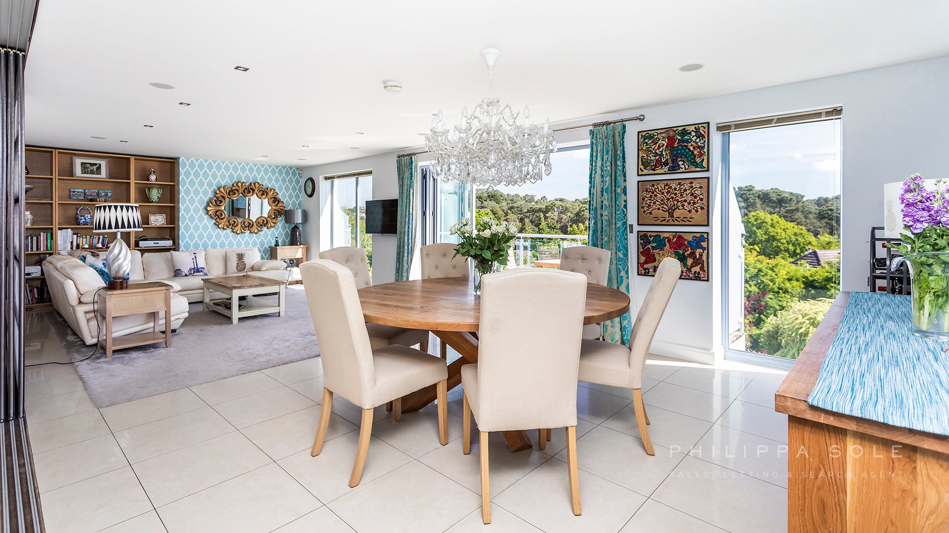As soon as you enter the property you are drawn to the stunning elevated tree top views, which overlook Parkstone Golf course: from the floor to ceiling windows at the rear of the property. The modern fitted kitchen is an ideal place in which to entertain with its sociable central island and breakfast bar. The kitchen itself is well appointed with a range of integral appliances and stone work tops, the addition of roof lights above the kitchen allows the light to flood in. The kitchen opens directly onto the large living dining space which spans the width of the house and enjoys distant views from the the windows and balcony. For those that prefer a separate living area, the cleverly designed sliding doors allow you to close the kitchen from the living space in the evening. Also on this level is the guest cloak room and access to the integral garage. From the kitchen, an ash stair case leads to the first floor where there are two large double bedrooms, both en-suite. The master bedroom boasts a his and hers dressing area and stunning bathroom with a large walk-in shower, dual sinks and free standing bath. The lower level of the house comprises four rooms and could easily be converted to a self contained apartment and is ideal for teenagers or for someone who works from home. The media room is impressive with its projector. Leading from here is the utility room which could be used as a second kitchen. From the hallway there is a double bedroom with double doors leading to a room which is currently used as a study but could easily be used as an additional bedroom as it has access to an en-suite bathroom. The fourth bedroom shares this bathroom and enjoys access to the terrace. The gardens have been beautifully landscaped with a patio area to dine on which in turn leads to an area of lawn with landscaped borders and steps which lead to to the remainder of the garden. The property is set behind electric gates with ample room to park several cars off-road.