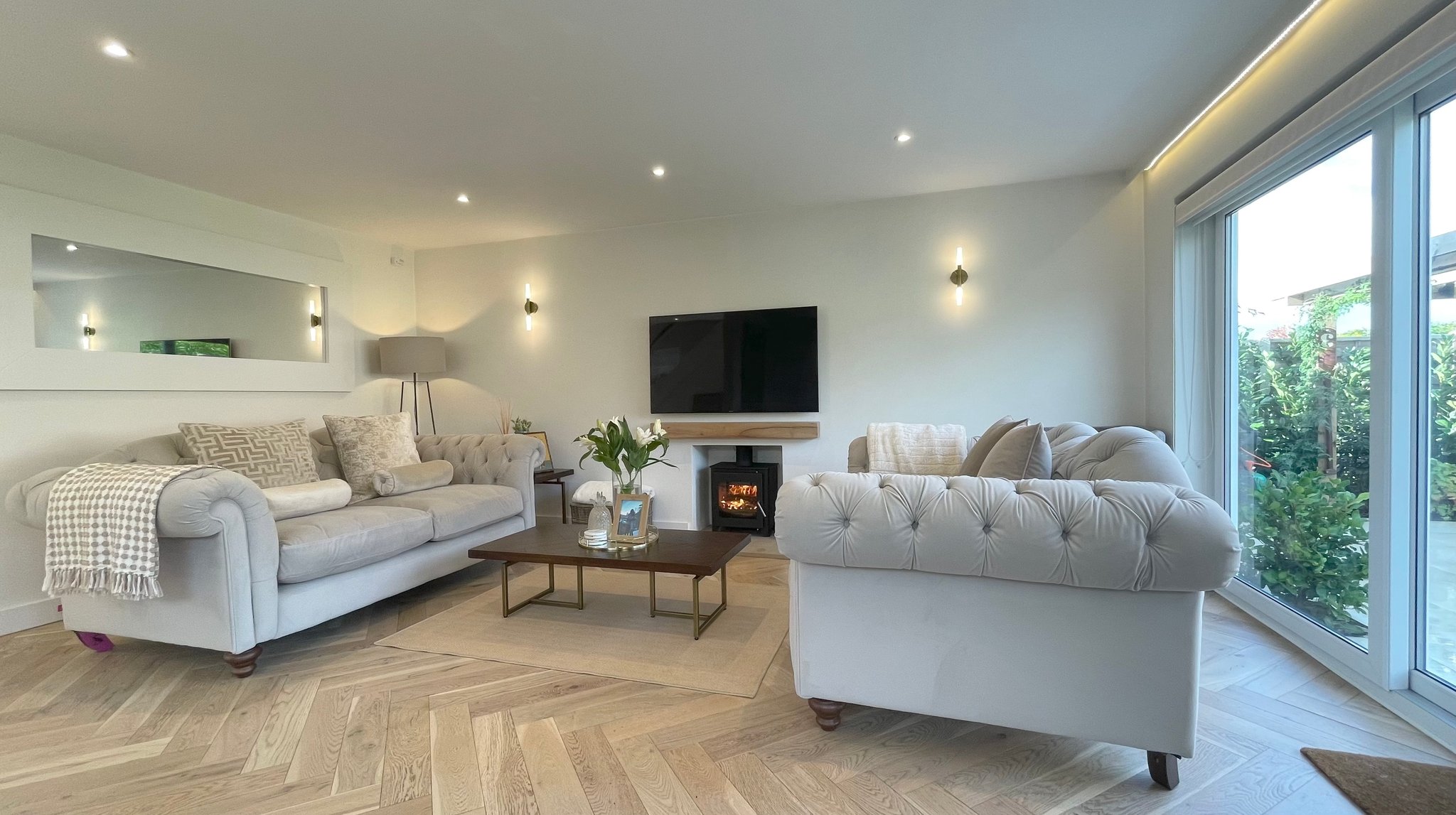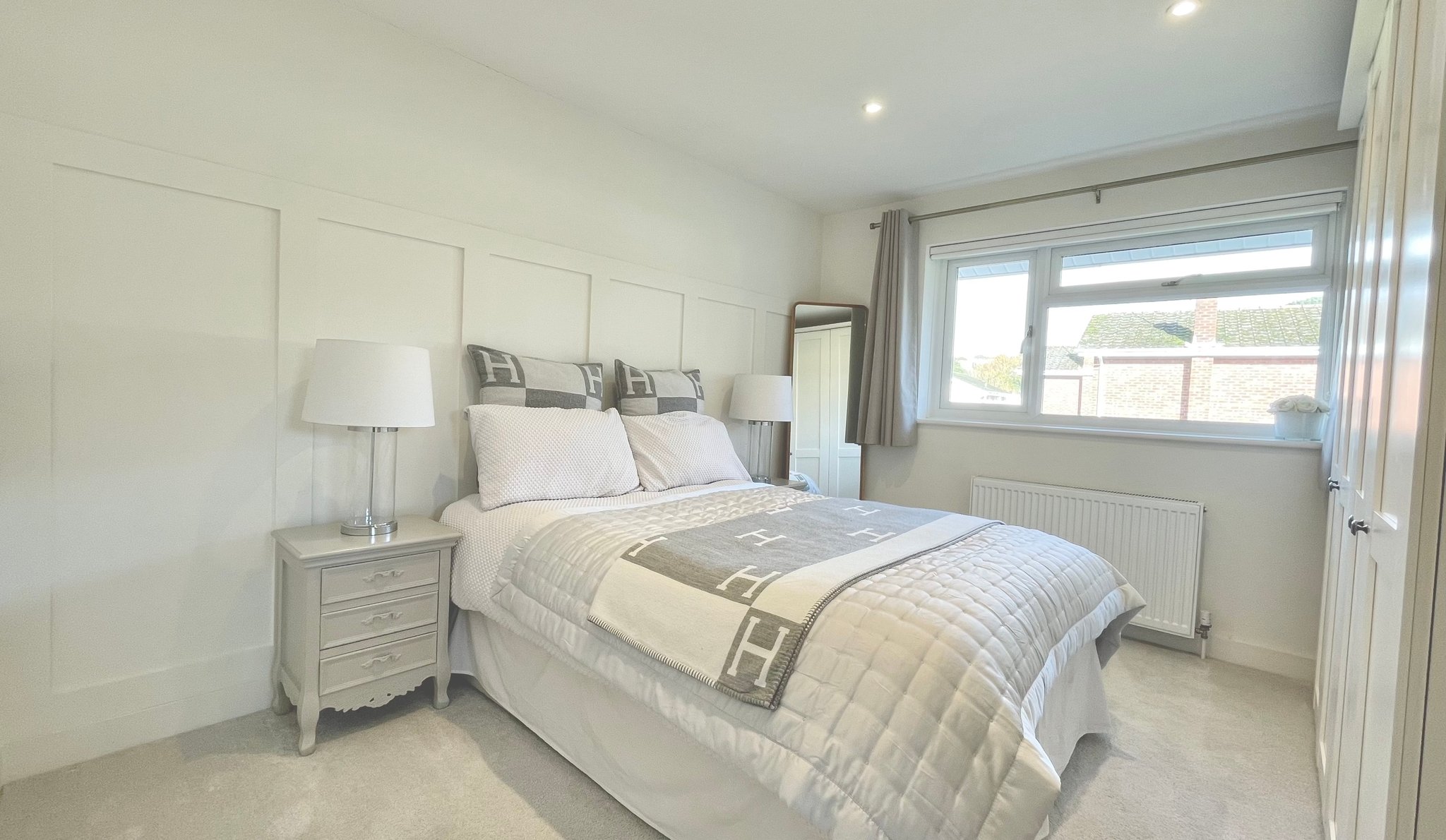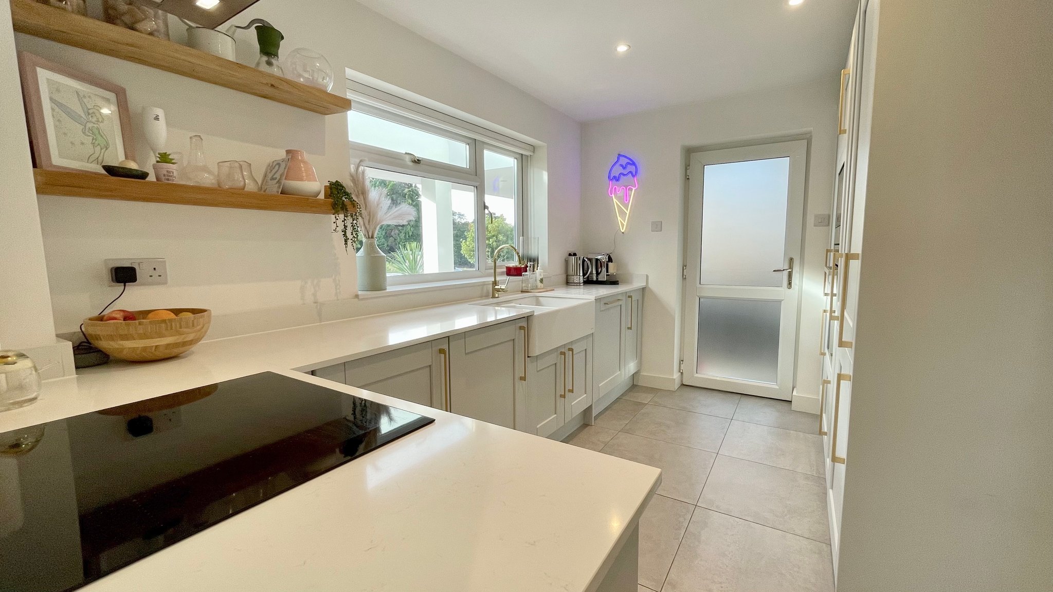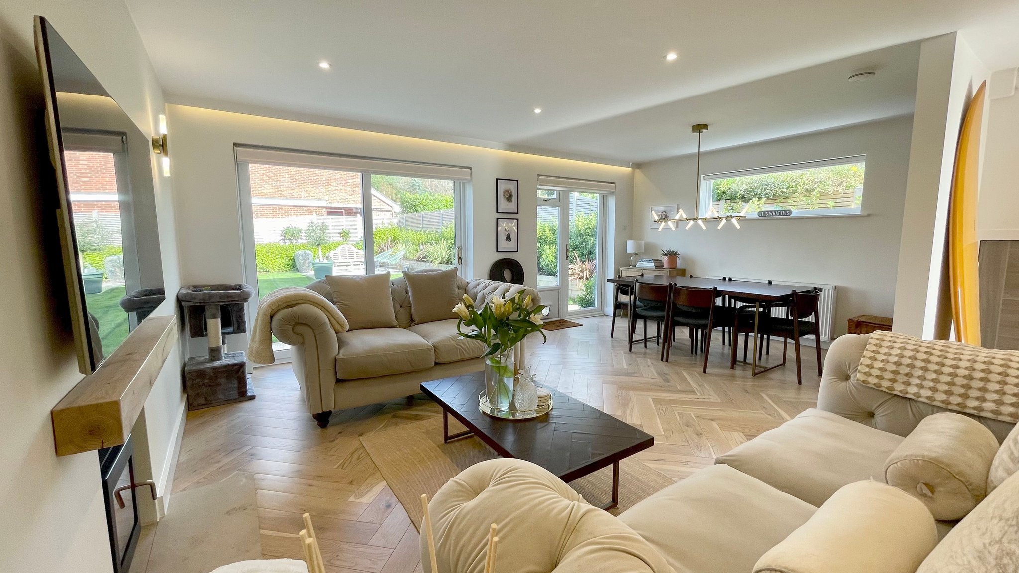 Experience the pinnacle of refined living in this impeccably presented 3-bedroom detached house, gracefully nestled in a highly coveted location.  Positioned on a meticulously designed, level, landscaped plot for low maintenance and maximum enjoyment, this home epitomizes sophistication and comfort. The residence has been extensively refurbished and redesigned, showcasing unparalleled quality. The Meridian interior kitchen stands as a stunning example of Shaker-style design, featuring high-end Neff integrated appliances, antique brushed brass fixtures, and luxurious stone worktops.  Both the main and second bedrooms boast bespoke Savilles interior fitted wardrobes and regency panelling, while the bathroom is a showcase of elegance, designed by the Big Bath Company and finished with oversized white and grey veined Porcelanosa tiles and accented by brushed gold Vado fixtures.  Adding to the allure is a garden home office/gym, complete with power and light, offering a versatile space for work or leisure. The secluded rear garden captures the warmth of the afternoon sun, providing an idyllic retreat. Direct access to the garden from the lounge/dining room seamlessly merges indoor and outdoor living. The garage, equipped with a utility area, adds practicality to the home. Exceptional presentation throughout ensures a pervasive sense of luxury, and ample off-road parking completes the picture of convenience and distinction.