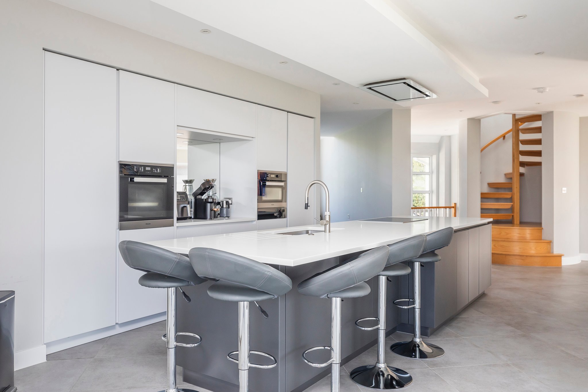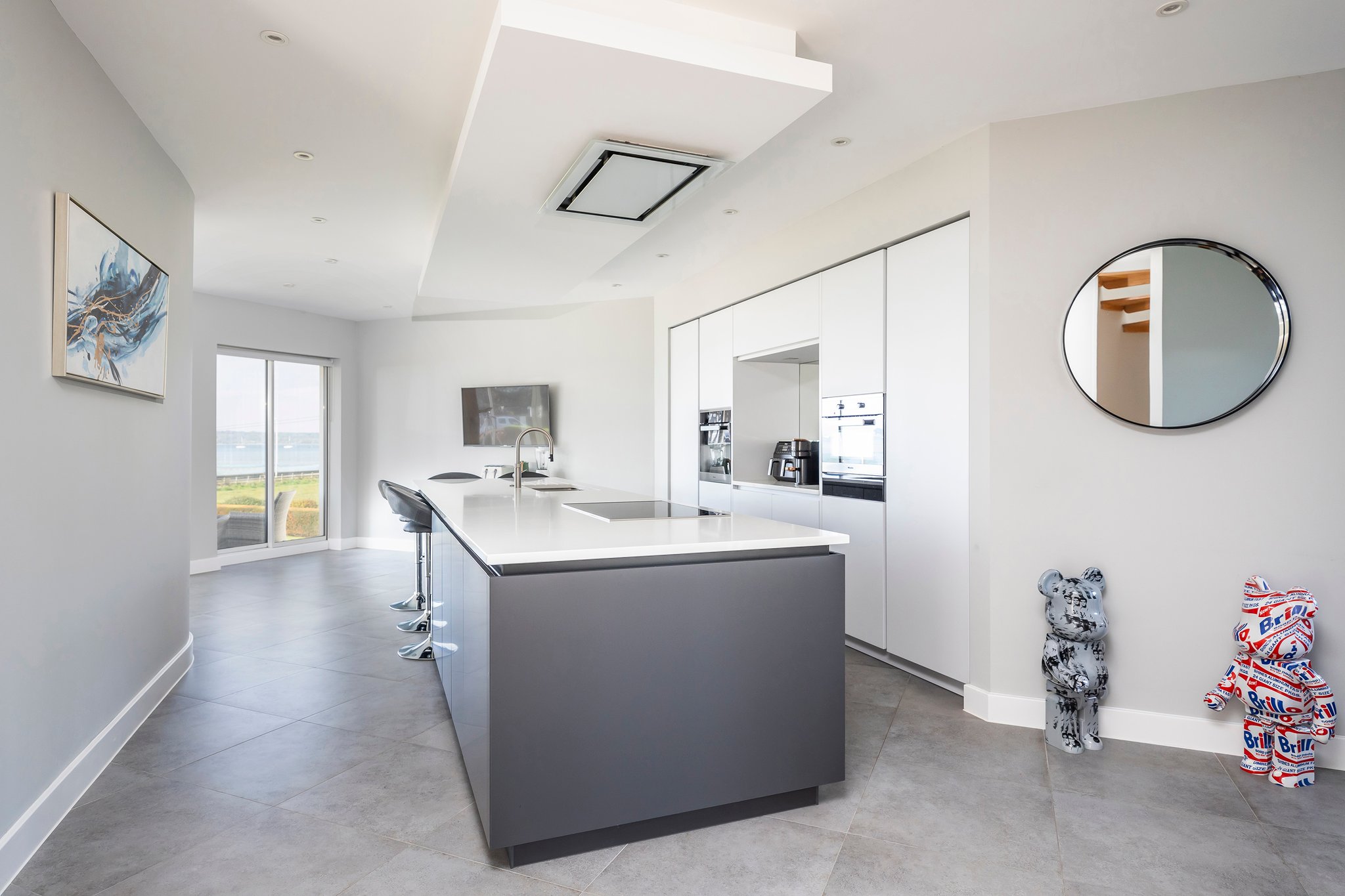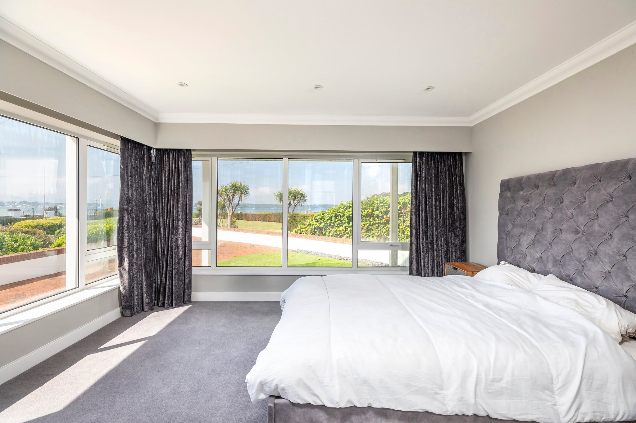 Upon entering the house, a double-height entrance hall with a galleried landing sets the tone and grandeur of this contemporary dwelling. The ground floor hosts four generously-sized double bedrooms, each with its own spacious en-suite bath/shower room. The entire house is naturally lit and carefully designed to showcase the fantastic views of the harbour. The chef's kitchen comes fully equipped with modern luxuries and boasts dual-aspect views. Ascending to the second floor, the principal bedroom offers its own balcony with breath-taking views over the harbour, plenty of built-in storage, and a large en-suite shower room.