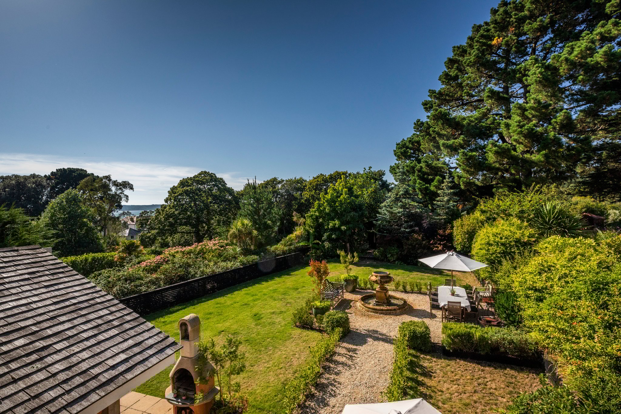 Set behind electric gates in one of the area's most exclusive roads, Sprindrift's appeal lies in its relative modesty, light, warmth and potential. Double doors lead into the impressive entrance hall, which has been opened up to present a spacious living / kitchen / dining space. You are immediately drawn to the floor to ceiling glass doors that lead out to the stylishly landscaped gardens with views over the Luscombe Valley to the harbour. The modern fitted kitchen is well appointed featuring handle-free wooden units, granite work surfaces and a large sociable breakfast bar / island. Clever use of zoning connects the kitchen with a dedicated dining room, together with a relaxing lounge area with log burner. From the dining area there is access to a second entering area. A further reception room offers a formal living room in addition to a utility room and double garage.