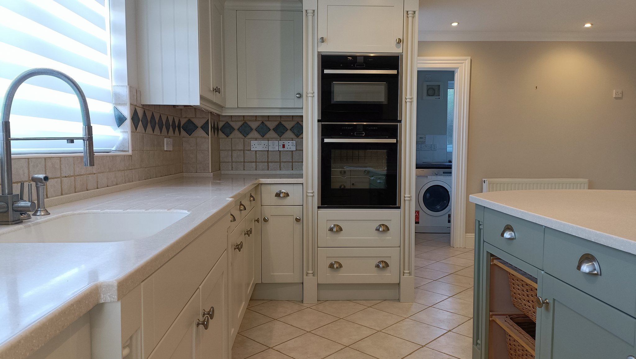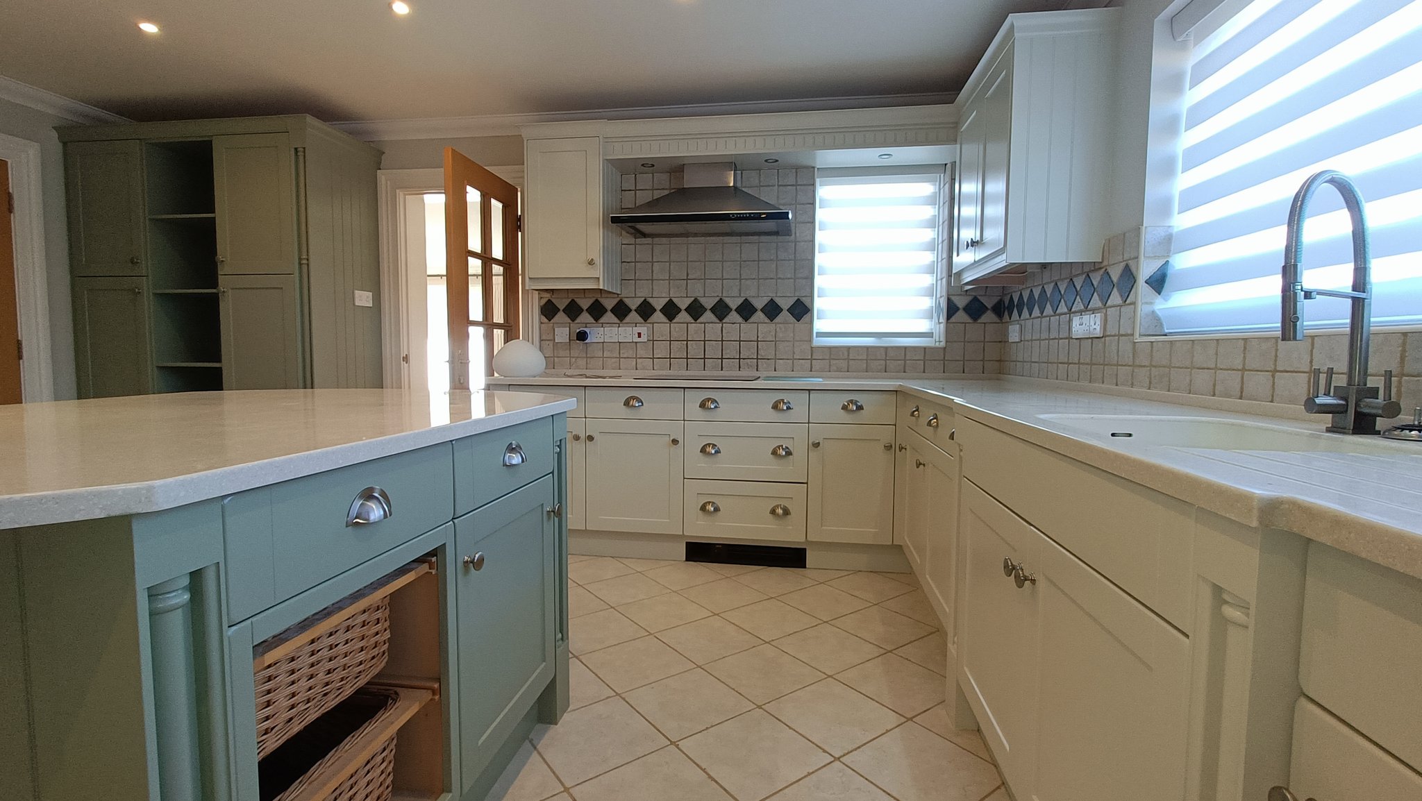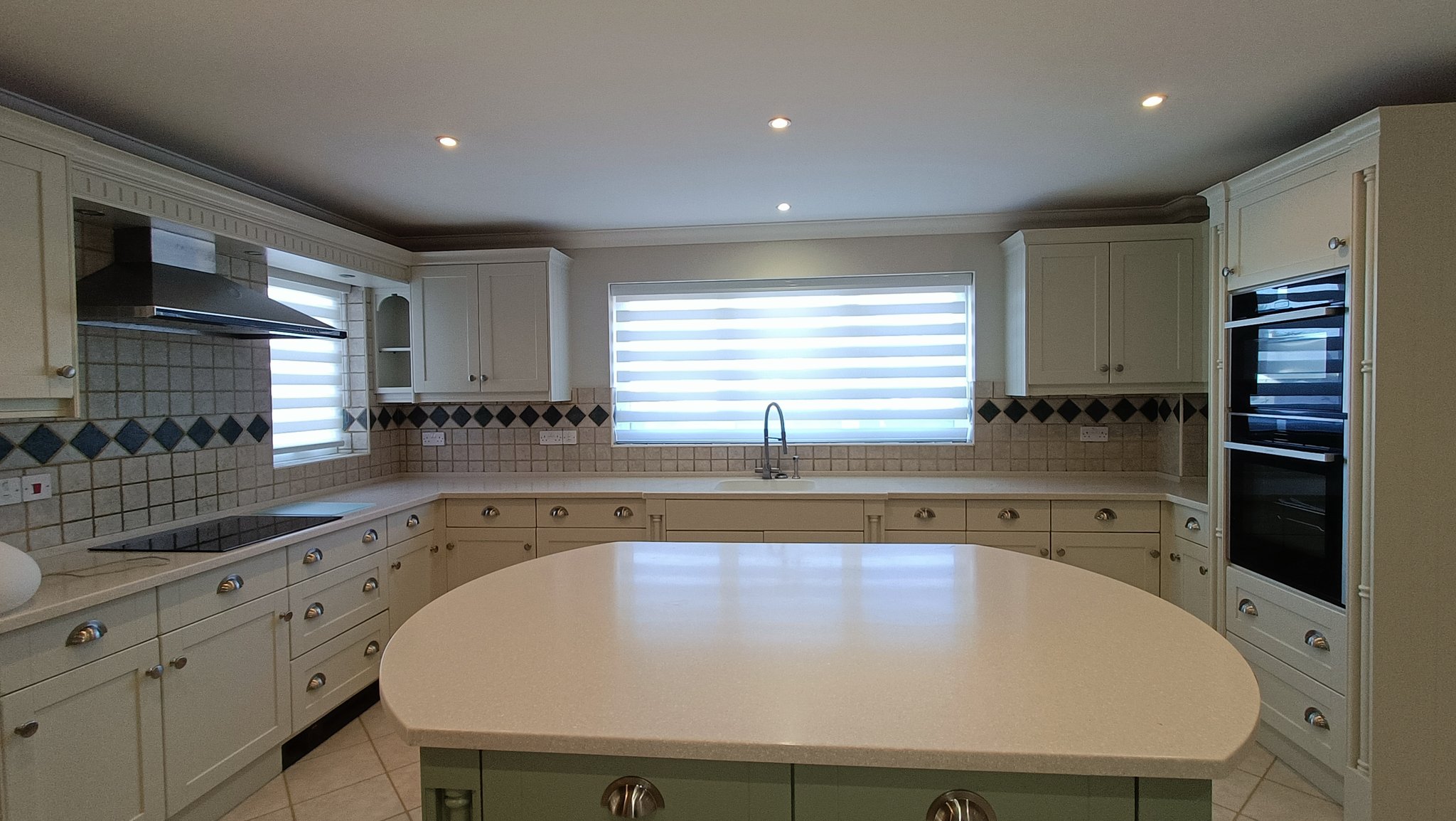 The large living room overlooks the private patio and communal gardens, enjoying the last of the evening sun with it's south westerly aspect. A modern and recently redecorated fitted kitchen is complemented by a central island and corian worktops with integral high end appliances and separate utility room.