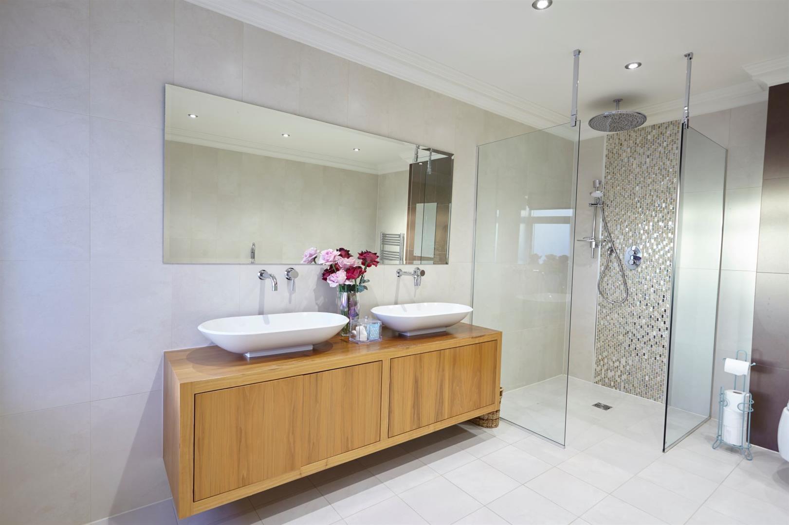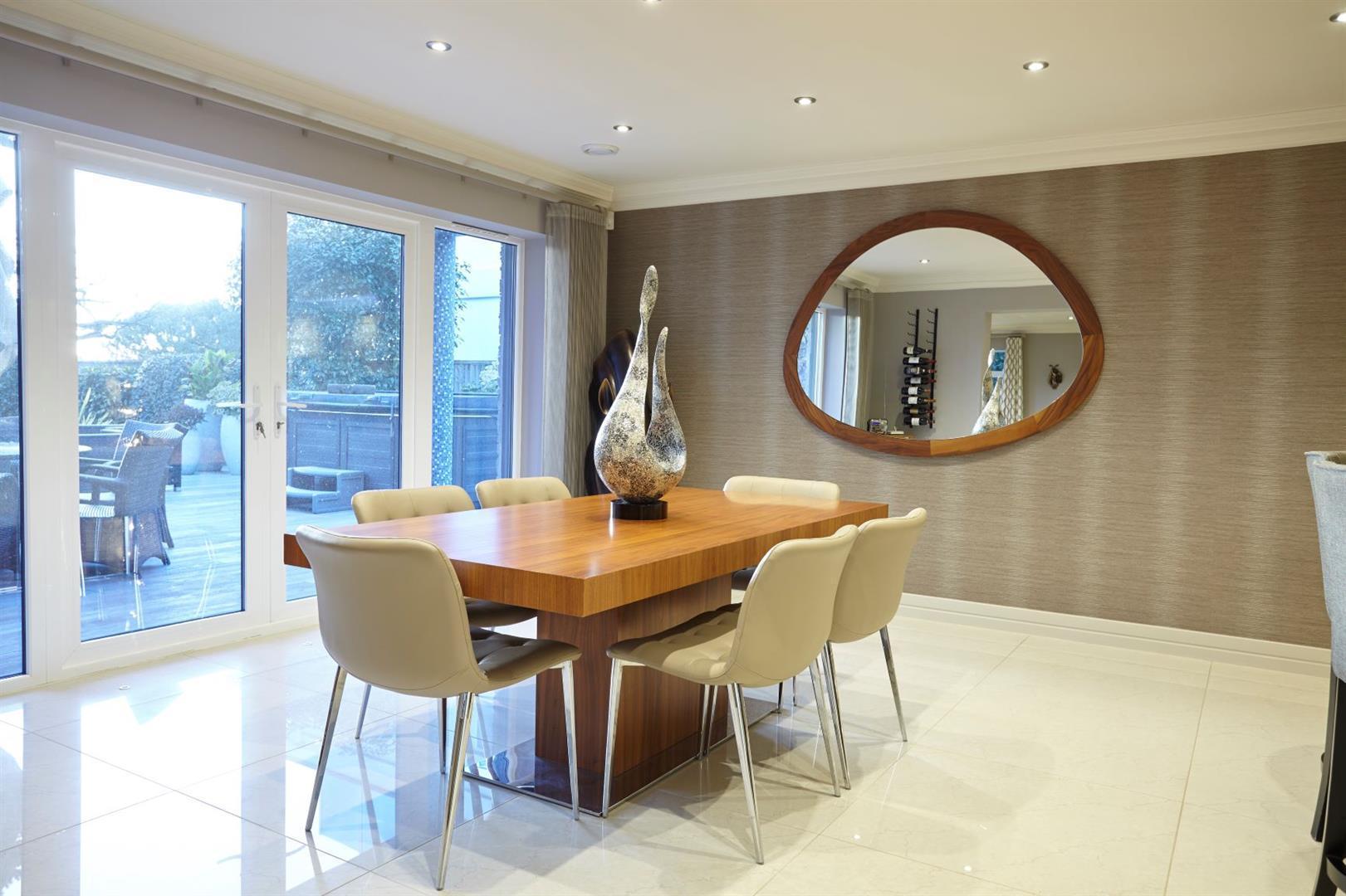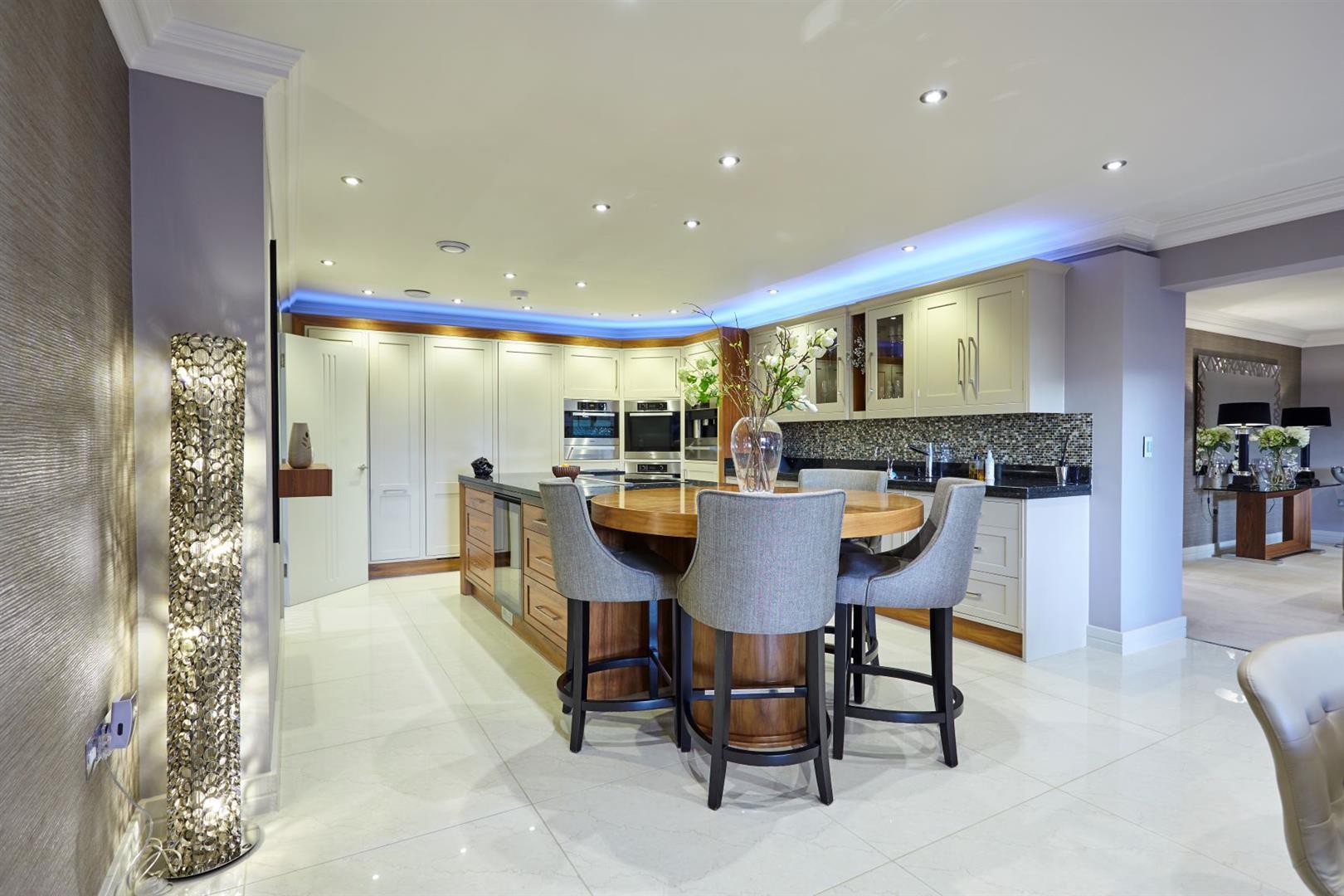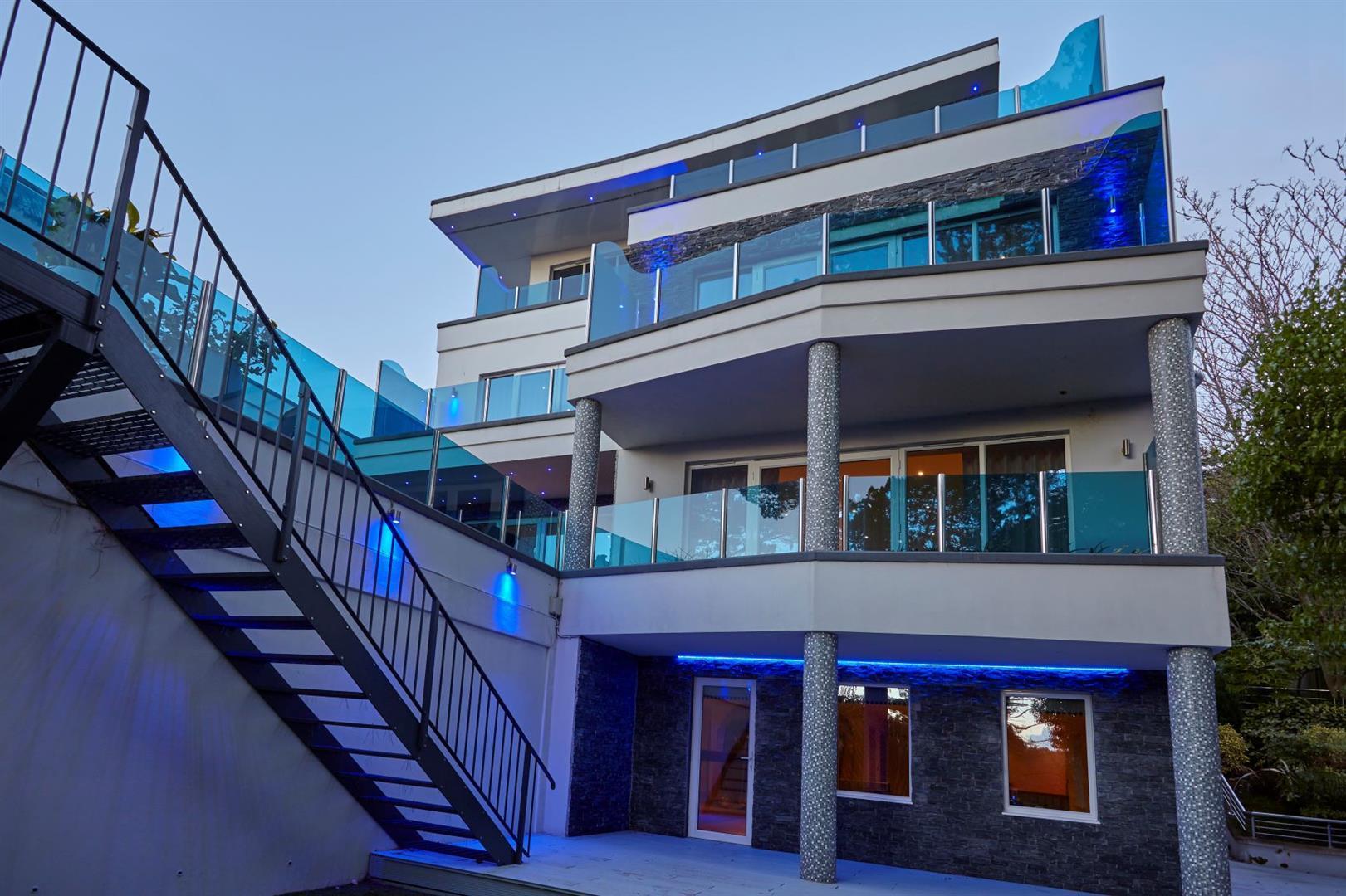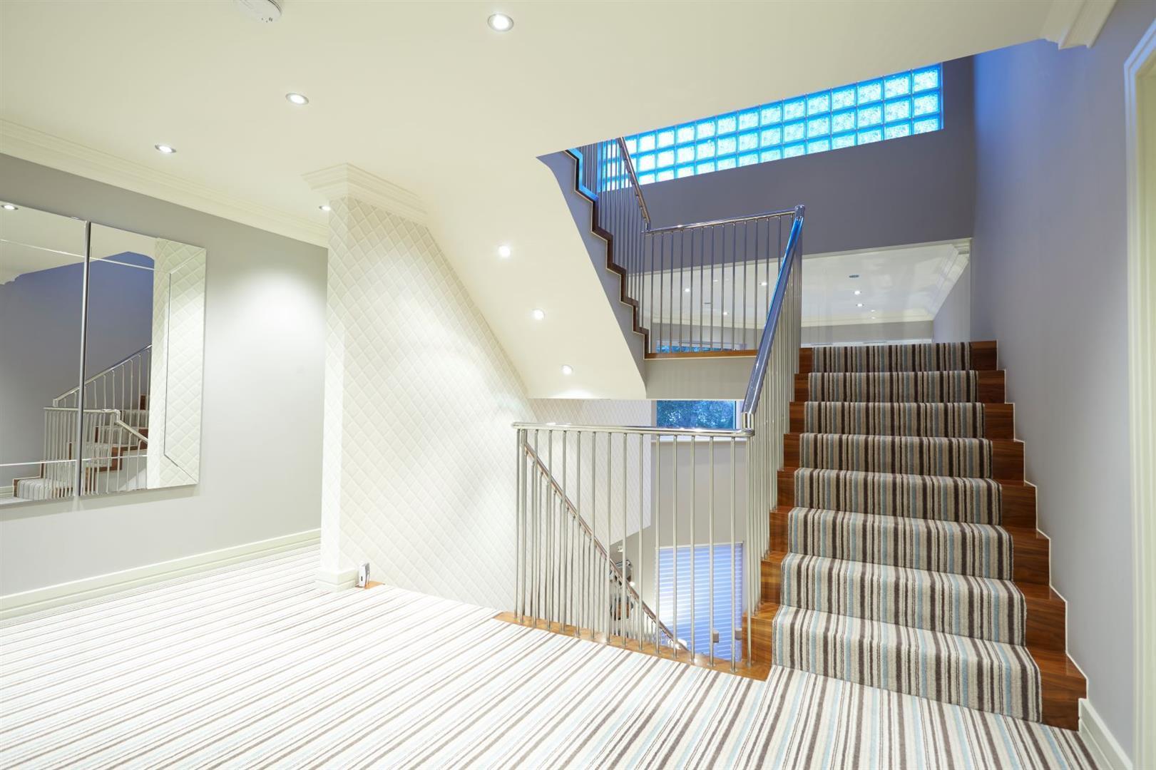 Upon entering the property, the entrance hall leads you to the beautifully appointed kitchen/dining room which is adjacent to the large family/living room, leading directly onto the South Westerly terrace area and private garden. The ground floor also benefits from a warm and inviting snug/TV room and separate study. On the Lower Ground floor, you are greeted by a 34ft x 20'8 guest bedroom suite, complete with an en-suite shower room, which offers versatility to be used as a games room or spa area, subject to permissions. On the first floor there are four double bedrooms, all benefitting from luxurious en-suite facilities and stylish dressing areas. The master bedroom certainly has the wow factor on the top floor, complete with a breathtaking en-suite bathroom and very generous balcony.