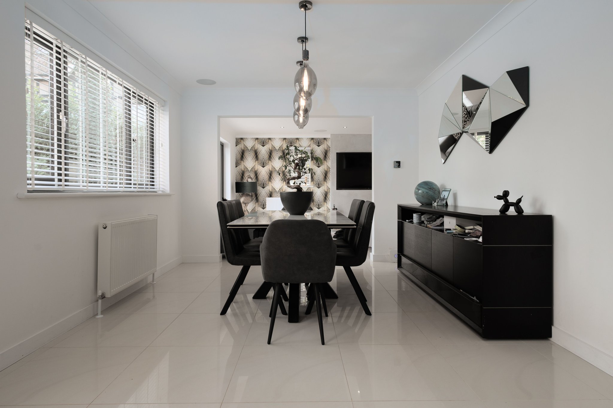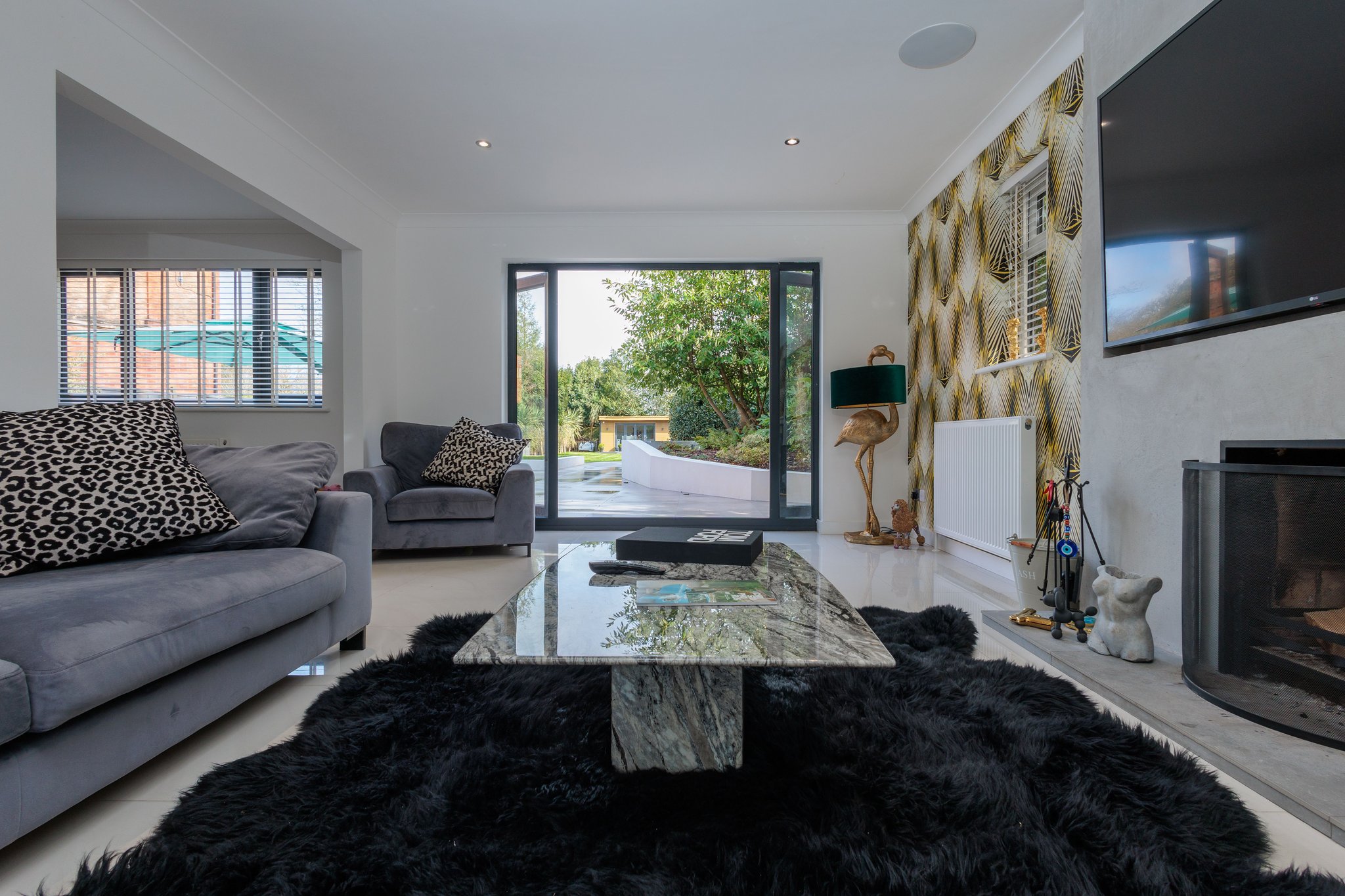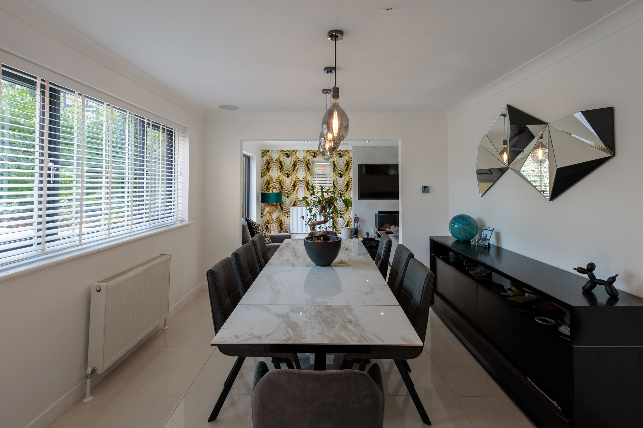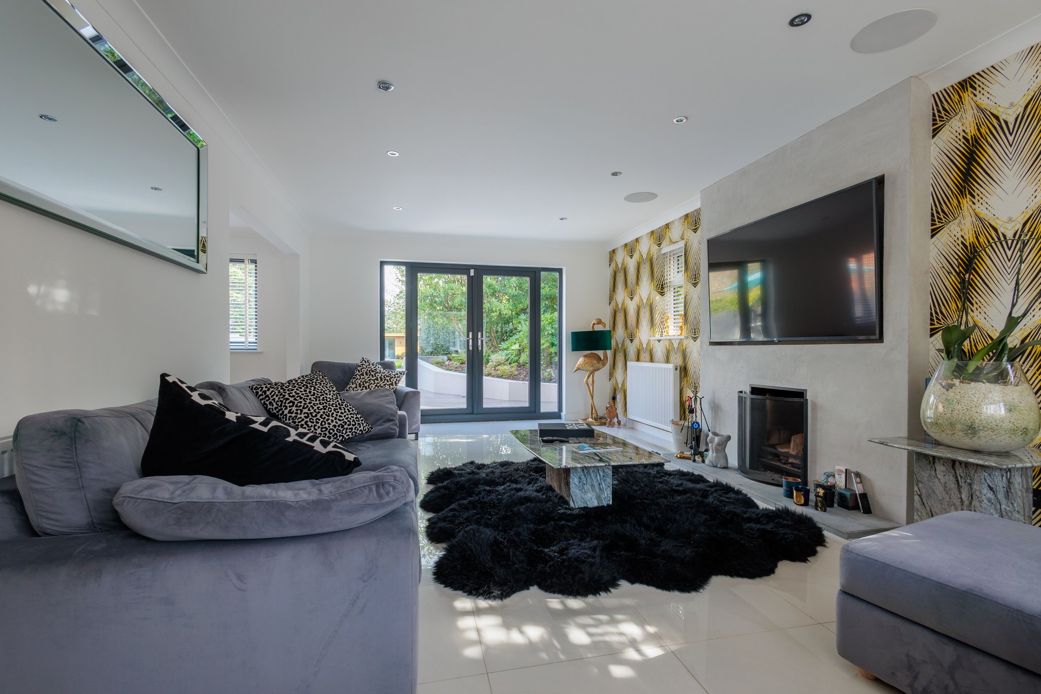 This exceptionally well presented property is approached via electric gate giving access to ample off-road parking and large single garage. The present owners have taken on a programme of work creating a modern, stylish property in keeping with current trends. The open kitchen/dining/day room has been cleverly created with it's own zoned areas and yet with a natural open flow. The kitchen is fitted with a high end range of units and integrated appliances with French doors from both here and the lounge to the porcelain paved terrace. Also on this level is the cinema room, large utility room and wc. The first floor provides 4 good sized bedrooms, the principal with luxury en suite shower room and double opening doors to the Juliet balcony and elevated views of the garden. The other three bedroom are serviced by the family bathroom.
