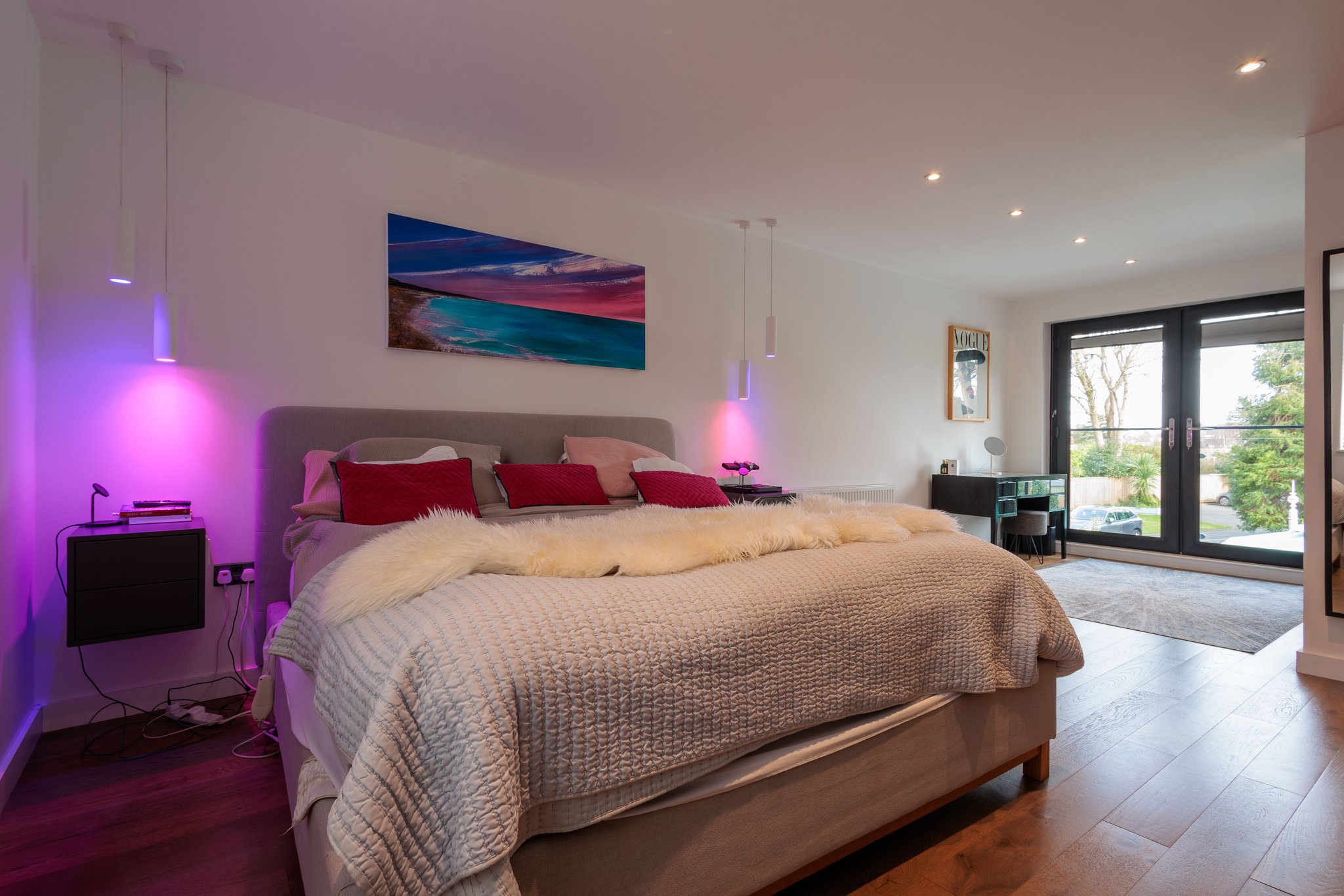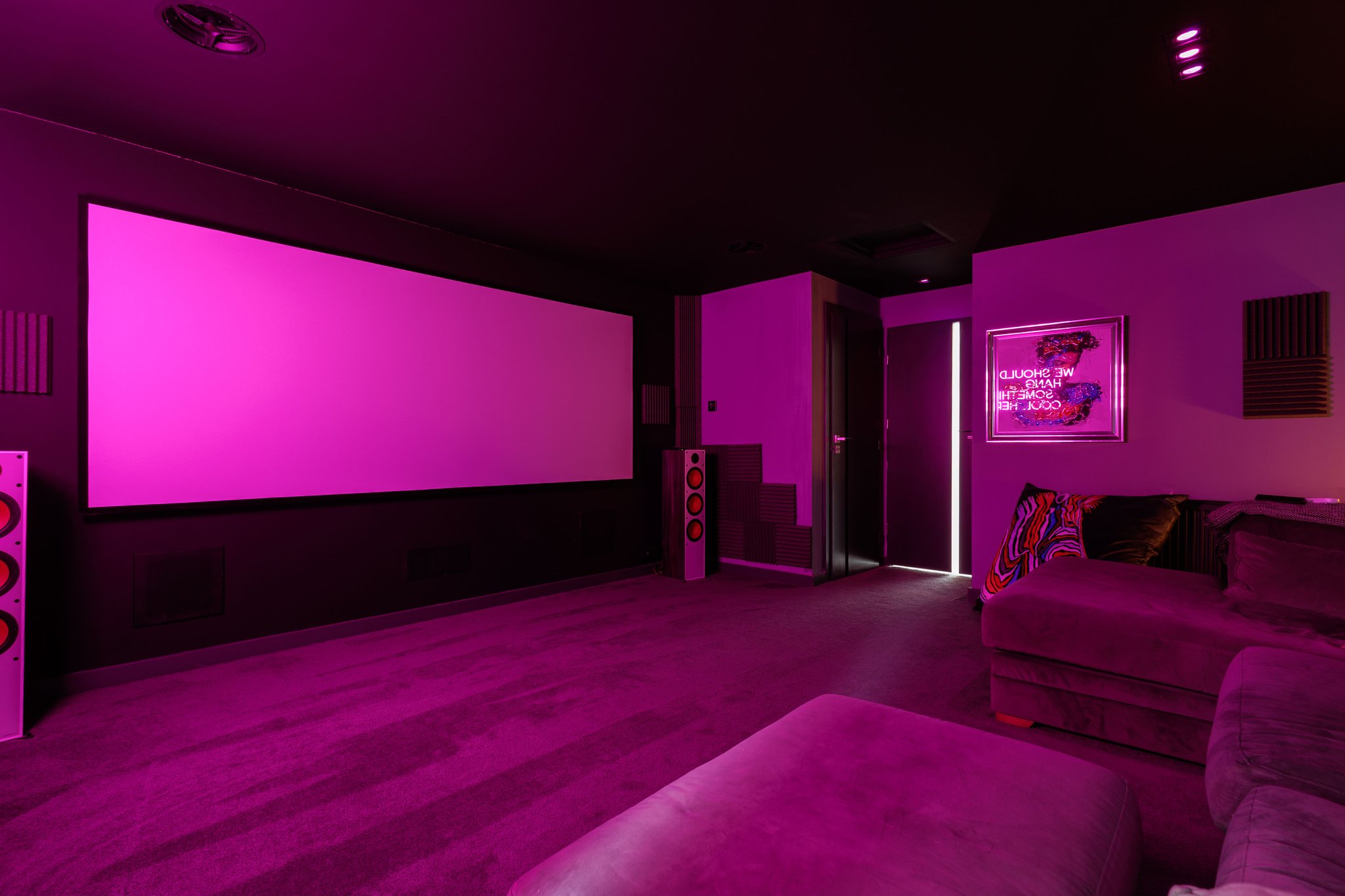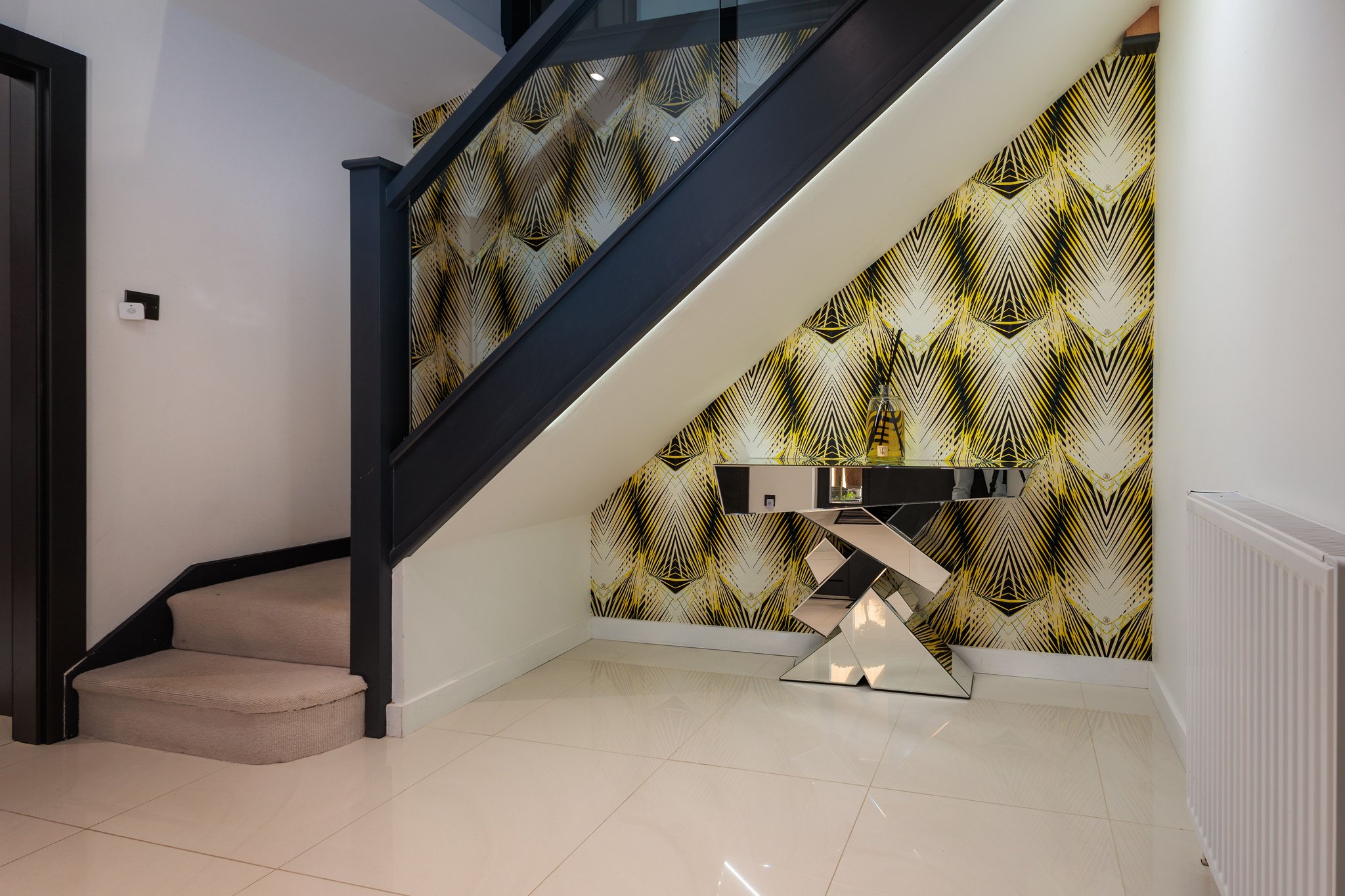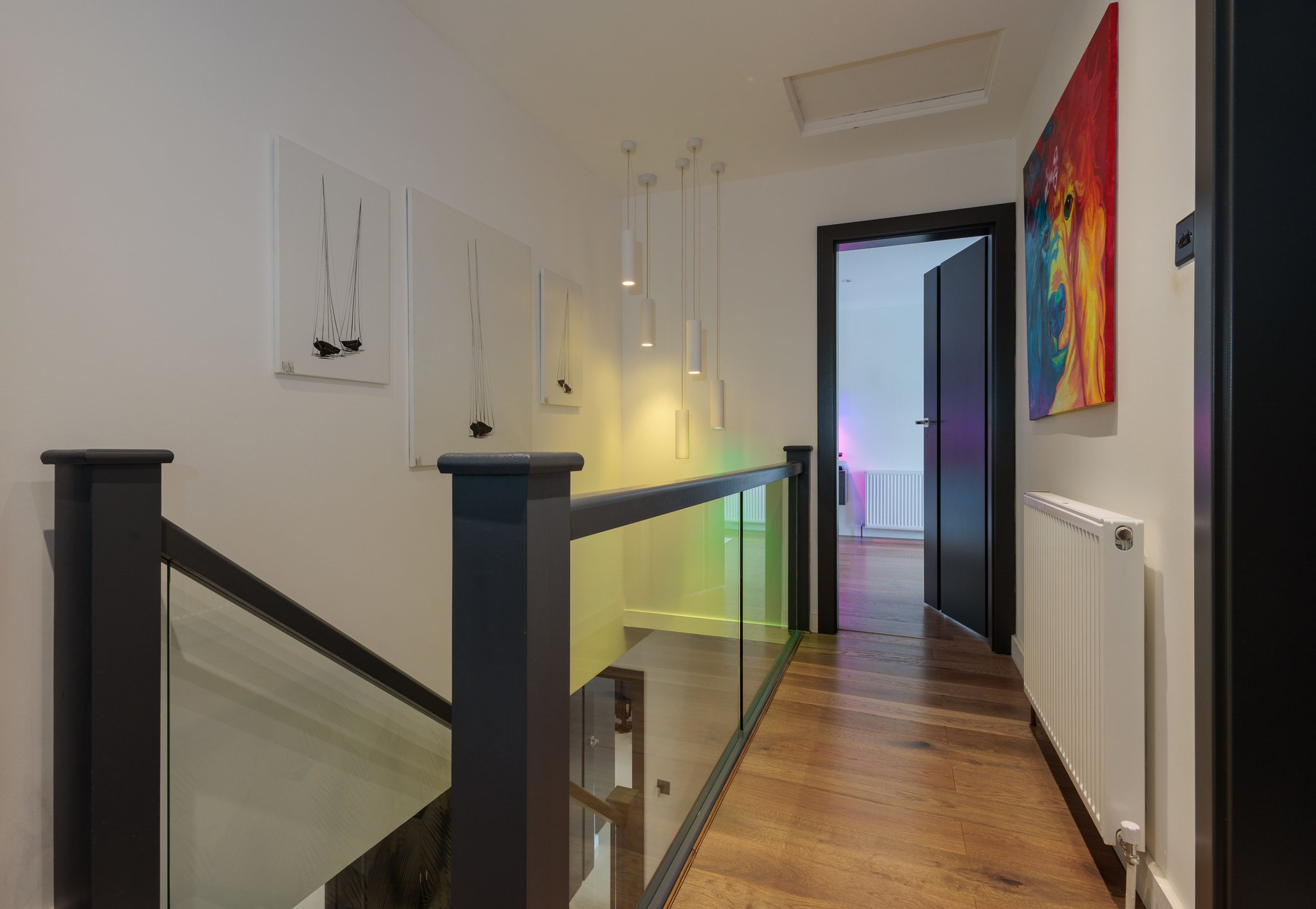 This exceptionally well presented property is approached via electric gate giving access to ample off-road parking and large single garage. The present owners have taken on a programme of work creating a modern, stylish property in keeping with current trends. The open kitchen/dining/day room has been cleverly created with it's own zoned areas and yet with a natural open flow. The kitchen is fitted with a high end range of units and integrated appliances with French doors from both here and the lounge to the porcelain paved terrace. Also on this level is the cinema room, large utility room and wc. The first floor provides 4 good sized bedrooms, the principal with luxury en suite shower room and double opening doors to the Juliet balcony and elevated views of the garden. The other three bedroom are serviced by the family bathroom.