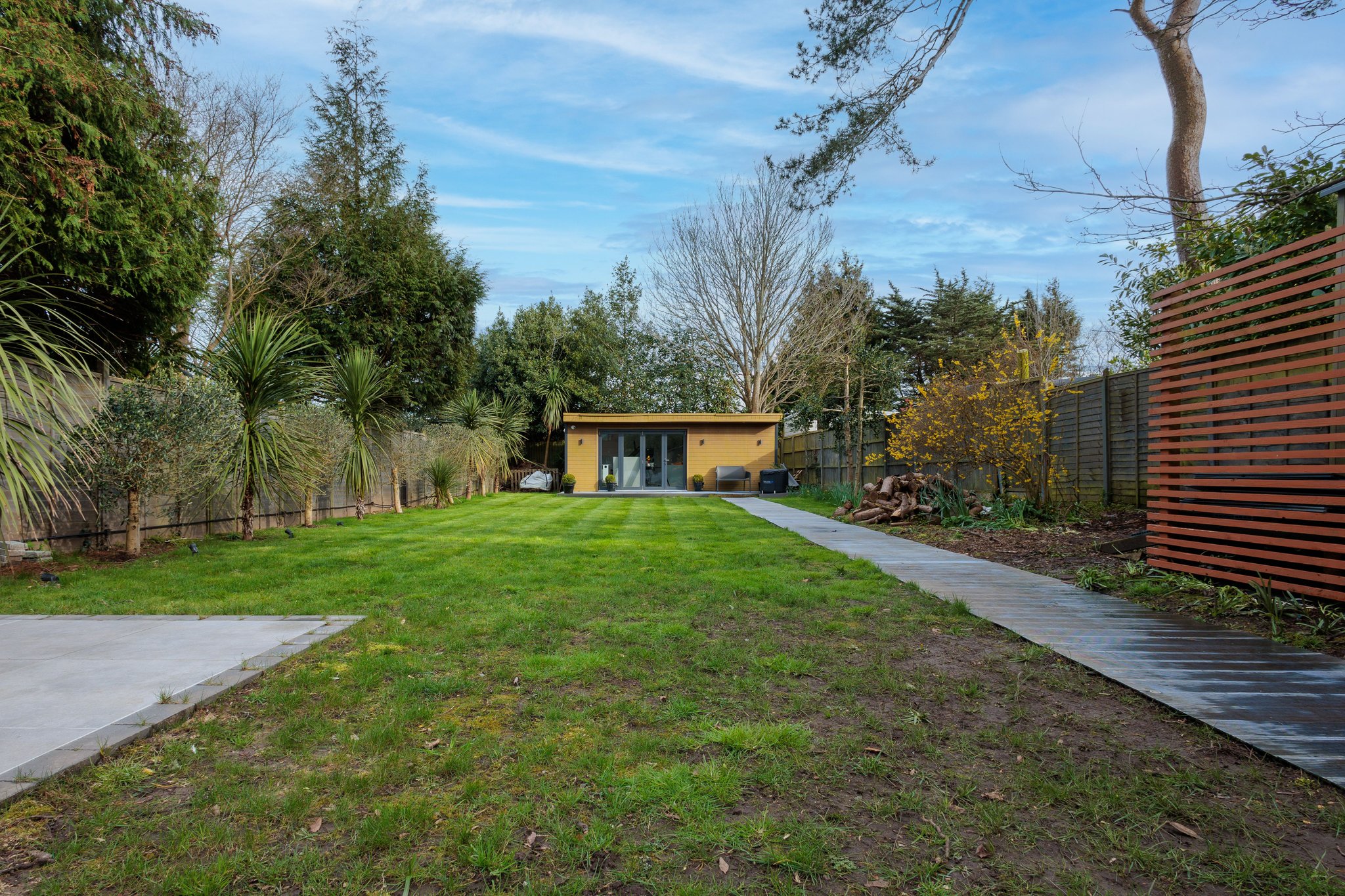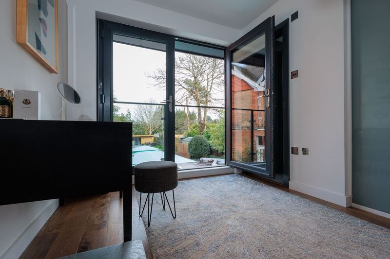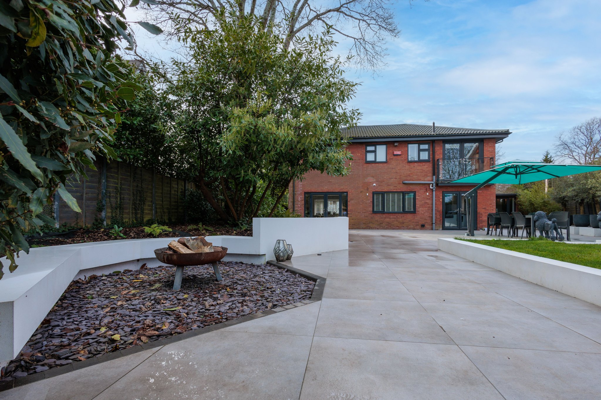 Outside, the garden, which offers a good degree of seclusion, has been created with family and entertainment in mind. From the the large paved terrace, to the circular fire pit area and the separate lawns perfect for sunbathing or a game of football. To the far end of this garden is the fitness studio but could easily be used as a home office, depending on your needs.