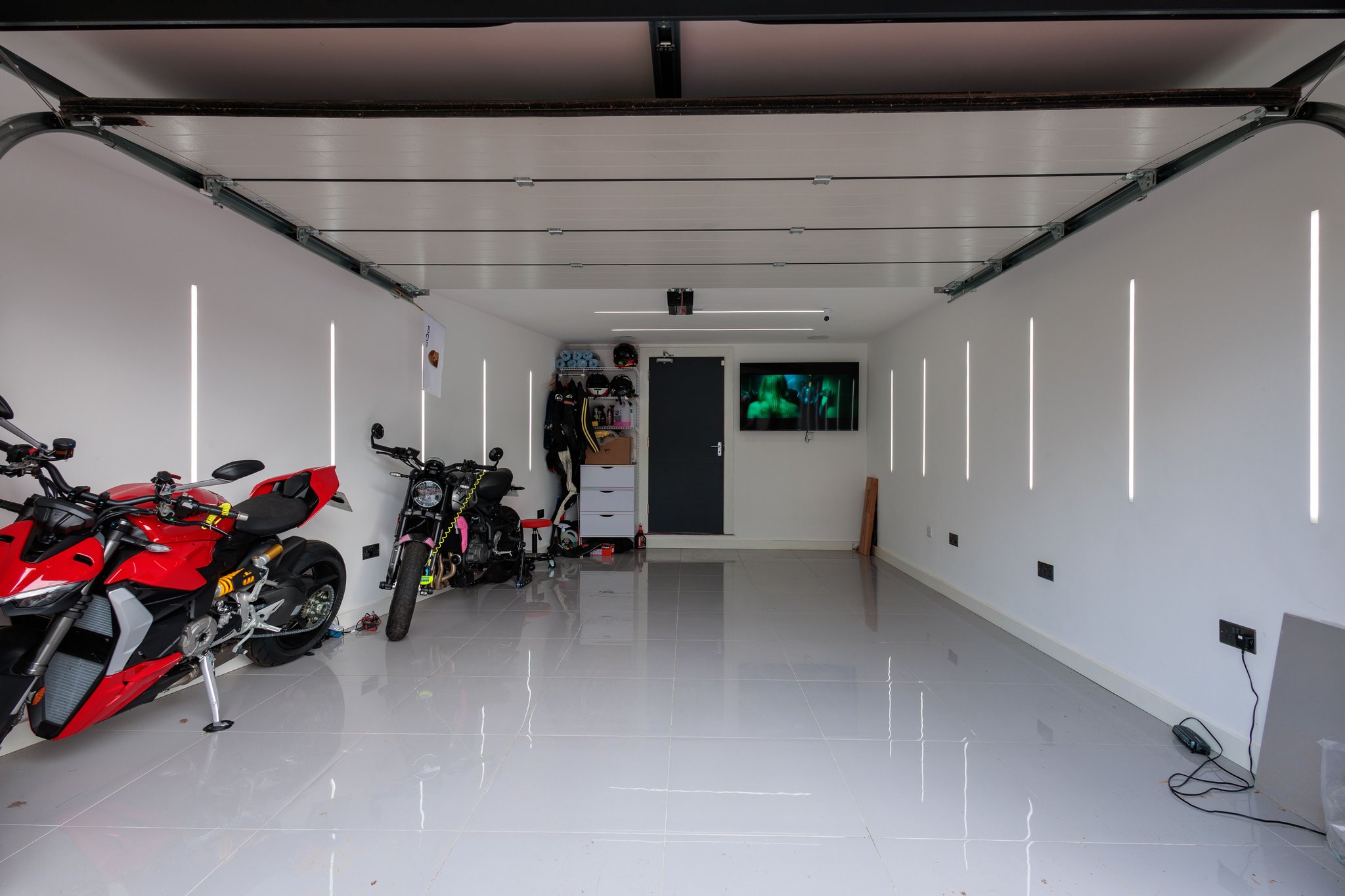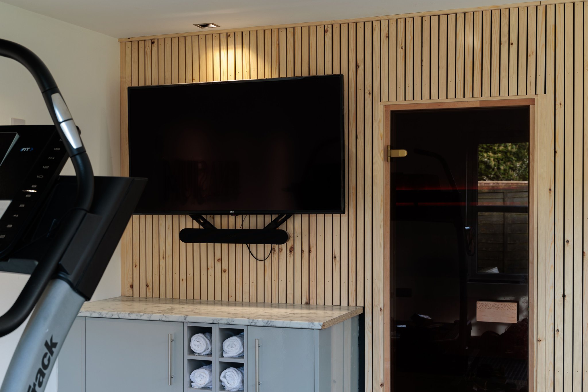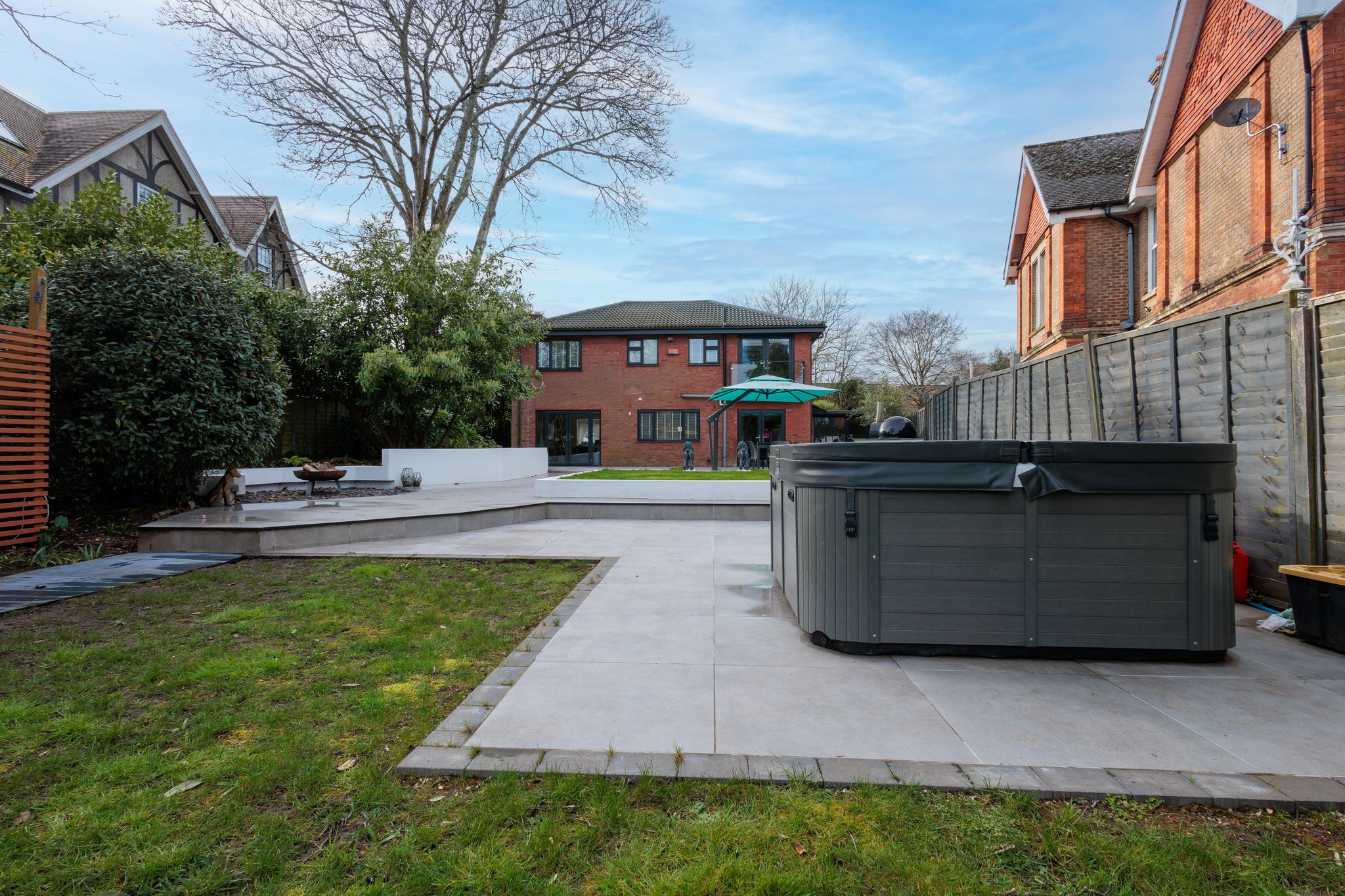 Outside, the garden, which offers a good degree of seclusion, has been created with family and entertainment in mind. From the the large paved terrace, to the circular fire pit area and the separate lawns perfect for sunbathing or a game of football. To the far end of this garden is the fitness studio but could easily be used as a home office, depending on your needs.