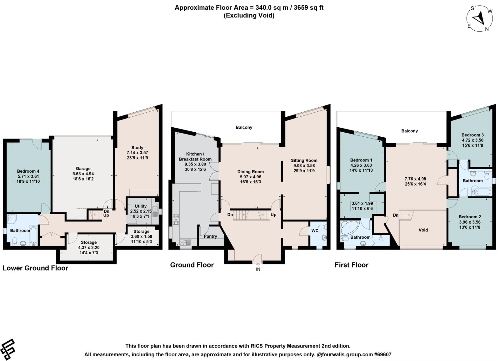 On the upper floor, a vaulted viewing lounge provides a unique vantage point across the water, with direct access to another balcony. The principal bedroom suite enjoys full harbour views, complemented by a walk-through dressing area and spacious en suite. Two further double bedrooms share a stylish Jack and Jill bathroom, while the fourth bedroom is located on the garden level, alongside a bathroom, dedicated office, and ample storage areas.