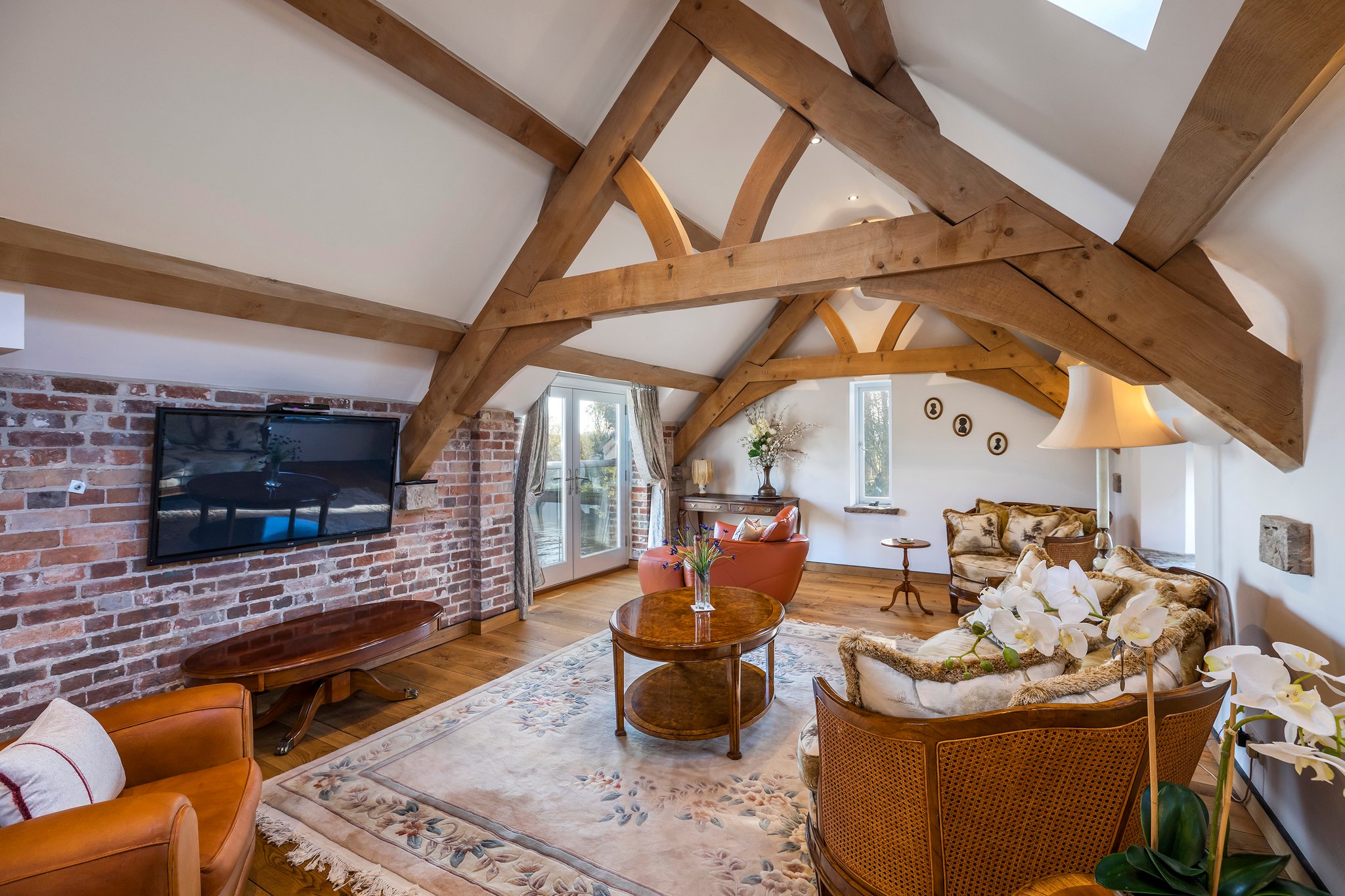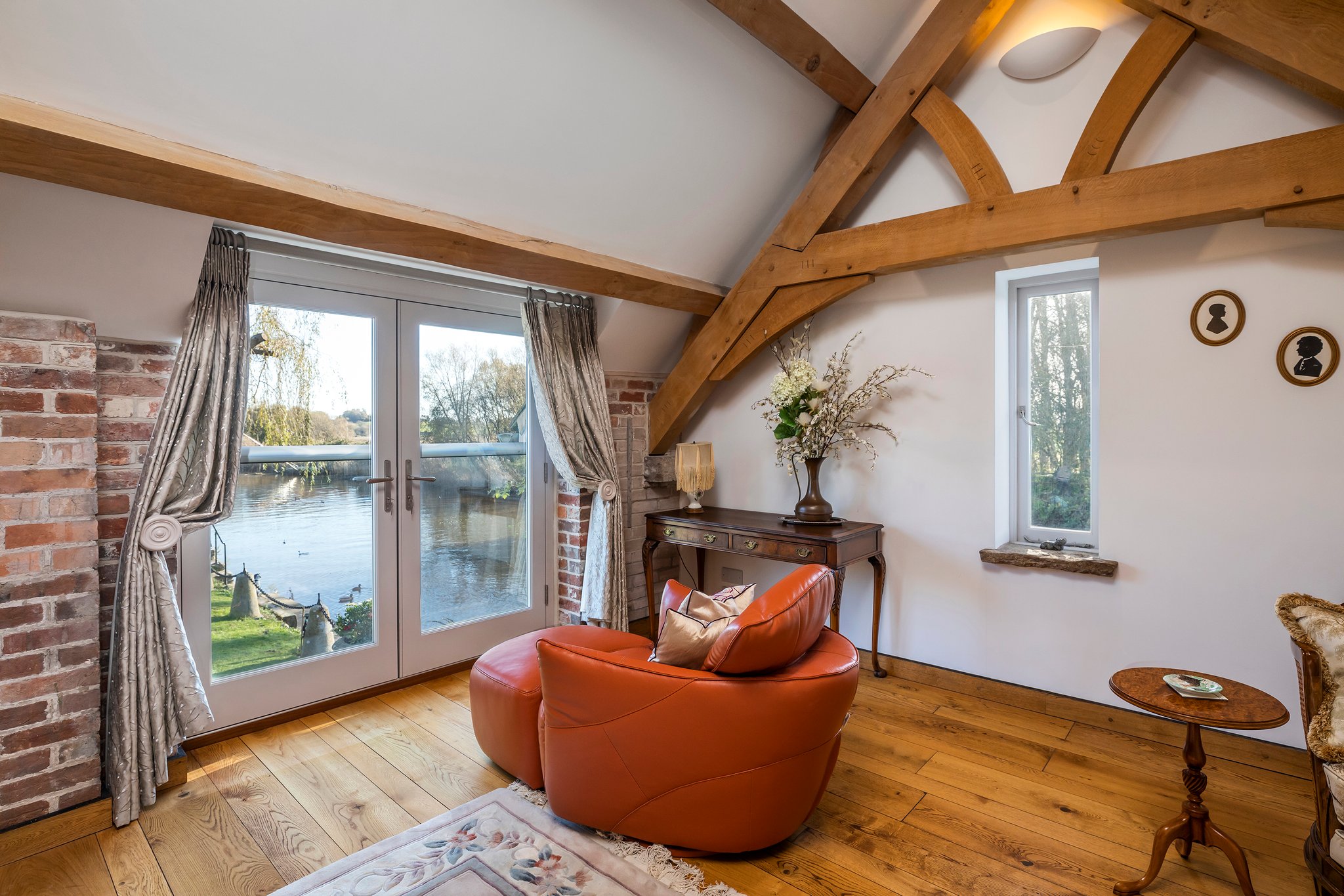 The principal living areas of the house are on the ground floor and lead from the entrance left and right. The beautifully appointed kitchen is open plan with the dining area with high specification units, marble work tops and an Aga Range. Wooden stairs lead you to the mezzanine lounge with views out to the river and hills beyond - with exposed wooden beams and original restored brickwork, the sitting area offers a cozy space; the views are breath taking. From the kitchen you can access the courtyard garden and lawn leading to the water. Turning right in the hallway you will find that there are three more bedrooms one is currently used as a snug with again doors leading to the courtyard. There is a principal suite with dressing area and en-suite bathroom on the ground floor along with an independent bedroom and bathroom on this floor too. Stairs lead up to another bedroom suite with extensive views over the river and Purbeck hills and beyond.