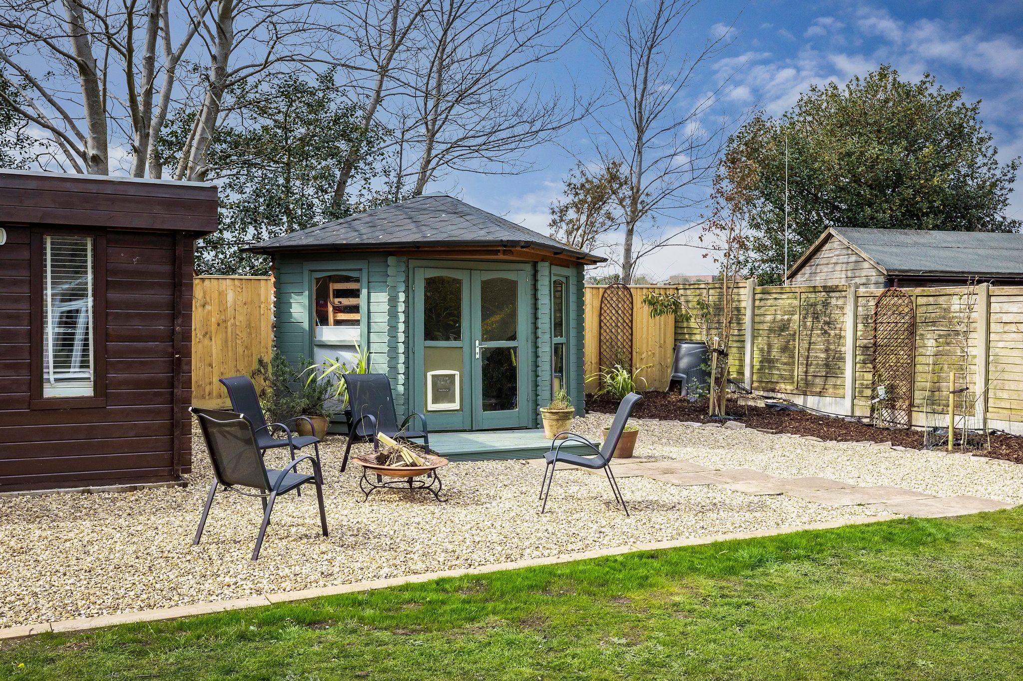 The level rear garden is bound by fencing to all sides and mainly laid to lawn, making this dog and children friendly. To the far end of the garden is a "Keops" cabin perfect as a home office or just a relaxing place to escape to, plus an additional garden chalet. There are many area's to sit in this beautiful garden but none more convenient than the large patio perfect for the sunny days ahead.