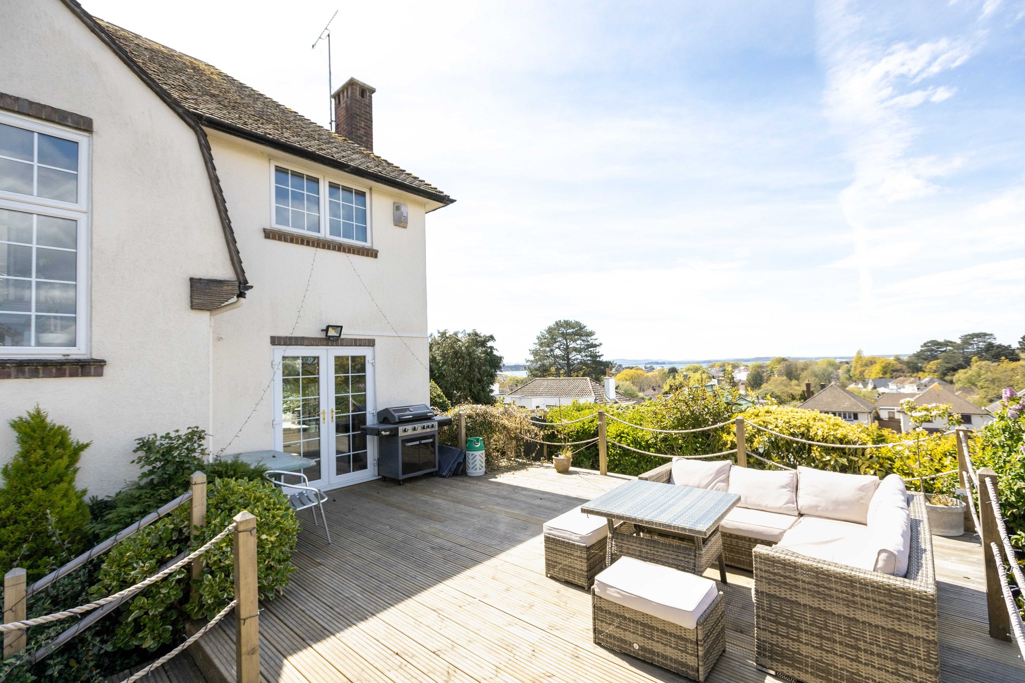 This beautiful cottage has recently been extended and fully refurbished. An attractive entrance hall with tiled flooring and galleried landing greet you as you enter the property which extend to the ground floor cloakroom. The stunning and recently extended kitchen/breakfast/day room is certainly the hub of the home, featuring underfloor heating, a brand new kitchen with wooden worktops and a sociable central island which separates the kitchen from the dining and living area, where large picture windows afford lovely views of Poole Harbour. From here, double doors lead to the rear garden. Accessed from the kitchen is a pantry and a large conservatory which has been converted into a utility room. The bright living room boasts a beautiful picture window and stunning harbour views and provides access to a large decked area, also benefitting from harbour views. On the first floor are three double bedrooms, the master suite boasts wonderful views from the large picture window across Poole Harbour over Brownsea Island and Sandbanks. Double doors are in place for access to a balcony which has been granted planning permission but not constructed. The modern en-suite shower room features floor to ceiling tiles and is accessed via a fitted dressing room. The second bedroom enjoys equally a good views over the harbour and also over Poole itself. The third bedroom has fitted wardrobes and shares a beautifully appointed family bathroom. The garden is a particular feature of this property as the house is located to the back of the plot. The garden has been divided into several different areas with the main focal point being the large decked are which enjoys sun all day. To the left hand side of the property is an elevated seating area which enjoys the last of the evening sun and stunning sunsets. The remainder of the garden is laid to lawn with mature shrubs and fruit trees. A garage offers useful storage in addition to a garden shed.