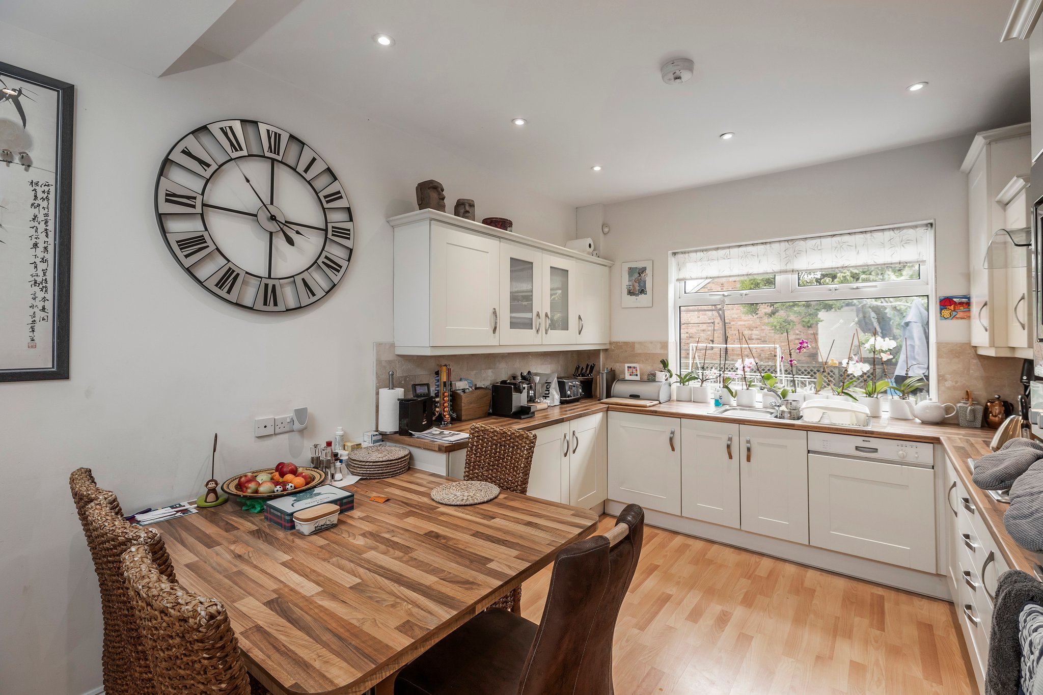 This light a spacious family home offers versatile accommodation. An inviting entrance hall greets you as you enter the property. The large living room has patio doors giving direct access onto the garden. The modern kitchen overlooks the rear garden and includes a range of integrated appliances complemented by a large wooden effect worktop and integrated dining table, an additional preparation area with access to the side of the house. Wooden flooring features throughout the majority of the ground floor with the exception of the dining room which enjoys views of the green.
