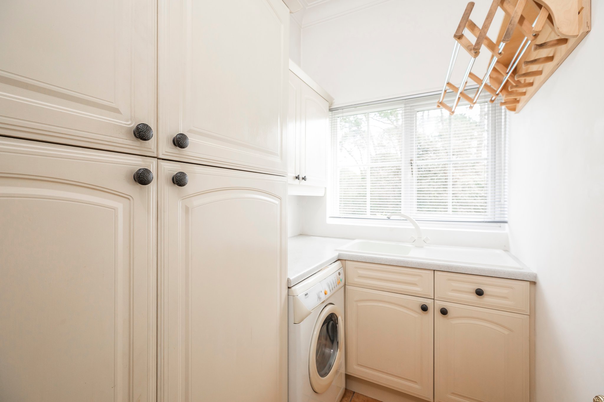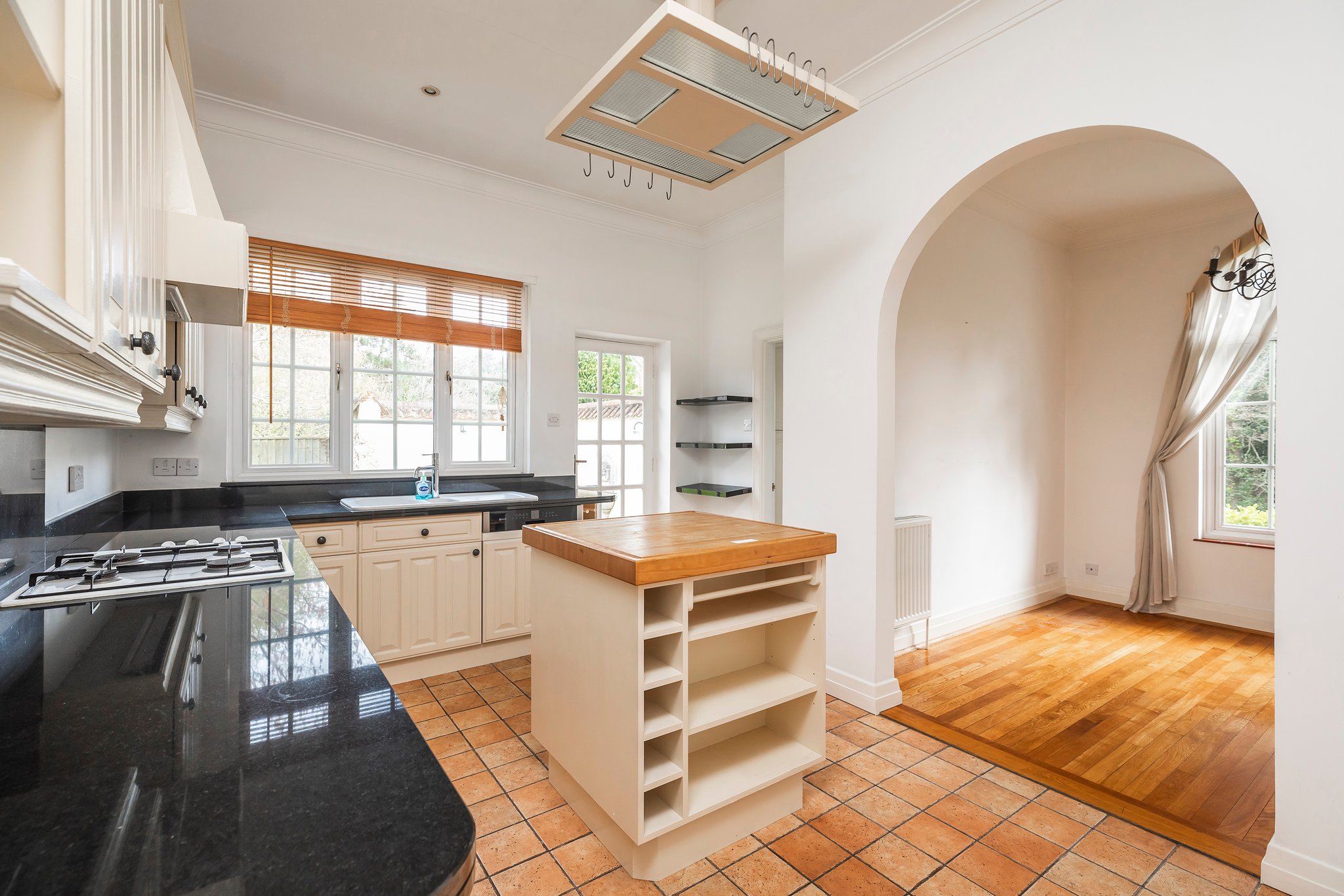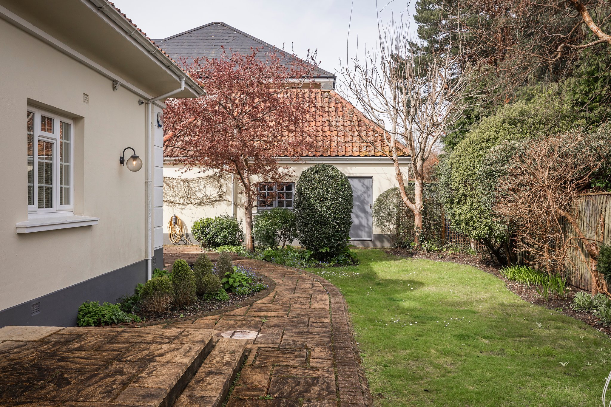 The LIVING ROOM stands out, boasting stunning feature windows overlooking the gardens, a large gas fireplace, and direct access to the kitchen/dining room. The KITCHEN features integrated appliances, Neff Dishwasher, a central butchers block, a separate DINING/BREAKFAST AREA and a SEPERATE UTILITY ROOM. A back door leads to the rear patio. The DINING ROOM mirrors the Living room's charm with feature windows. A STUDY/BEDROOM 4 offers garden access, and there's an additional 'SNUG'/BEDROOM 5. The ground floor benefits from a bathroom with a bath.
