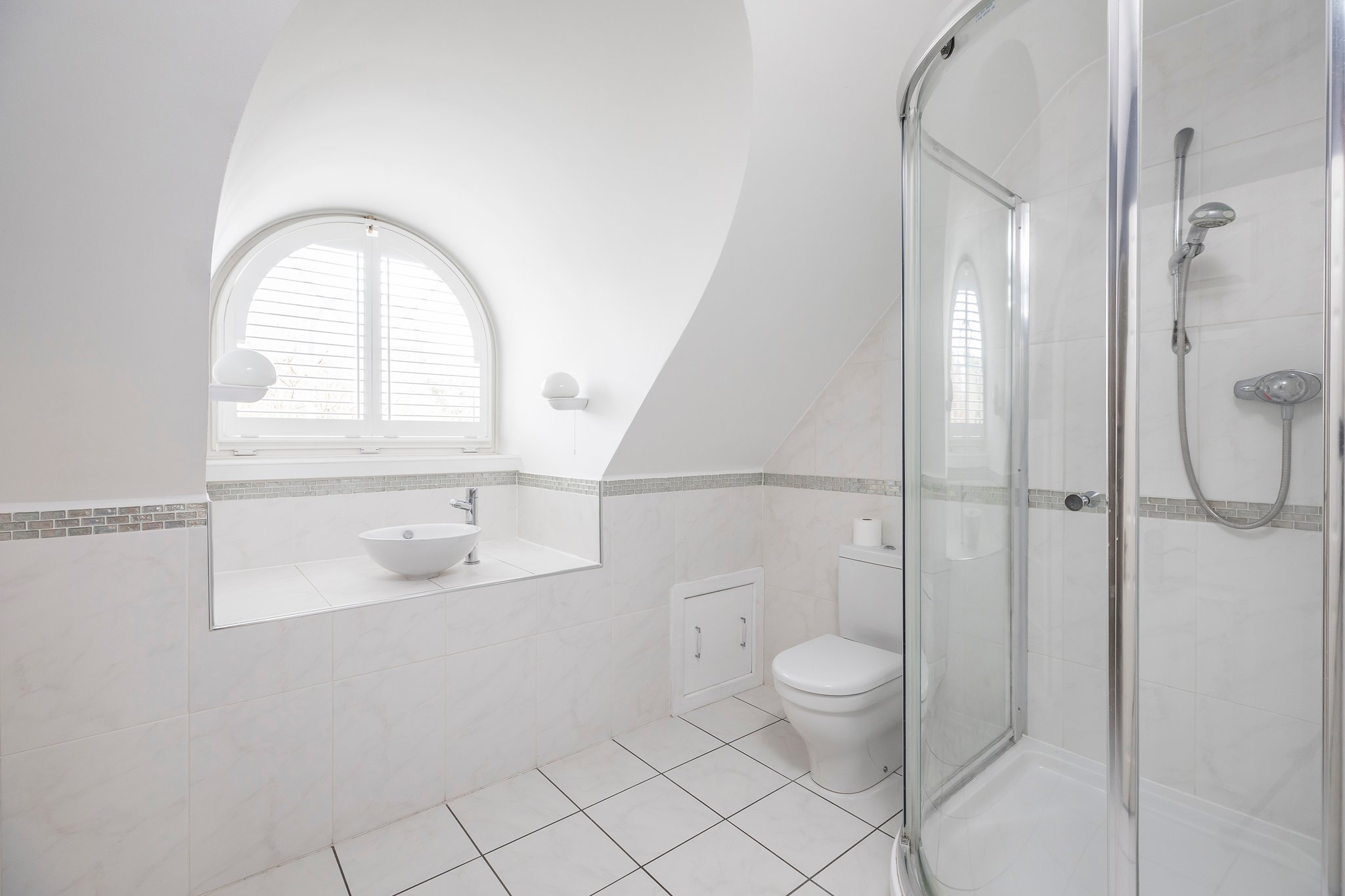 Upstairs, three double bedrooms offer fitted wardrobes and feature windows. The principle includes an en suite and a walk-in wardrobe. The main family bathroom is tiled.