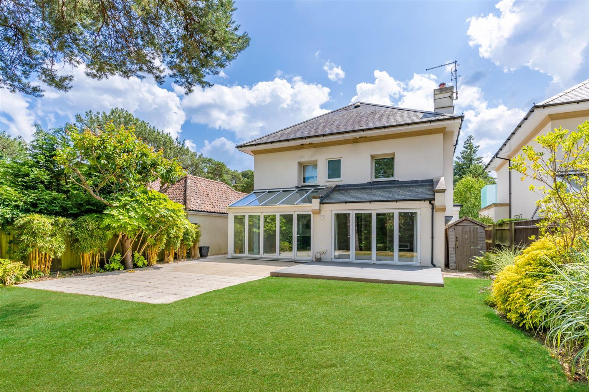 A prestigious detached house situated on a quiet and desirable road, backing on to world class golf course. The house is situated behind electric gates with accommodating driveway and electric double garage. Accommodation has four spacious double bedrooms with luxurious en-suites and fitted wardrobes. Master suite boasts front facing sun terrace balcony. open plan kitchen and living area with classy French doors leading into low-maintenance garden.