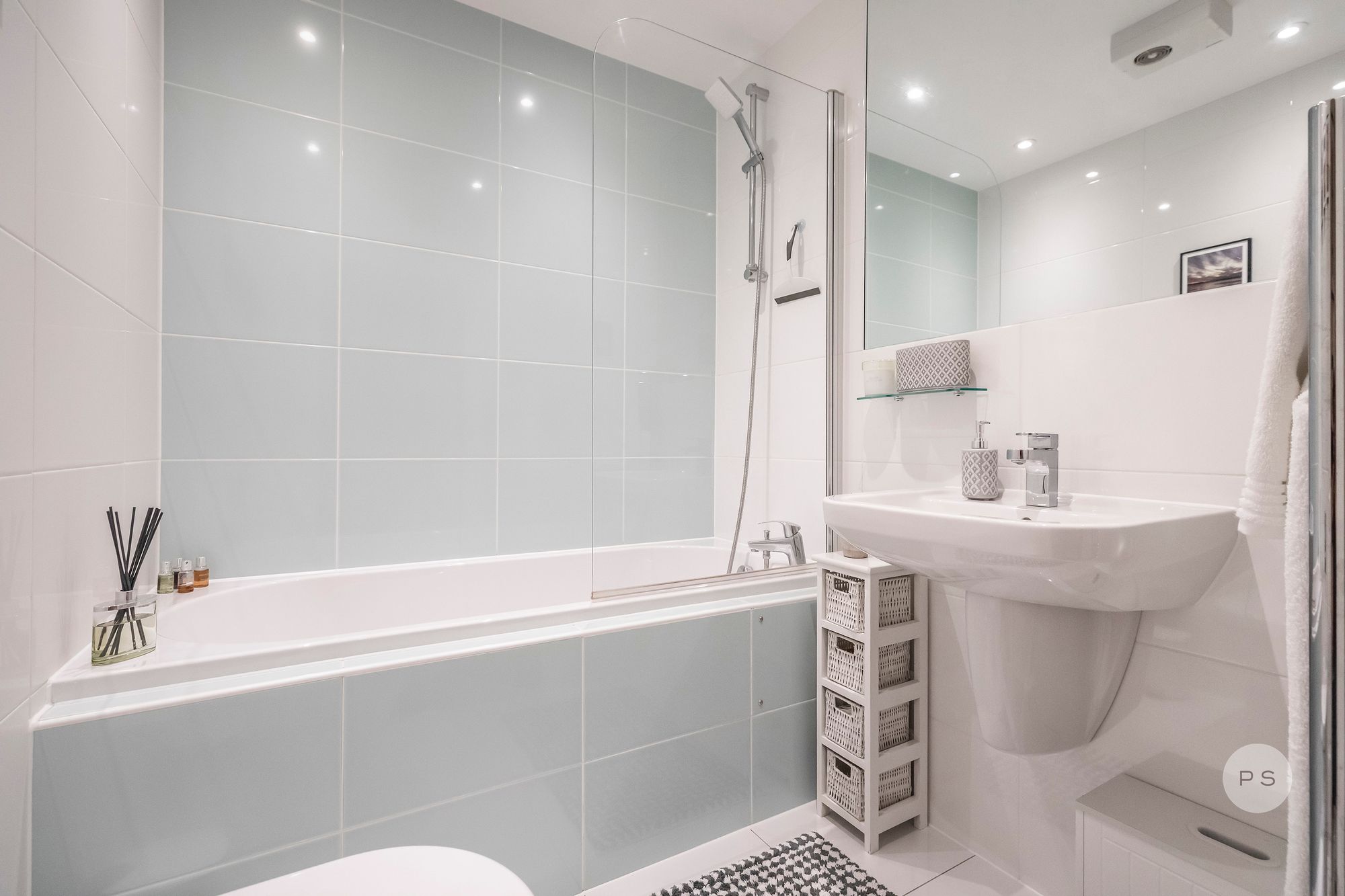 The open plan living, dining, and kitchen space is designed for modern living, with shaped glazed doors leading onto the terrace, creating a seamless indoor-outdoor flow. Both double bedrooms include high-quality fitted wardrobes, with the principal suite also enjoying access to the terrace and a sleek en-suite shower room. A second family bathroom serves bedroom two.