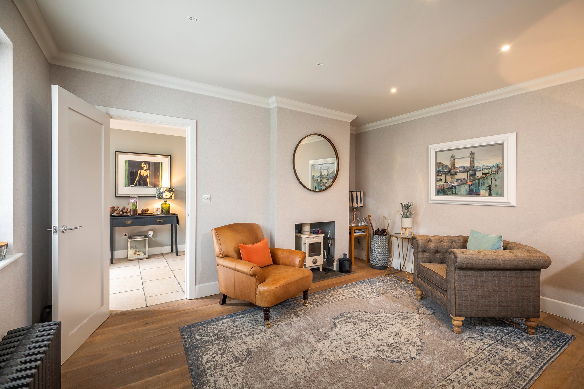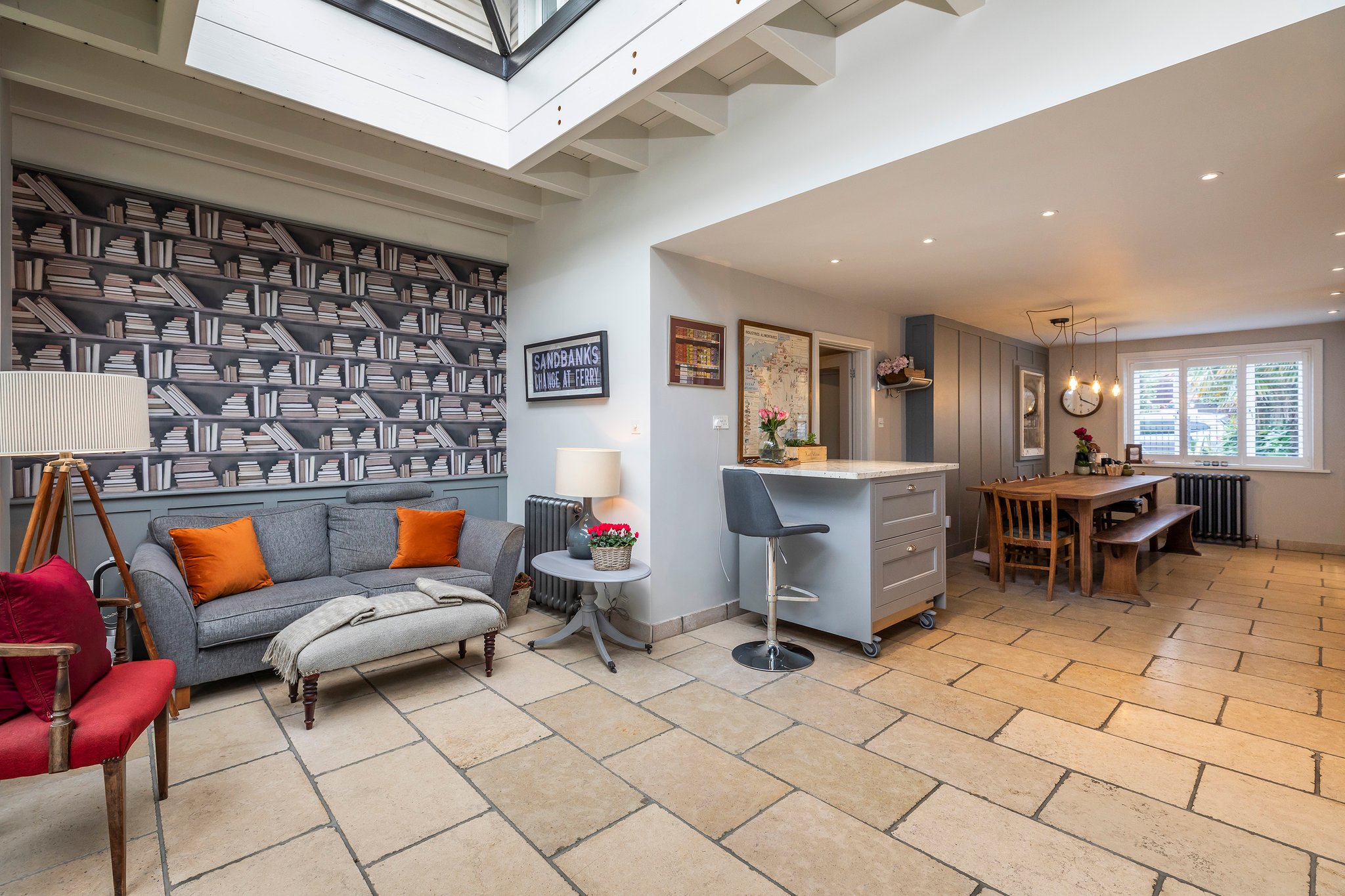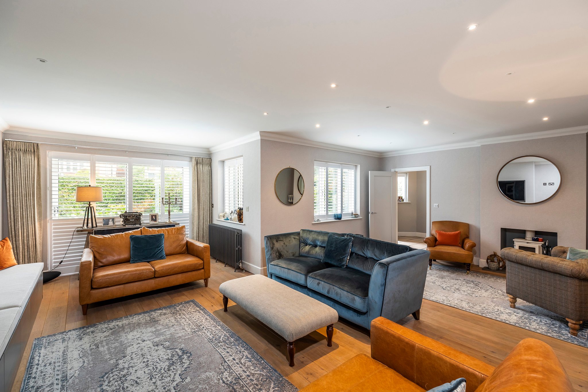 This stunning home has been extensively remodelled by the current owners to blend modern living with a traditional timeless feel. Featuring a spacious entrance hall with oak flooring that continues into the formal living room which has ample space for dining and features doors onto the front garden and into the study/playroom. The beautifully designed kitchen boasts a range of fitted appliances complimented by stone worktops and a matching movable island making it perfect for those who enjoy entertaining, with room to seat 12 at the dining table. The kitchen opens into an impressive orangery with full height windows and doors which flood the kitchen with light allowing space for a cosy living space adjacent to the log burner. In addition, on the ground floor is a large utility room offering a good range of storage cupboards, built-in washing machine and back door. Stairs lead from the entrance hall to the impressive main bedroom featuring an open-plan ensuite shower room complete with bath, which leads into the impressive bedroom with extensive wardrobes and patio doors accessing the large south-west facing terrace with spiral staircase to the front garden. Bedrooms two and three are both doubles and share the modern family shower room. Bedroom four is currently used as a teenager's den. From the orangery, doors lead to the pretty garden which is partly walled. To the side of the house is a covered outdoor kitchen area and access to the front garden. The house is approached via electric gates and a block paved driveway provides off-road parking for serval cars and access to the double garage.