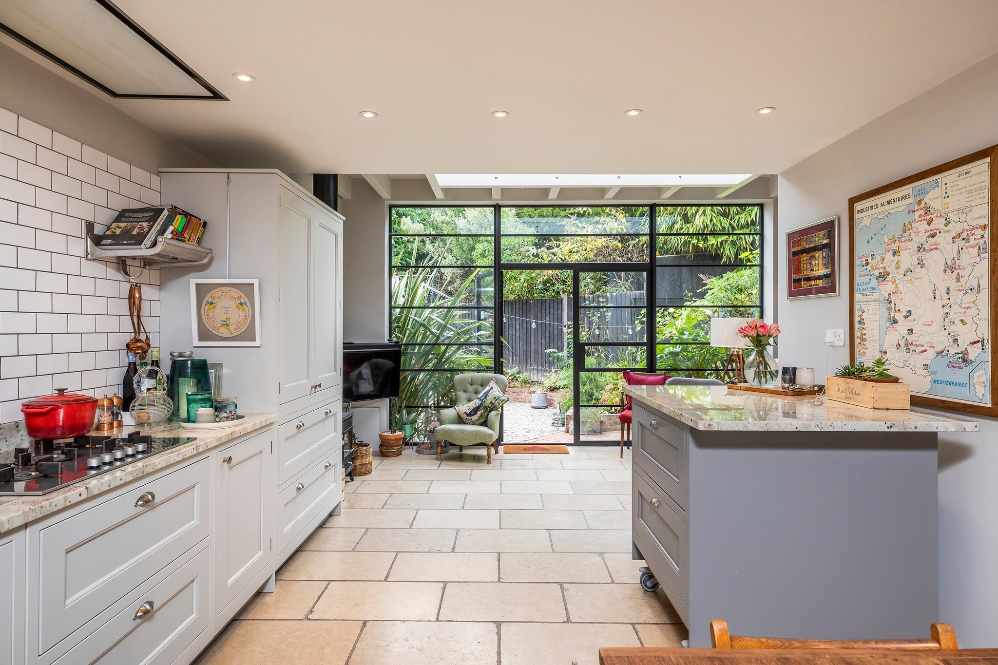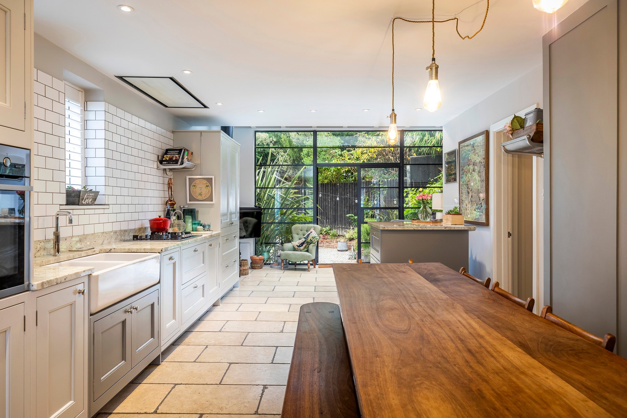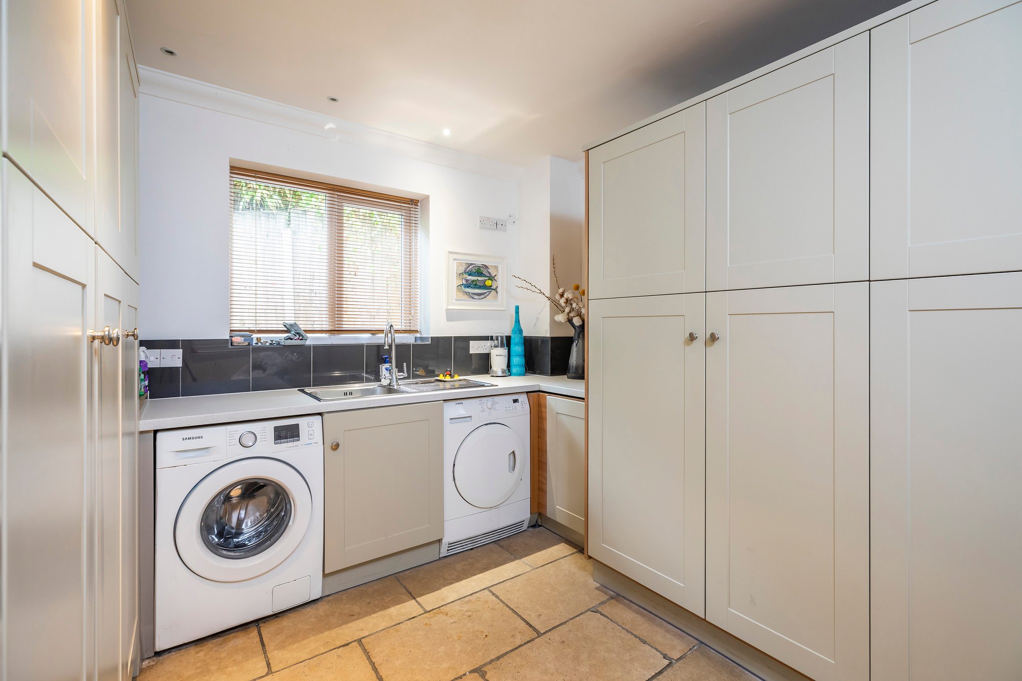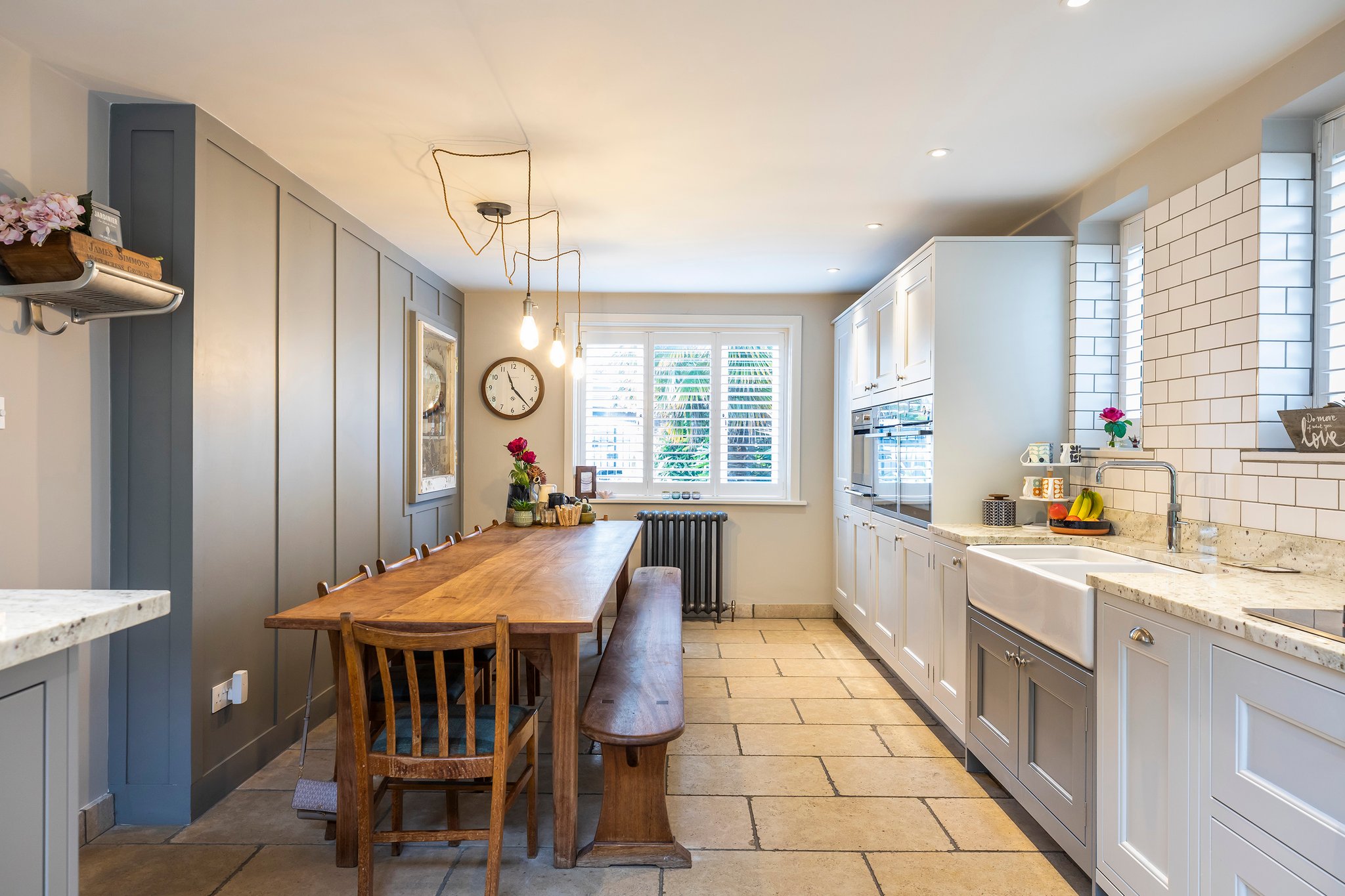 This stunning home has been extensively remodelled by the current owners to blend modern living with a traditional timeless feel. Featuring a spacious entrance hall with oak flooring that continues into the formal living room which has ample space for dining and features doors onto the front garden and into the study/playroom. The beautifully designed kitchen boasts a range of fitted appliances complimented by stone worktops and a matching movable island making it perfect for those who enjoy entertaining, with room to seat 12 at the dining table. The kitchen opens into an impressive orangery with full height windows and doors which flood the kitchen with light allowing space for a cosy living space adjacent to the log burner. In addition, on the ground floor is a large utility room offering a good range of storage cupboards, built-in washing machine and back door. Stairs lead from the entrance hall to the impressive main bedroom featuring an open-plan ensuite shower room complete with bath, which leads into the impressive bedroom with extensive wardrobes and patio doors accessing the large south-west facing terrace with spiral staircase to the front garden. Bedrooms two and three are both doubles and share the modern family shower room. Bedroom four is currently used as a teenager's den. From the orangery, doors lead to the pretty garden which is partly walled. To the side of the house is a covered outdoor kitchen area and access to the front garden. The house is approached via electric gates and a block paved driveway provides off-road parking for serval cars and access to the double garage.
