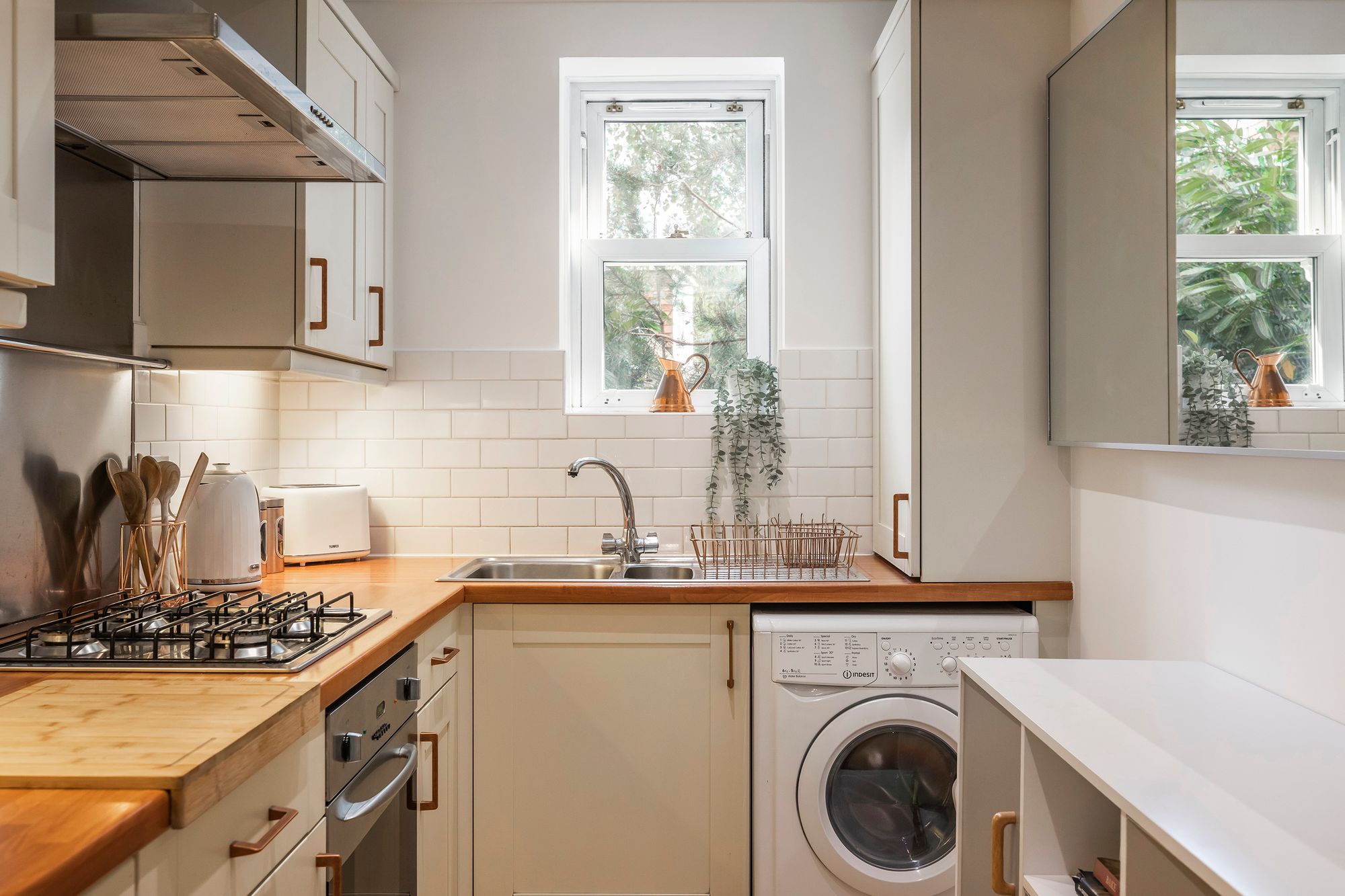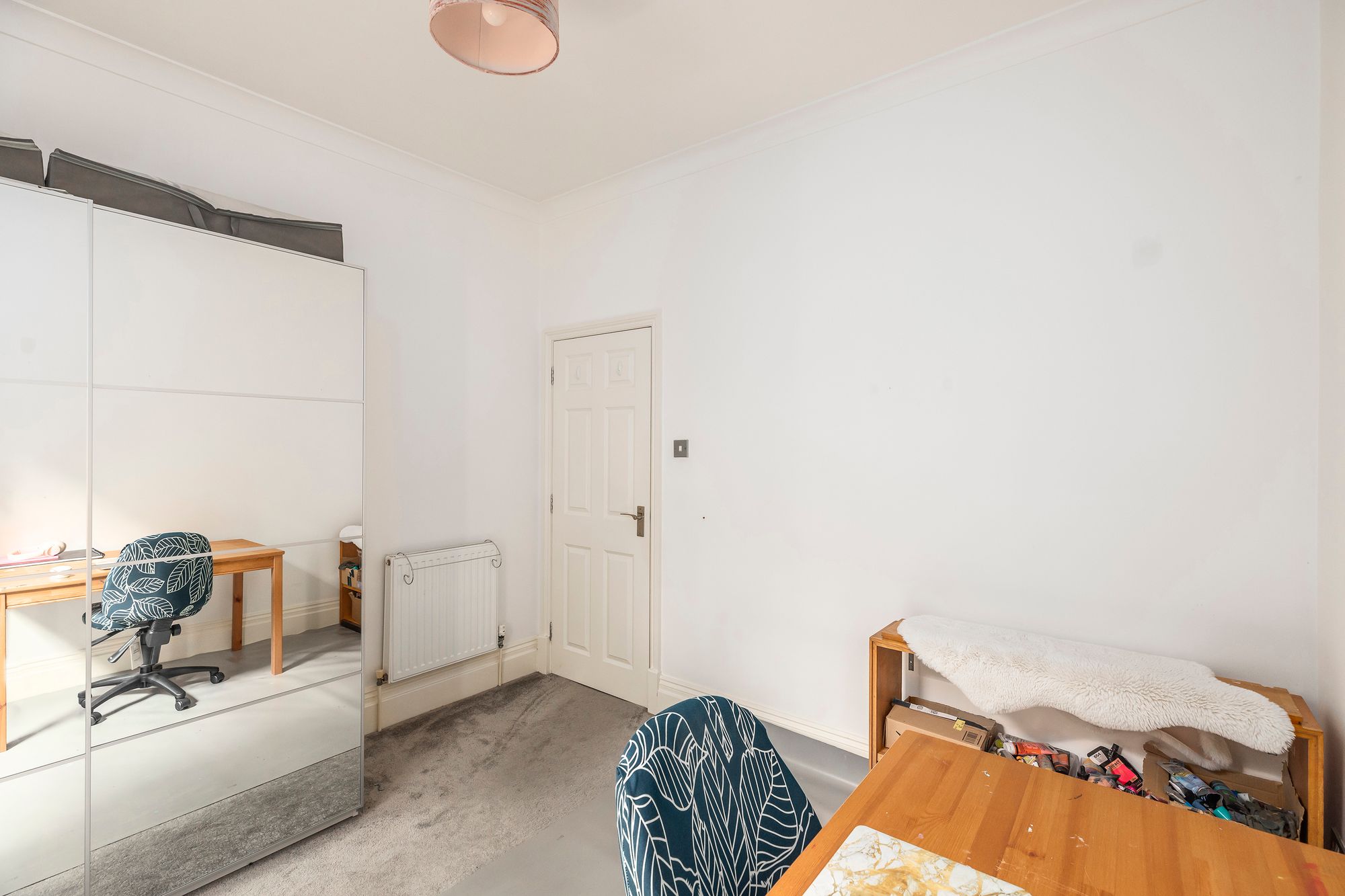 The accommodation includes two double bedrooms, complemented by a generously sized bathroom featuring a matching white suite, a panel bath, and a double-width walk-in shower cubicle. The kitchen is well-appointed with a range of base and wall-mounted units, adjoining work surfaces, an integrated tall-standing fridge and freezer, a washing/drying machine, and dishwasher, an integrated oven with an inset 4-ring gas hob and extractor hood, a newly installed wall-mounted combination gas boiler, wood laminate flooring, and a double-glazed sash-style window with a side aspect. A standout feature of the flat is the spacious living and dining room, which boasts a double-glazed sash-style bay window to the front aspect, high ceilings with original coving, and skirting boards, all adding to the room’s charm and character.