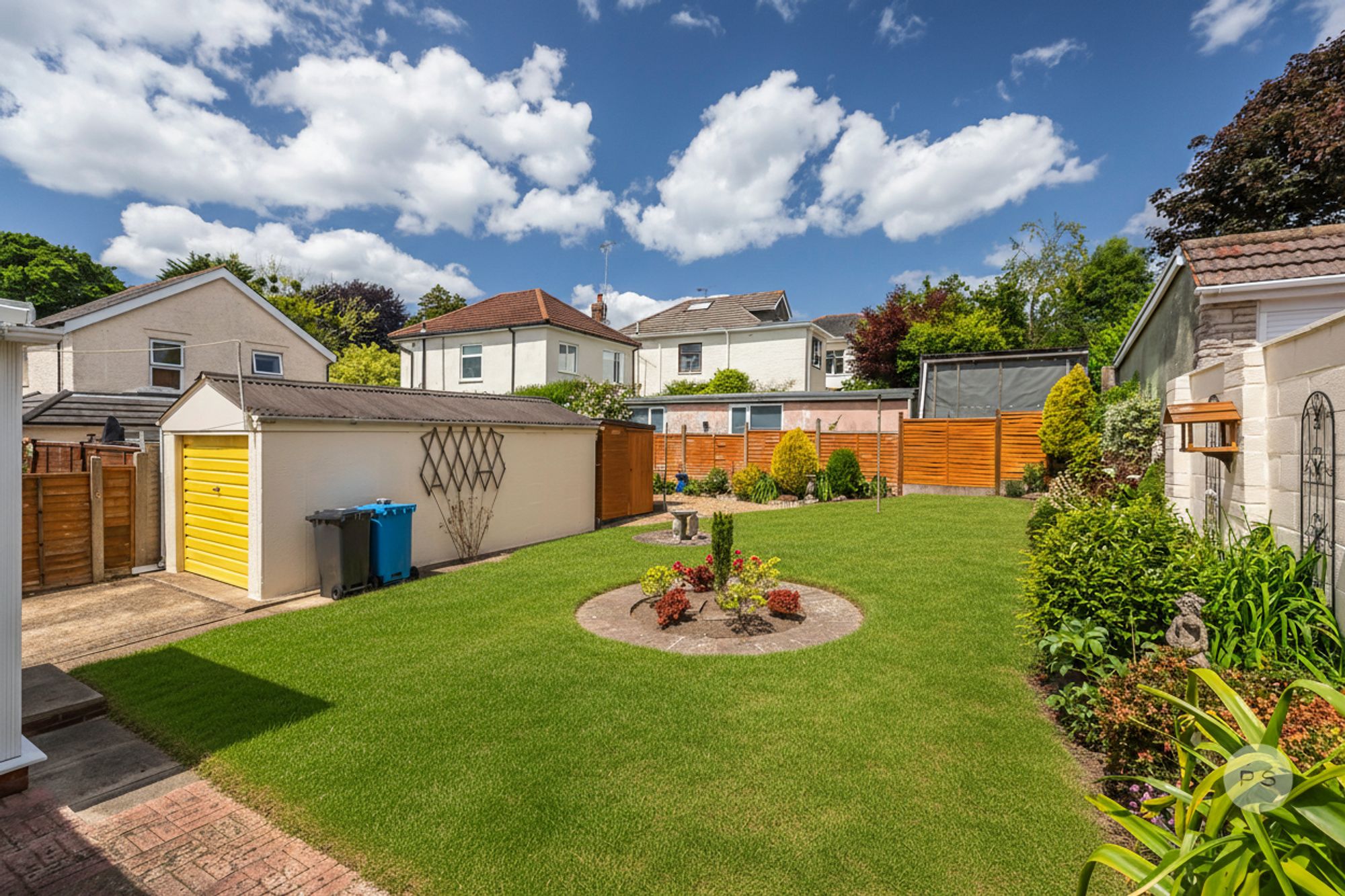 The rear of the property is a true highlight, a spacious, partly walled garden enjoying a sunny aspect. The beautifully maintained garden features a generous terrace area ideal for entertaining or relaxing in the sun. A large detached garage sits towards the rear of the plot, equipped with power and light.