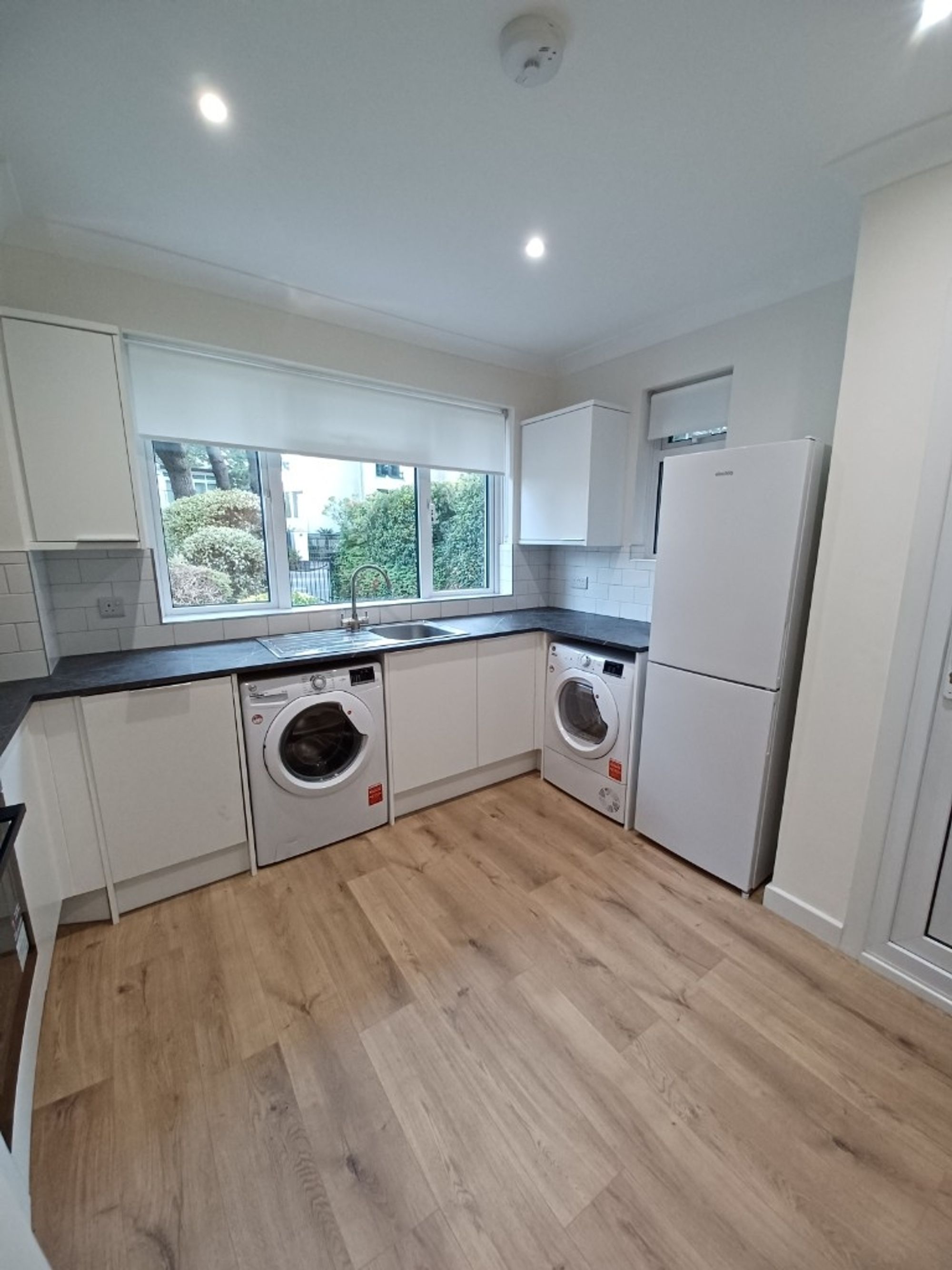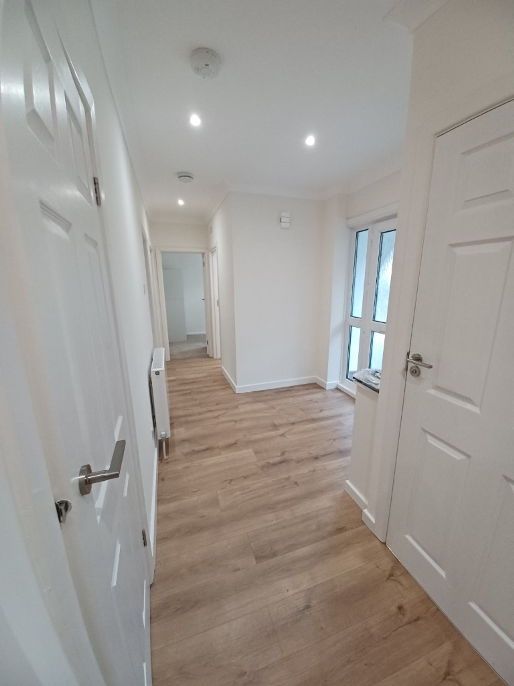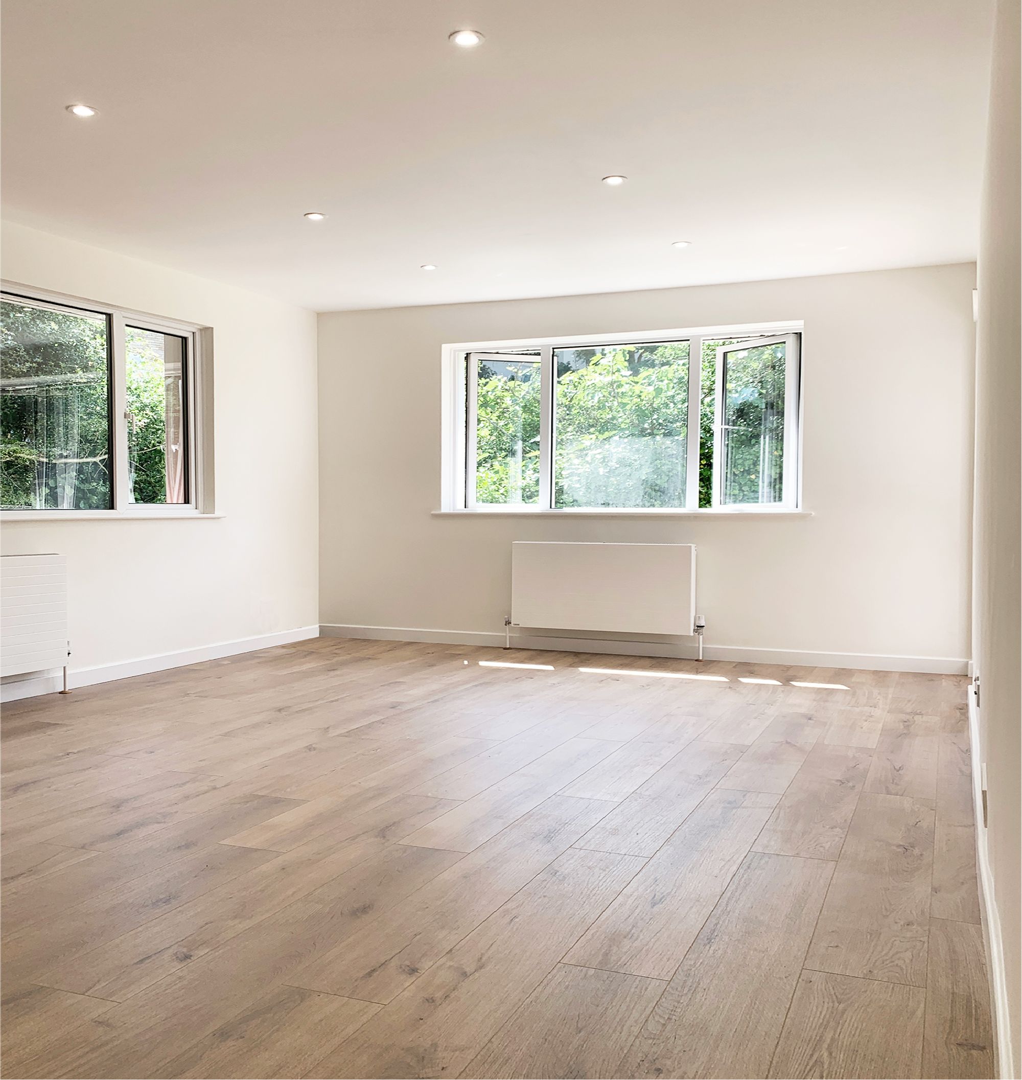 The property offers well-balanced and versatile living space throughout. A central entrance hall provides access to all accommodation and immediately draws you through to the newly fitted kitchen, which enjoys views over the front garden and direct access to the side of the property. The contemporary kitchen is finished with sleek high-gloss units and modern fittings, creating a clean, practical space for everyday living.