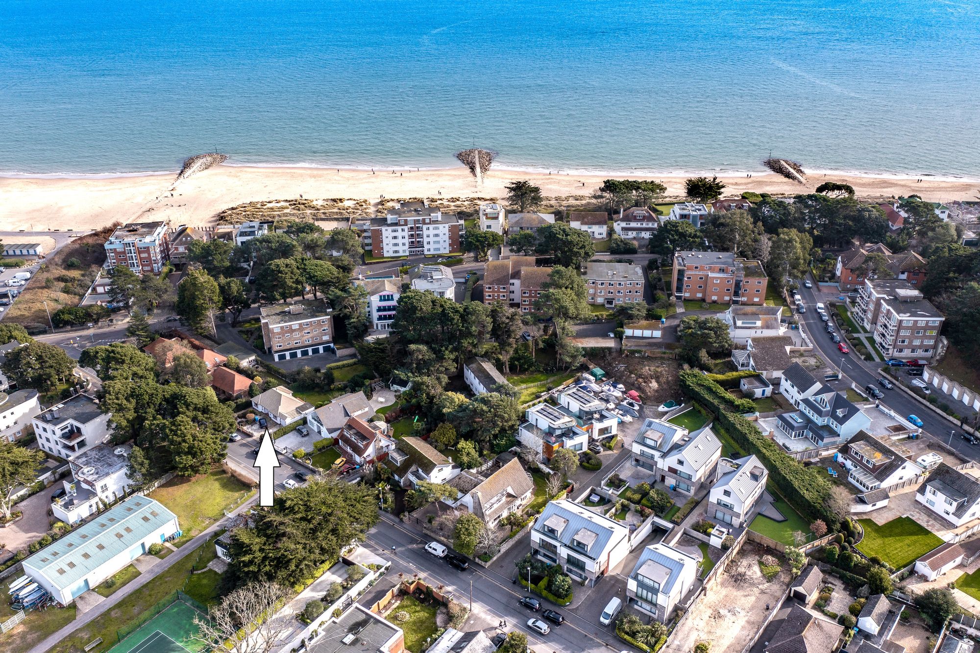 A short walk from Sandbanks Beach, this beautiful three-bedroom home enjoys a south-facing garden, harbour glimpses and generous off-road parking.
