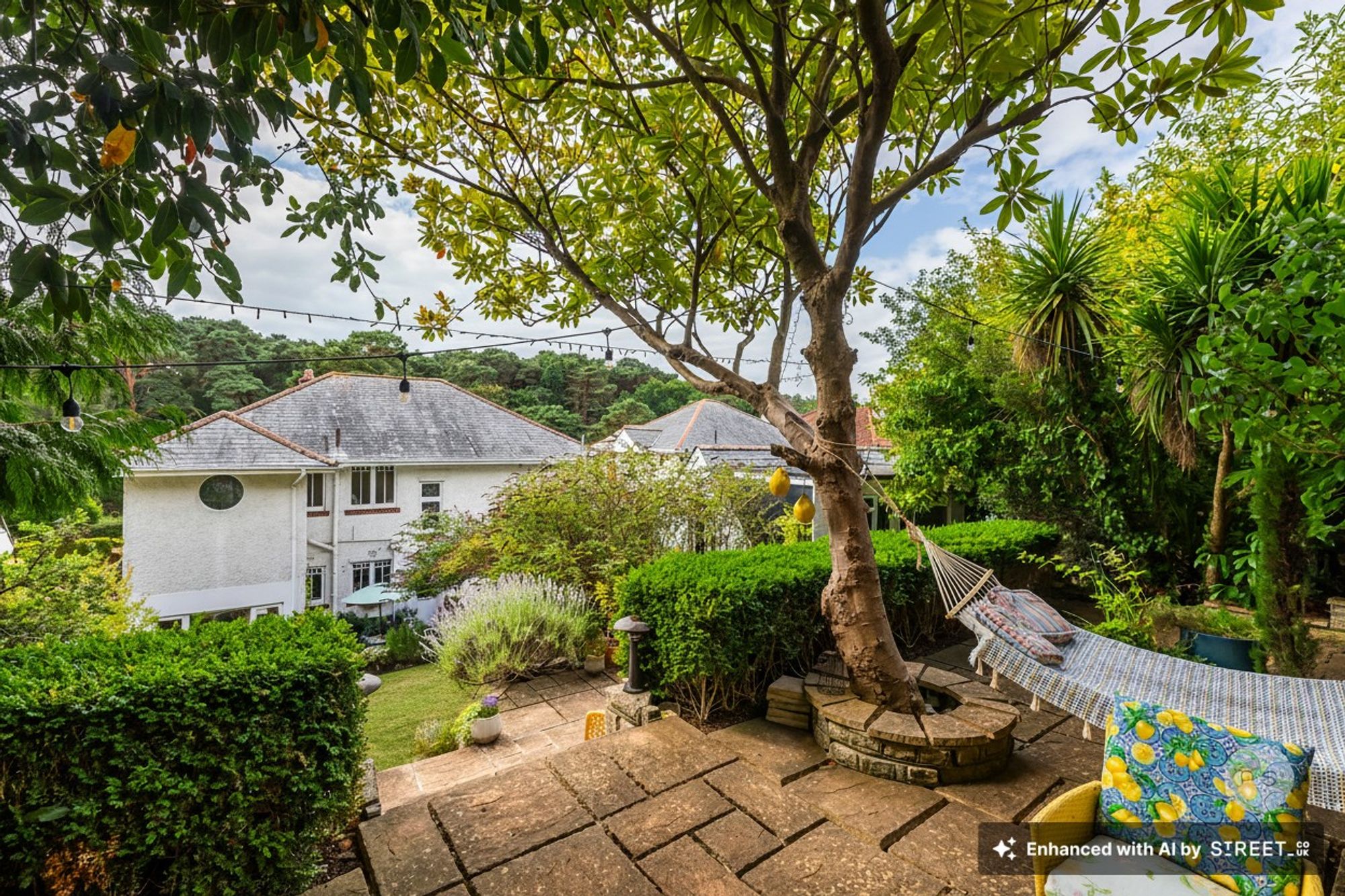 Upstairs, the principal bedroom enjoys views over the garden via a wide bay window and benefits from fitted wardrobes and a luxurious en suite bathroom. The second bedroom features access to a private balcony, offering a peaceful retreat with garden views. Bedrooms three and four are equally well-proportioned. A well-appointed family bathroom completes the first-floor accommodation. Externally, the south-facing garden is thoughtfully designed, typifying an English country garden. The additional rear garden with tiered levels, has a mix of sunbathing and dining areas, all complemented by outdoor lighting and power points, and a discrete garden shed. To the front, ample off road parking leads to a detached double garage, while above, a fully wired home office with Wi-Fi and telephone points offers a quiet and productive workspace.