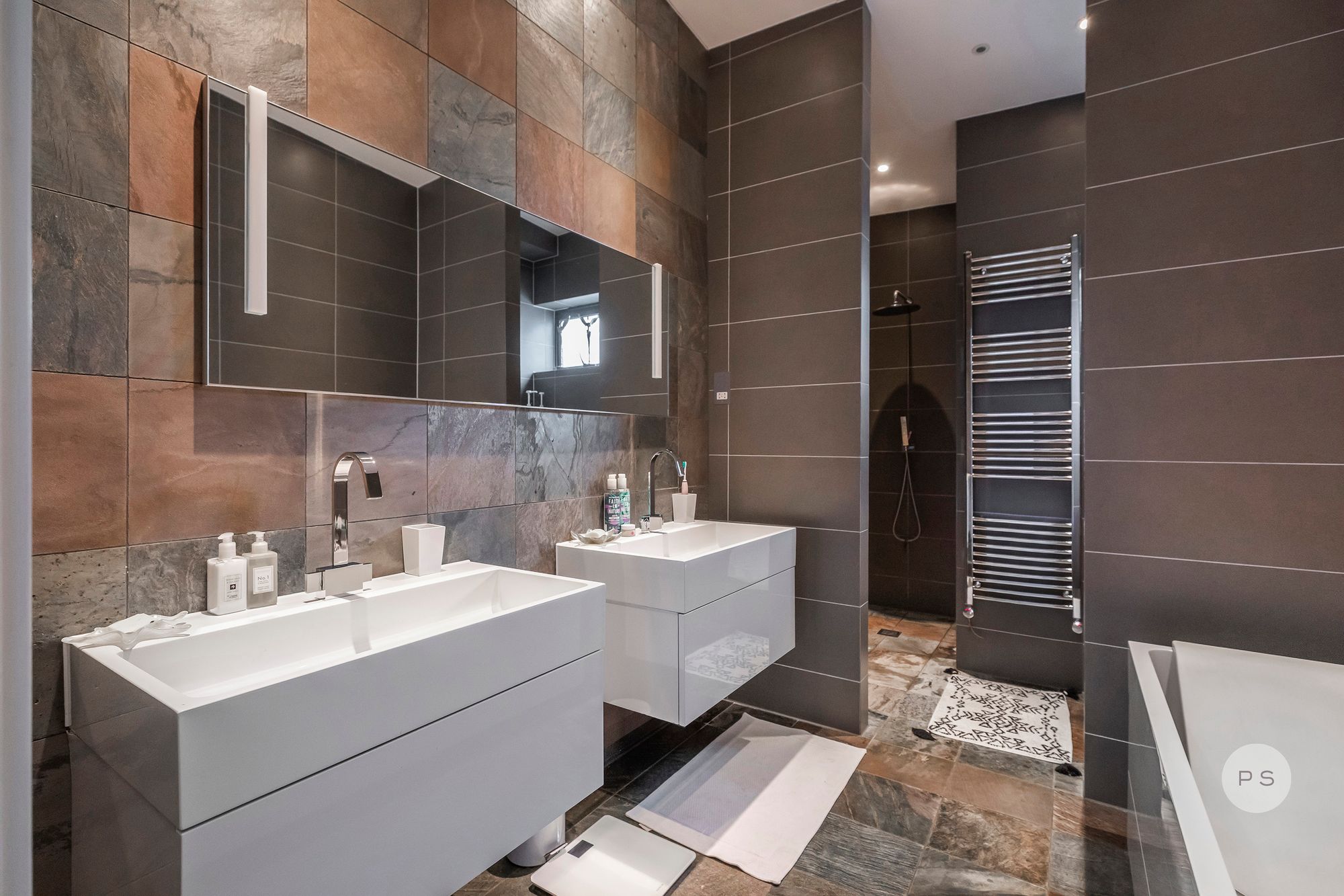 The lower ground floor is a highly versatile level, featuring two generous rooms originally designed as bedrooms 4 & 5 (both ensuite) but are currently configured as a stylish entertainment room / home office with a concealed bespoke bar, and a bedroom suite, both opening onto a large terrace with gated entrance, lending itself well to use as an annex or independent guest accommodation.