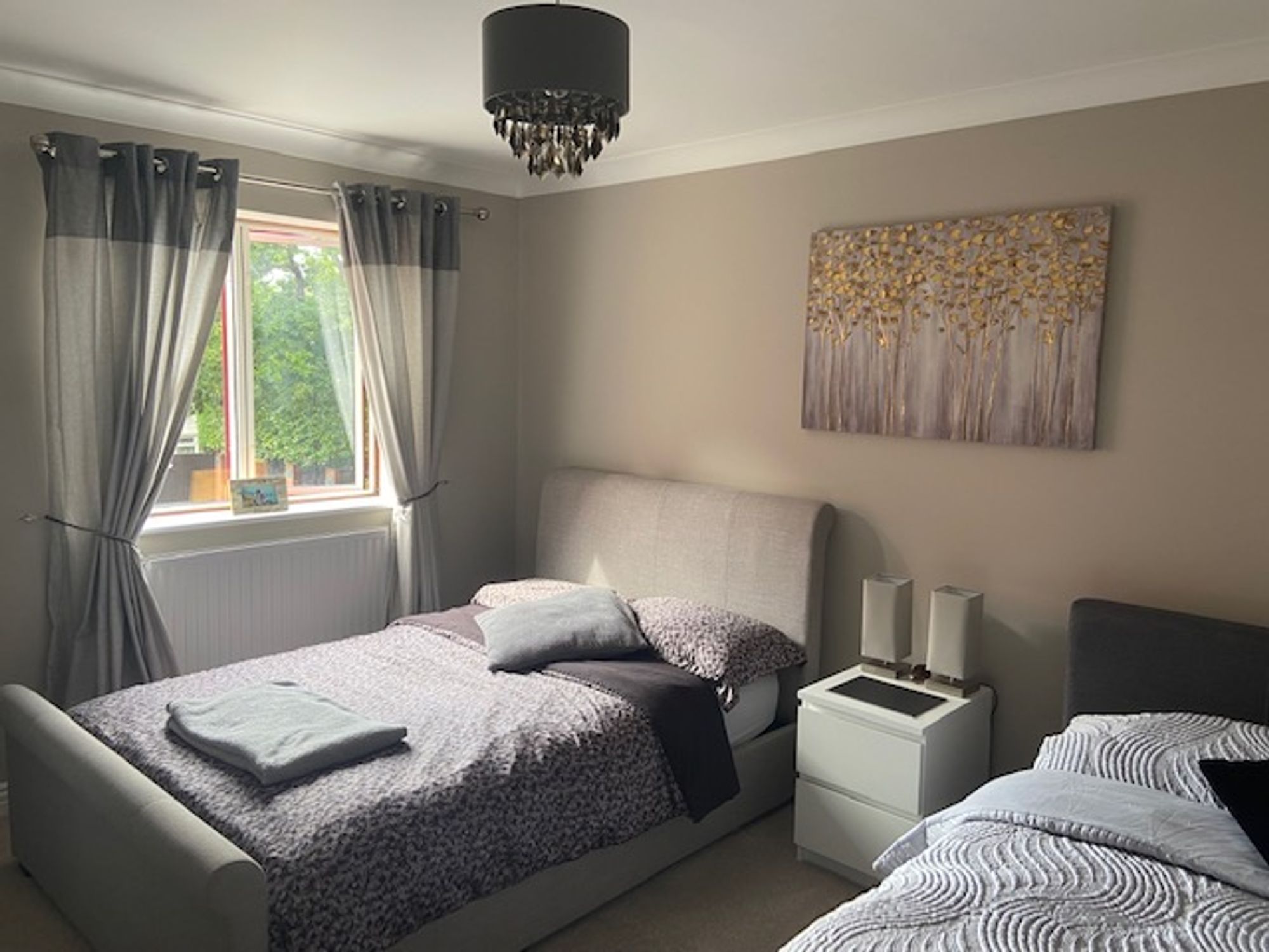 The main bedroom includes fitted wardrobes and a contemporary en suite shower room, finished to a high standard. The second double bedroom is positioned to the rear of the development with peaceful outlooks and is served by the newly refurbished family bathroom. Both bathrooms have been upgraded throughout with modern fittings and a clean, neutral design.