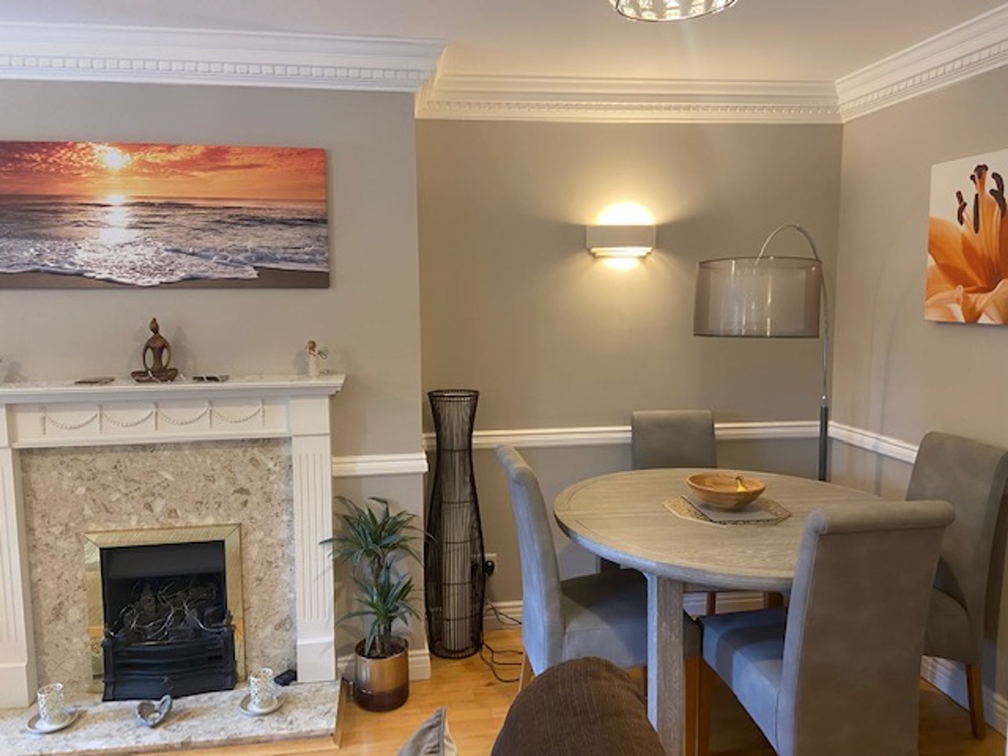 A generous entrance hall gives access to all principal rooms and sets a welcoming tone on arrival. The newly fitted kitchen is positioned just off the hallway and enjoys a modern design with ample storage and worktop space. The spacious living room offers an inviting setting for everyday living, benefiting from a stylish feature fireplace and a large window overlooking the balcony. This outdoor space is ideal for enjoying fresh coastal air and is also accessed directly from the principal bedroom.