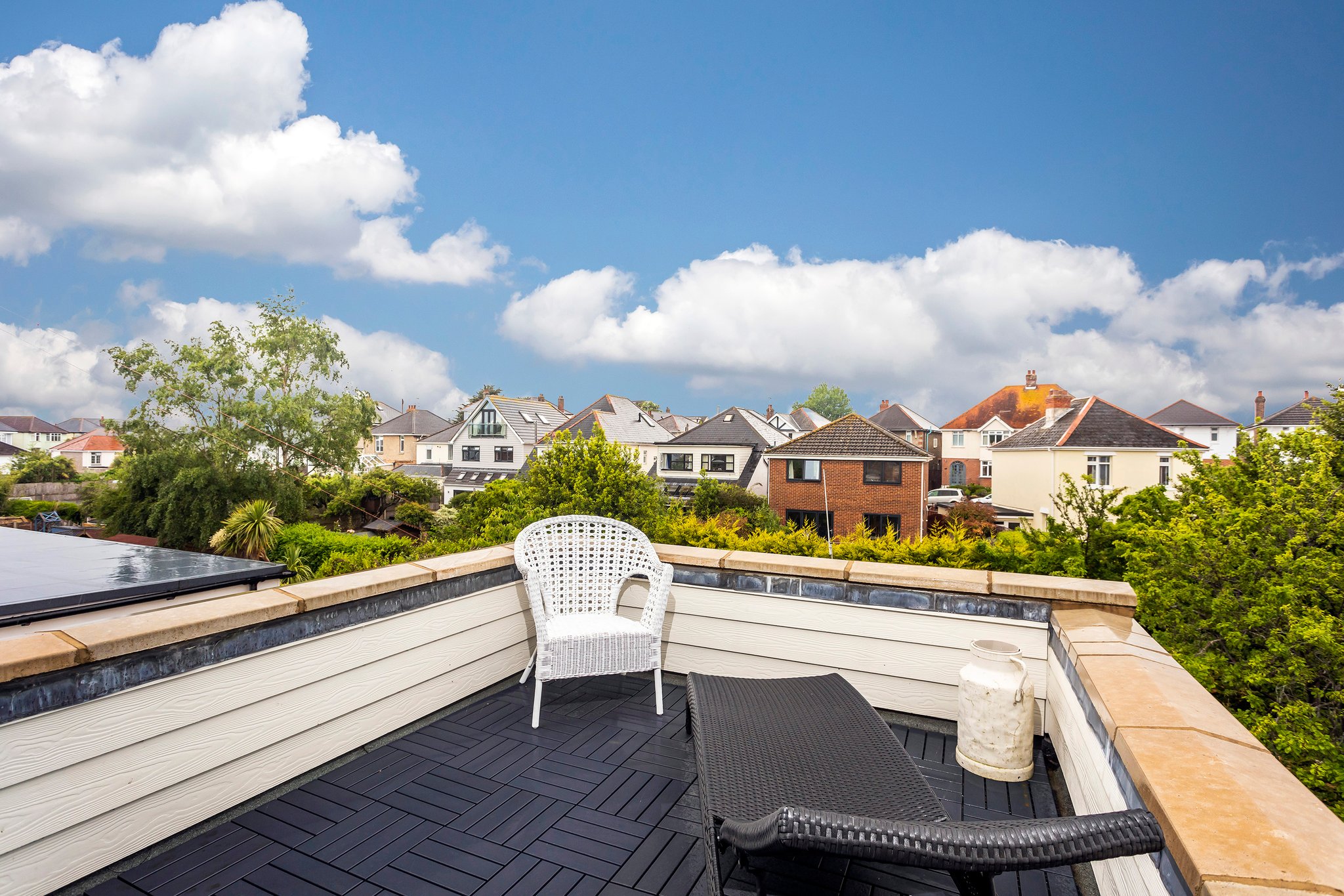 The top floor has been extended and houses the master suite, with its own dressing room and private terrace which has some harbour glimpses to the south. The en-suite boasts a walk-in shower with limestone tiling. Outside, the garden has been beautifully landscaped and enjoys a westerly aspect with a good degree of privacy. To the rear of the garden, the original garage has been converted into a hobbies room / office and enjoys its own en-suite shower room, offering the option of additional accommodation for guests. To the front of the garage, a small storage area has been created to house bicycles.