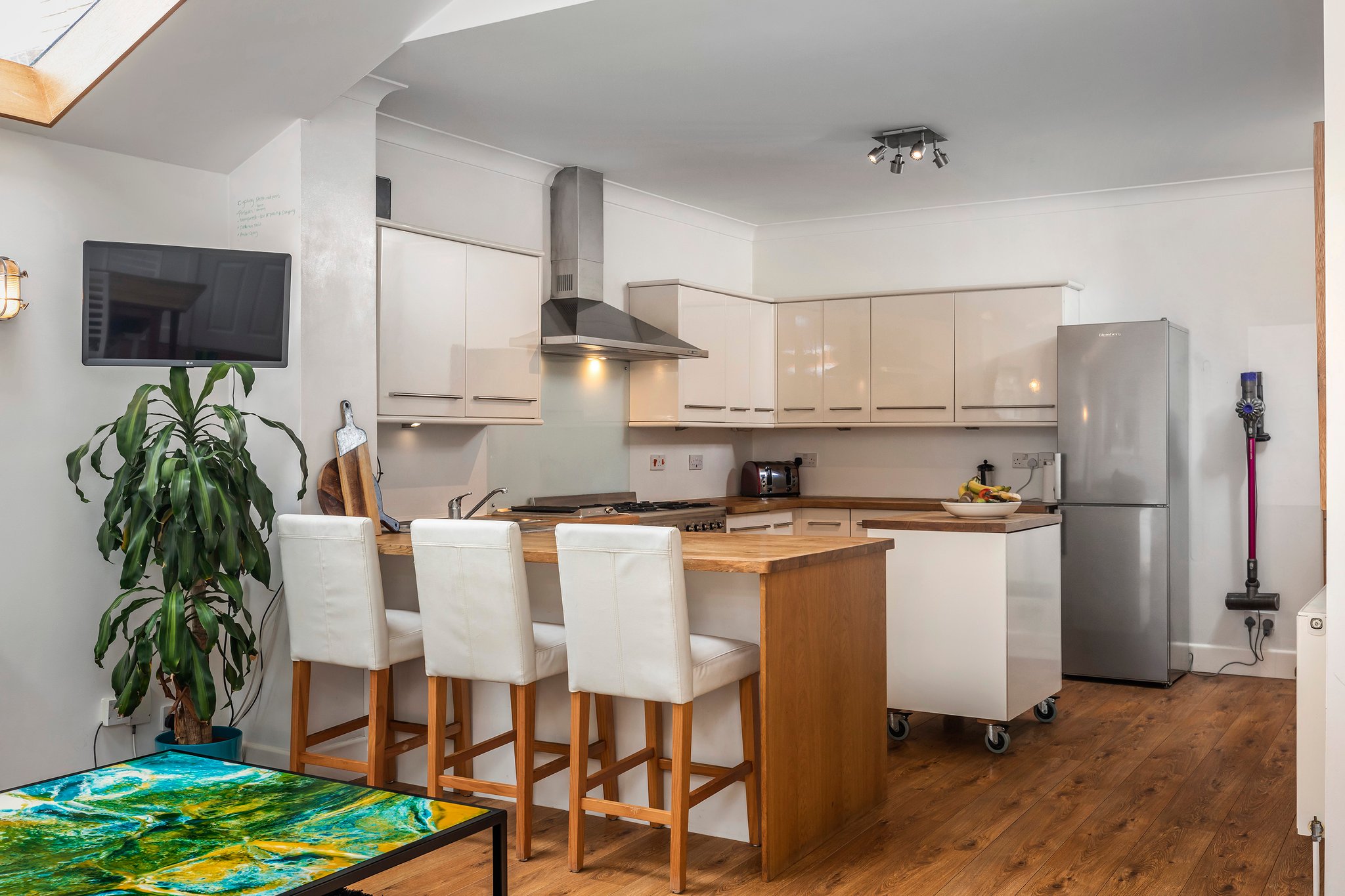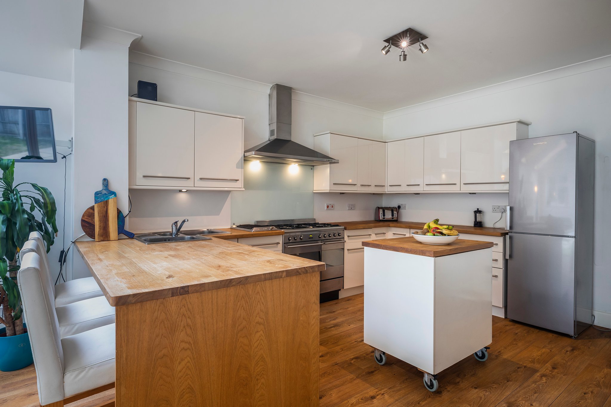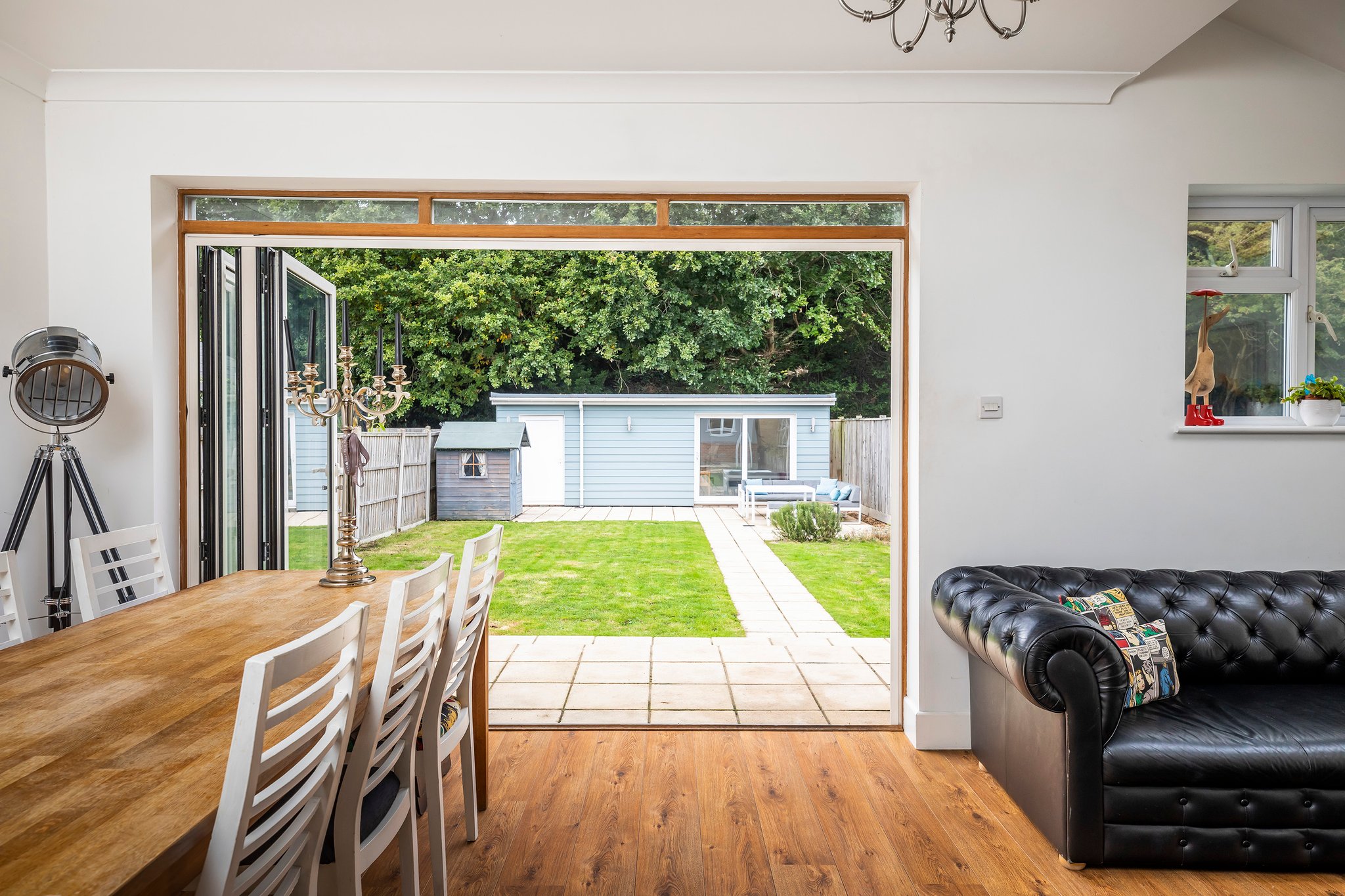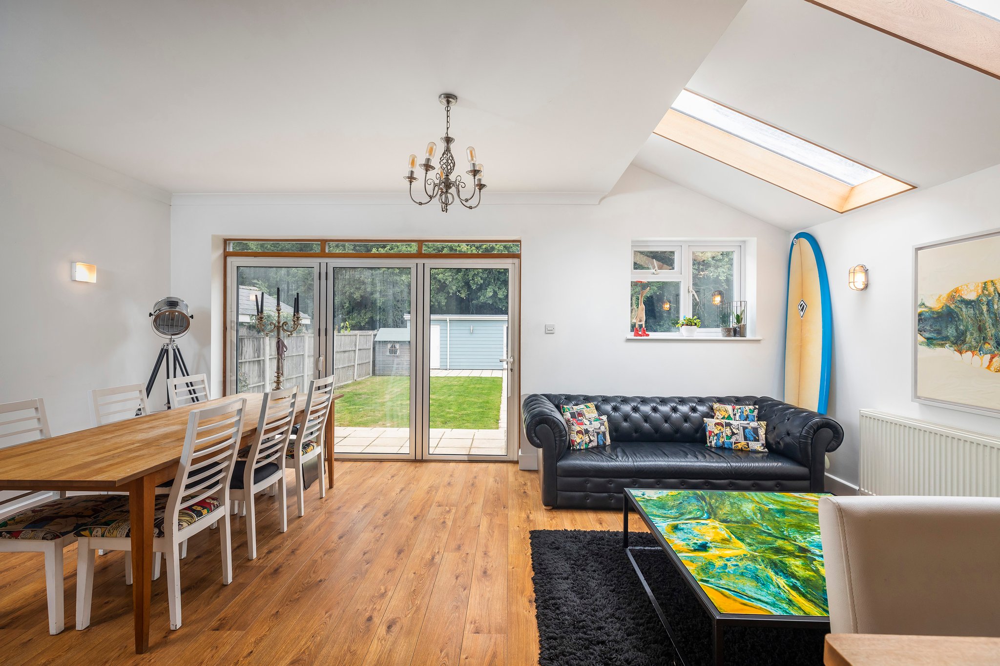 This deceptively spacious 4 bedroom family home has been extensively refurbished and extended to a very high standard. The airy interior incorporates the very latest in contemporary design. Without a doubt, the hub of the house is the open plan kitchen / dining / day room. The kitchen is fitted with an extensive range of floor and wall mounted units complemented by wooden worktops and high end integrated appliances; from here double-glazed doors lead to the level rear garden.