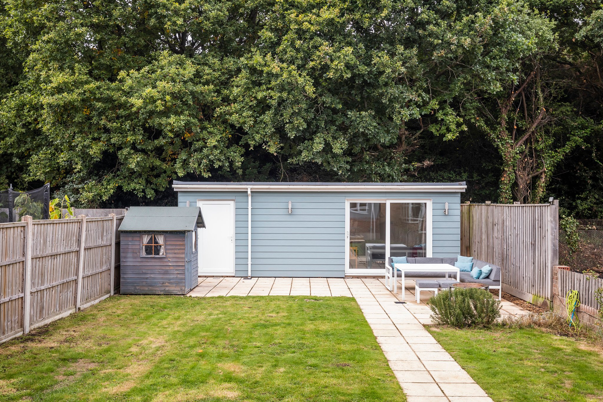 To the far end of the garden is the studio / games room, fully insulated and with electricity and heating; perfect for a sleep over or simply working from home.