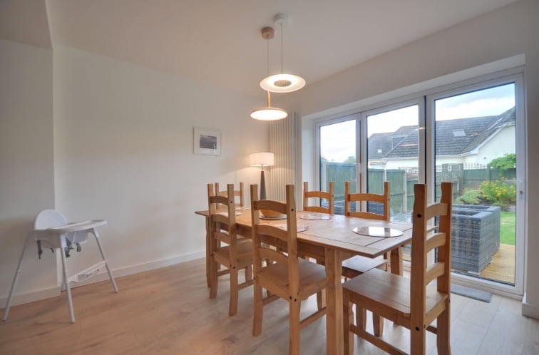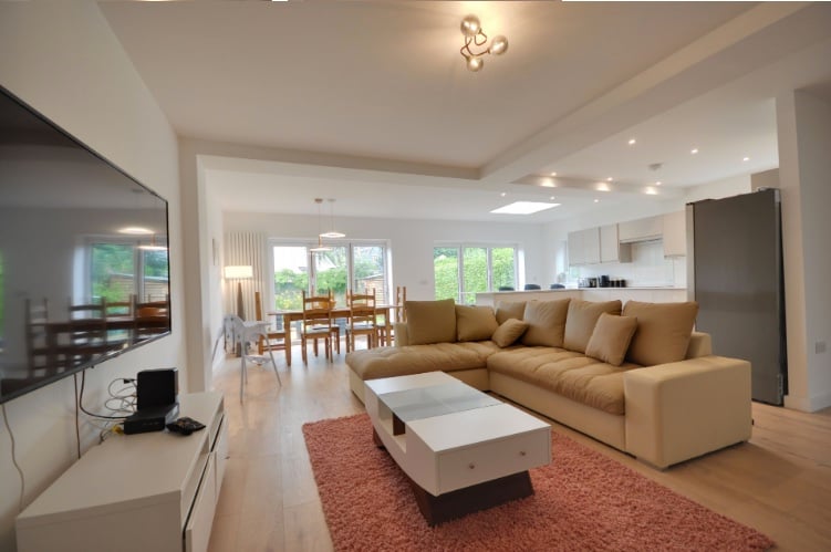 This bright and airy detached family home offers spacious and flexible living. Boasting a modern open plan living area with contemporary kitchen leading onto a sunny level garden. A choice of two ground floor reception rooms/ bedrooms. The principle bedroom has an ensuite and dressing area in addition to 3 further bedrooms and family bathroom. The enclosed garden comes complete with garden furniture to enjoy the beautiful weather. To the front of the property is off road parking for two cars. Well behaved Pets are considered.