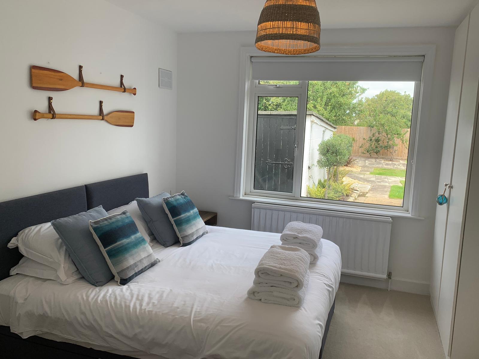 Beautifully decorated spacious two double bedroom bungalow situated on a quiet road minutes away from Whitecliff park.  A sleek hallway greets you with doors off to the front living room, bedrooms and family bathroom.  Both bedrooms have built in wardrobes for storage.  There are unexpected sea views from the master bedroom.  Large kitchen with free standing appliances, leading to a conservatory dining area and into the generous sized garden which also has a small garage for extra storage.  The garden is a mixture of patio and grass with strategically placed sunloungers to enjoy the sunshine and a large patio set for entertaining.