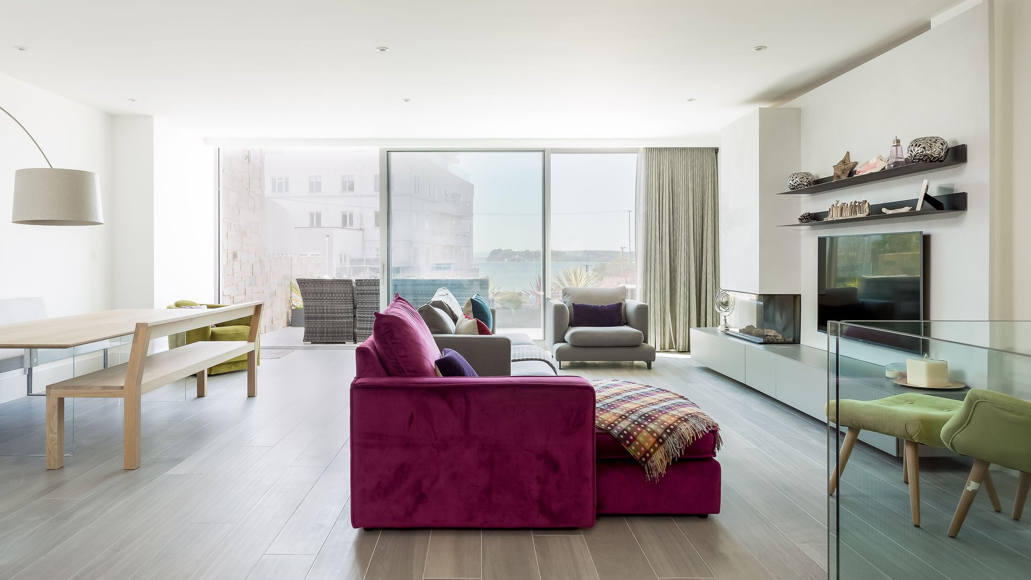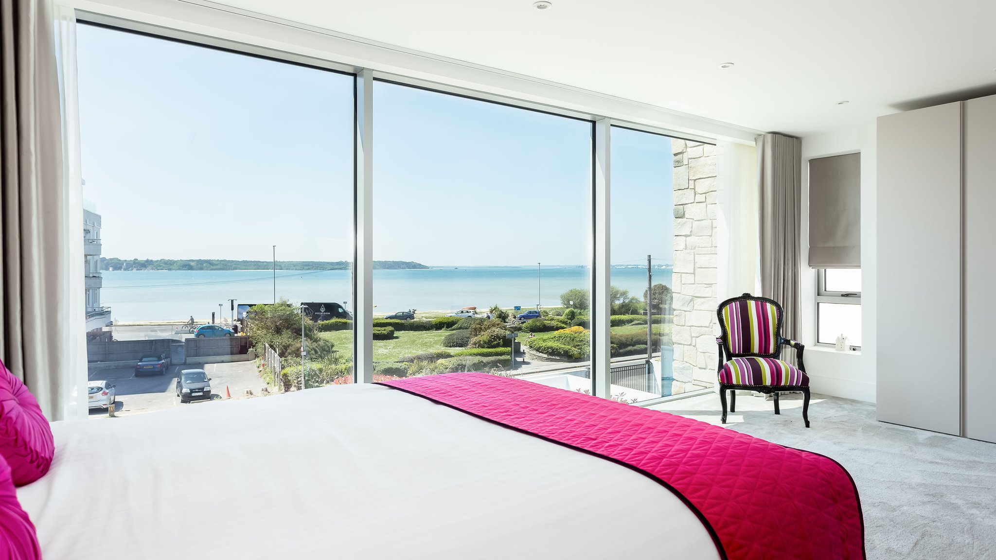 Approached via secure electric gates, this contemporary home has been constructed by one of the area’s leading developers. The accommodation extends to circa 3,000 square feet including the garage and it is clearly a lifestyle home designed with entertaining and leisure in mind. The ground floor includes a large double garage and tv room. The first floor living space is open-plan and incorporates a beautifully appointed contemporary kitchen, featuring a stunning central island and range of integrated appliances. A particular feature of the kitchen is the concealed preparation area and sink which is hidden behind double opening doors, cleverly keeping everything out of sight. Floor to ceiling sliding doors offer fantastic views of the harbour and lead on to a large decked sun terrace. The second floor offers three double bedrooms, the guest suite has fantastic views of the harbour and luxurious en-suite. Bedroom three has its own en-suite and bedroom four has sole use of the family bathroom. The main bedroom is located on the top floor, gaining the most of the the stunning views of the harbour from the floor to ceiling windows that lead onto its private balcony, and opulent ensuite. The top floor could be given over entirely to a suite as there is an additional bedroom and en-suite on this level. The accommodation is very flexible and versatile and could be used a number of ways to include a home office or gym. The house is approached via a private gated driveway with an integral double garage. The rear garden has been designed for easy maintenance with a large decked sun bathing area and hot tub. Shore Road is a great option for anybody seeking a palatial second or main home with a luxury specification including underfloor heating, programmable lighting and an integrated audio system within a stone's throw from the harbour and beach.