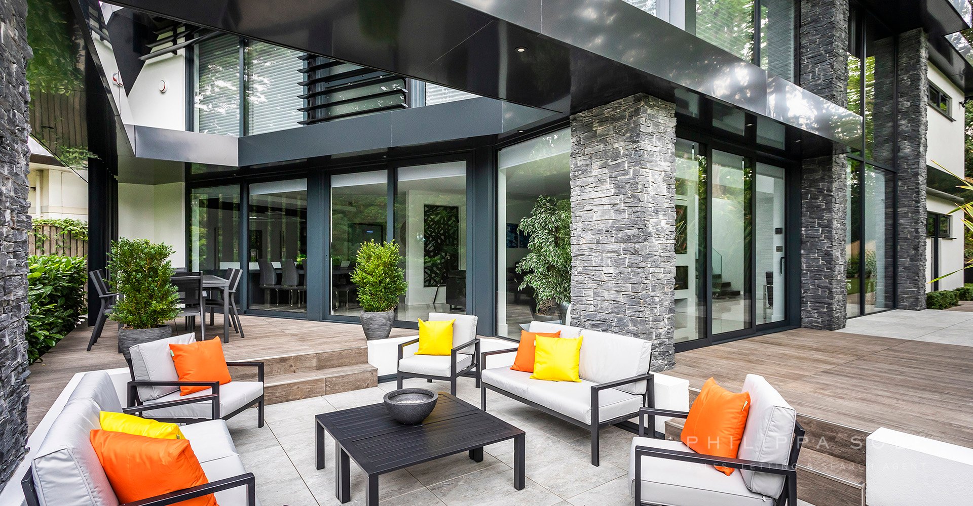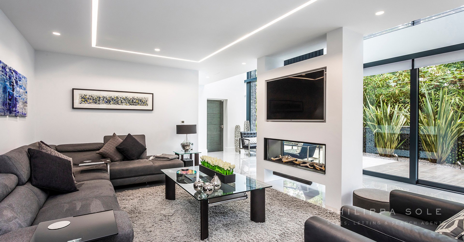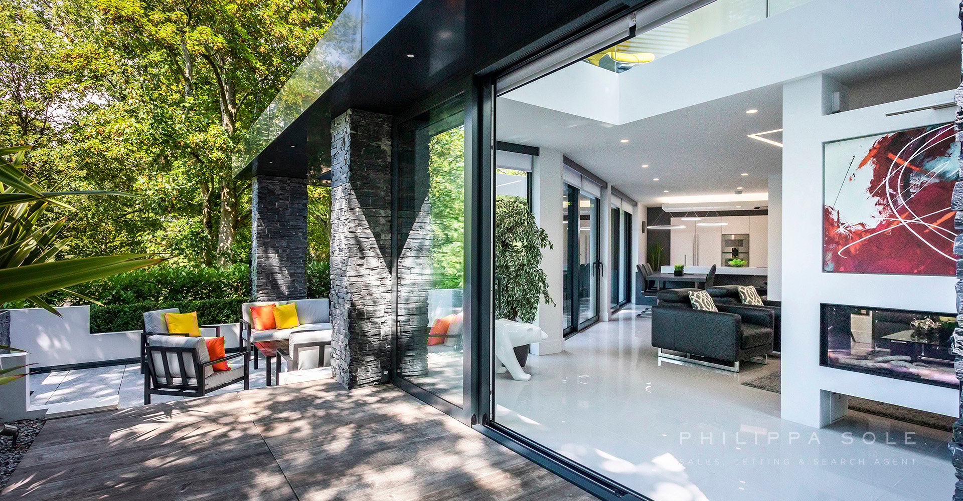 This modern architecturally designed home has been created to encapsulate its surroundings. On entering this home you are immediately struck by the amount of light from its floor-to-ceiling, double height gallery and fully glazed walls. The cleverly designed open plan, ground floor living space flows effortlessly from one space to another. A modern Leicht kitchen blends into surroundings due to the cleverly designed hidden storage. The kitchen/dining area whist being open plan is divided by a contemporary panel from the formal living room which features a floor-to-ceiling dual aspect fireplace. Beyond here is the double height gallery area, ideal as a space to relax whilst embracing the evergreen background beyond from the double height windows. From the kitchen doors you are lead to an impressive and fully equipped state of the art cinema room/snug. The utility room which offers direct access to both the garden and double garage. A floating feature bespoke staircase with internal lighting leads to the first floor. The master bedroom enjoys lovely views from the full height sliding doors and Juliet balcony. The luxurious en-suite shower room is beautifully equipped with a double sink and walk in shower. Beyond this is the fully equipped dressing room overlooking the garden. There are two further guest suites (one with a walk-in wardrobe) and en-suite shower rooms. From the landing, you are lead to a stunning open plan galleried study/library which overlooks the floor-to-ceiling relaxation area below. The garden has been designed to be an extension of the house with access from the kitchen and living area via full height sliding doors. The fully tiled patio area provides an ideal space in which to entertain with a cleverly designed pergola. A bespoke water feature combined with the luscious evergreen planting surrounding this area provide privacy and seclusion. Adjacent to the utility room and garage is a level area of Faux lawn and from here, sleeper steps provide access to the remainder of the garden which gently slopes until it reaches a further level area. A private gate which gives access to Branksome Beach in under 250 steps.