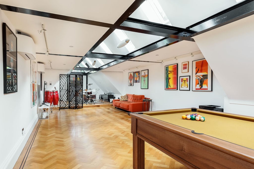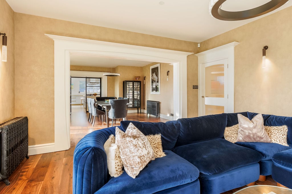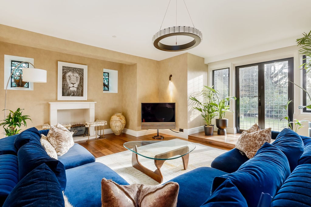 Arriving through the main gated entrance, you're treated to a sense of delight at this pretty and impressive home. A spacious entrance hall presents you with a sense of the property's magnificent detail, including a seamless Polyurethane floor throughout the central ground floor, zoned by authentic Crittall Windows & Doors, giving an open yet practical use of the spaces. To the right of the entrance is a spacious living room complemented by wood flooring and a wall of mullion windows drawing in the morning sun. Adjacent is a luxury state-of-the-art Media room with a 4K ceiling projector, drop down screen and full surround sound.