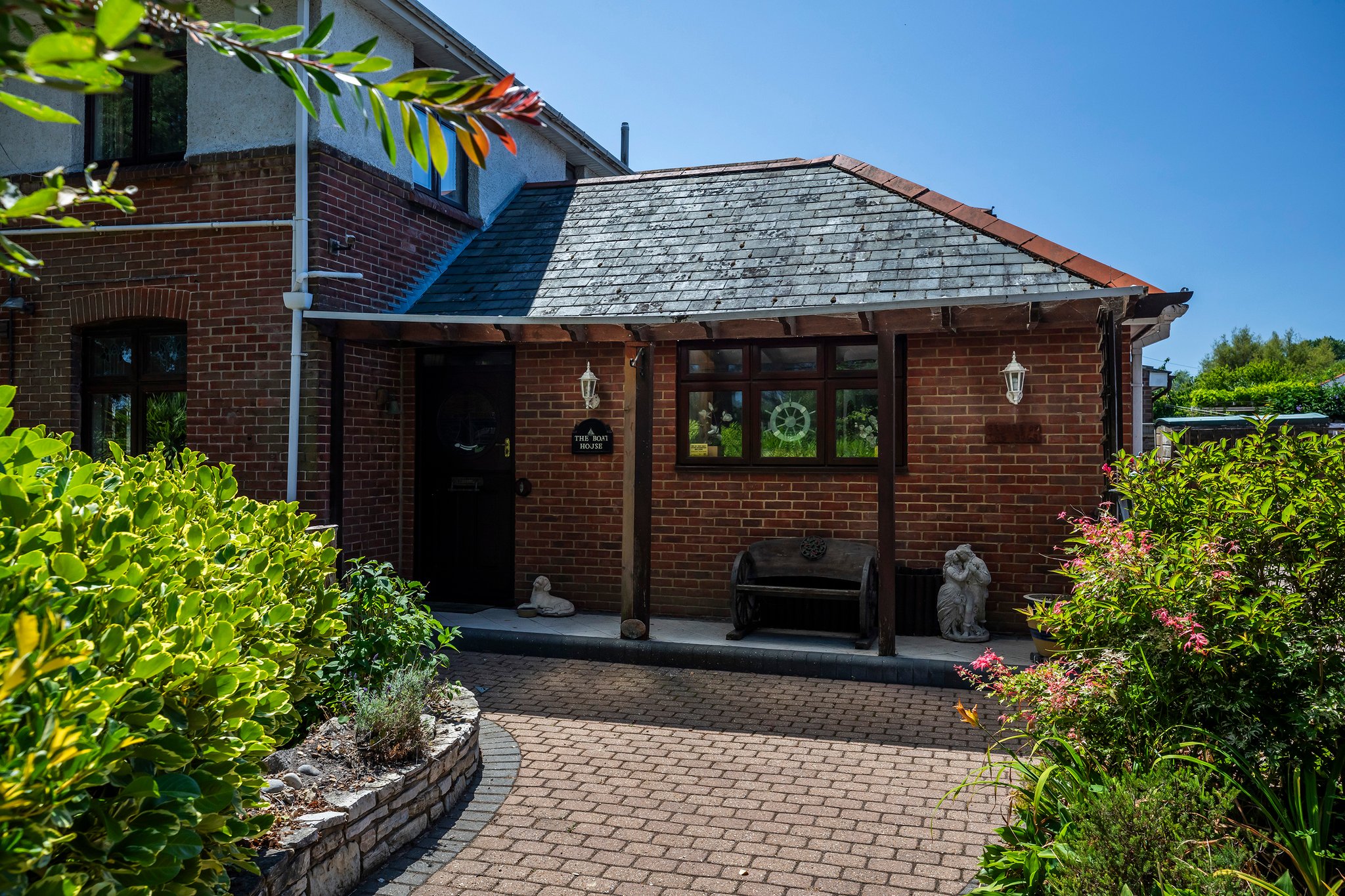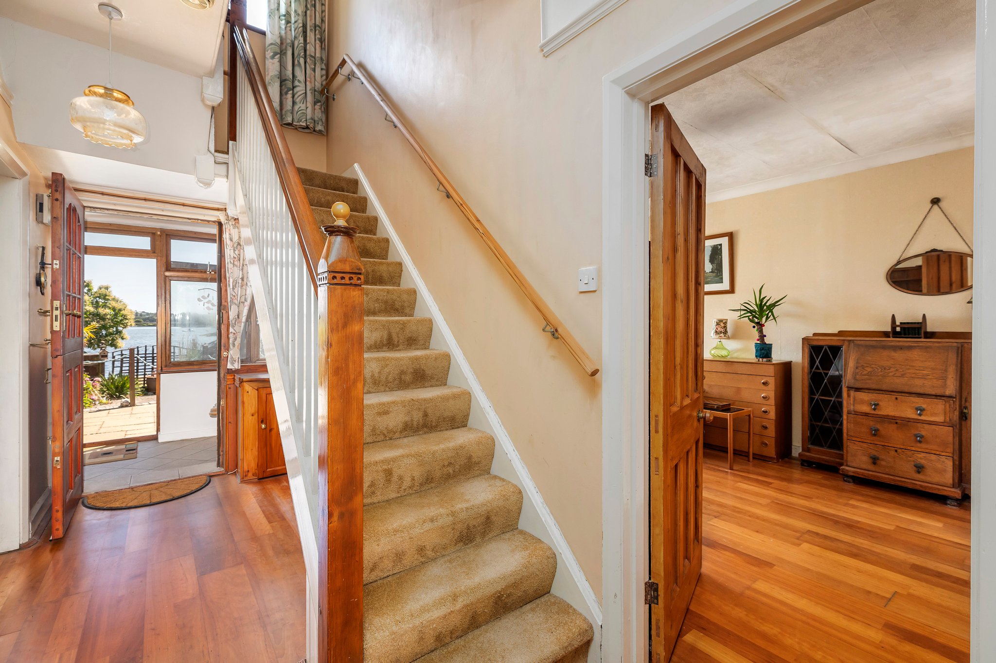 Outside, the level garden has been created with low maintenance in mind, being mainly paved, bounded by mature plants and bushes which are kept at a certain height to enjoy the surrounding views. There is a large tandem garage and off-road parking for multiple vehicles including a boat.
